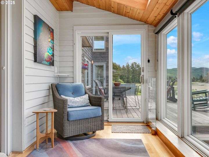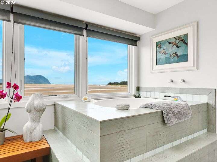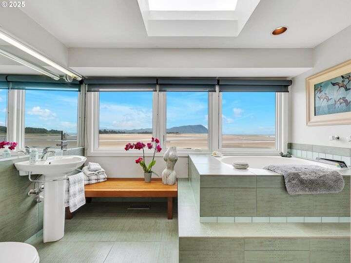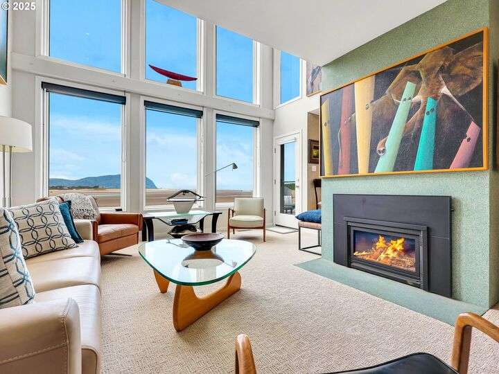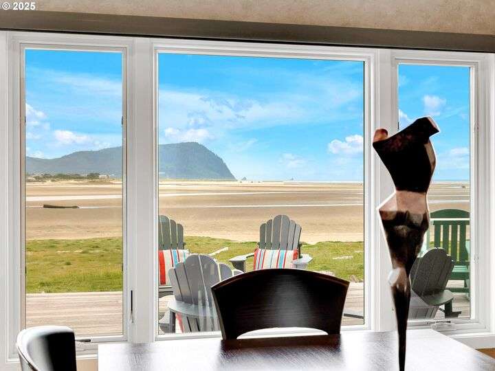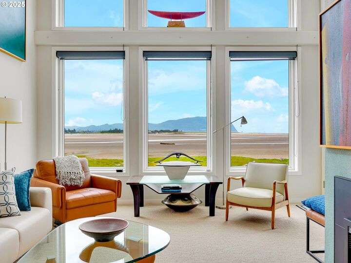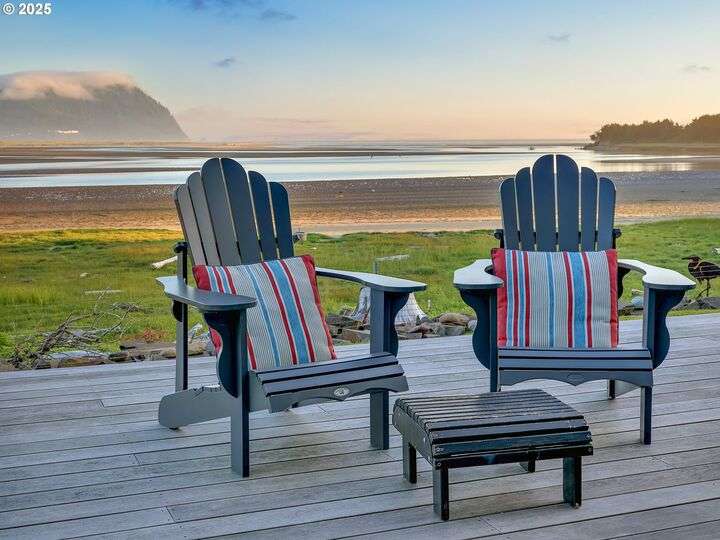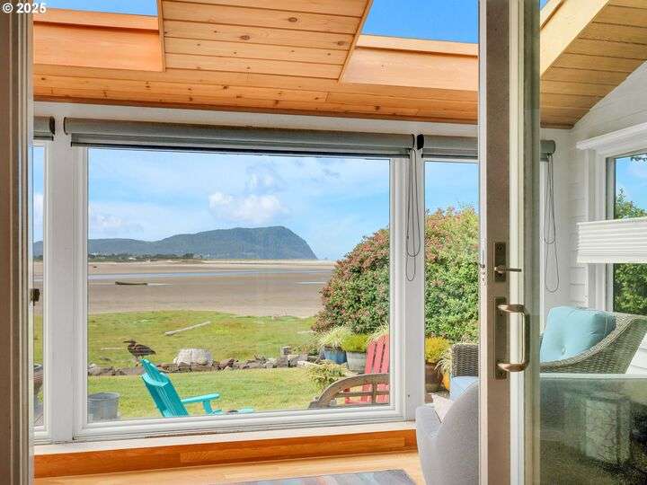 Escape to tranquility as you take your private drive to your stunning coastal retreat. Enter through a spacious and lovely courtyard into your haven of serenity, where breathtaking views of Little Beach Estuary, Ocean, Tillamook Head, Lighthouse, and Coastal Mountains create an unparalleled backdrop for everyday living. Also designed for nature lovers and bird watchers, this one-of-a-kind location offers a harmonious blend of luxury and natural beauty. High ceilings and expansive windows fill all main living areas with spectacular vistas and gas fireplaces for cozier evenings. Upstairs, a generous landing with a dedicated nook serves as an inspiring office space with incredible views. The primary suite offers a peaceful retreat, featuring captivating vistas and an indulgent spa-inspired bathroom with jetted soaking tub and sauna -your personal water-side spa escape. Enjoy outdoor living in abundance with a spacious waterfront deck, perfect for relaxing and soaking in the scenery. Want to explore? Step out on your own private beach access.