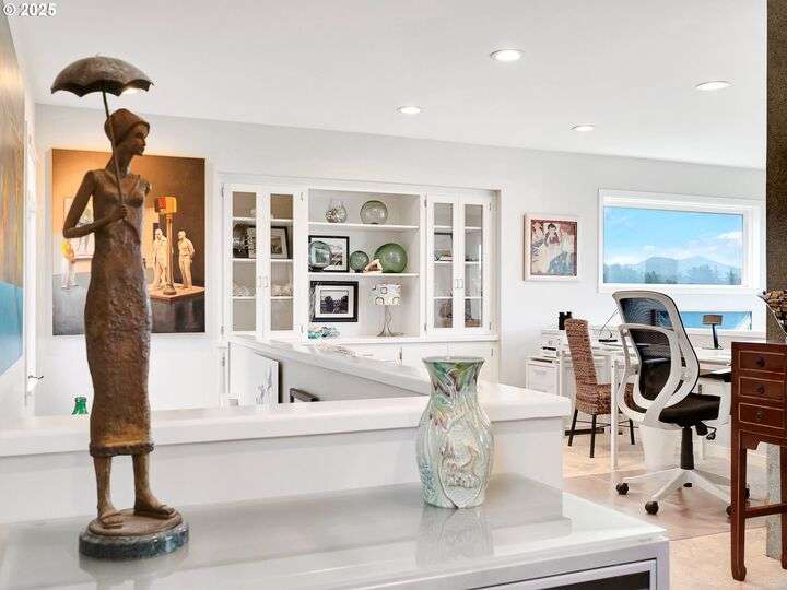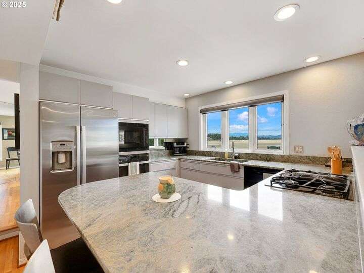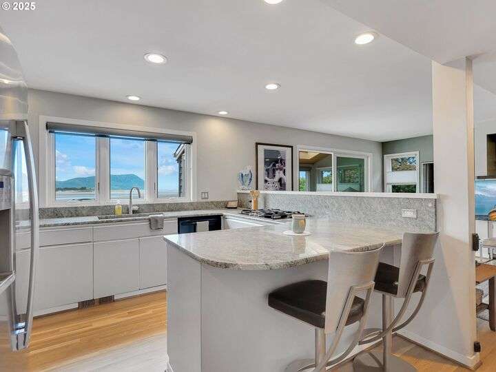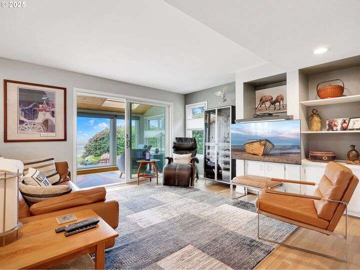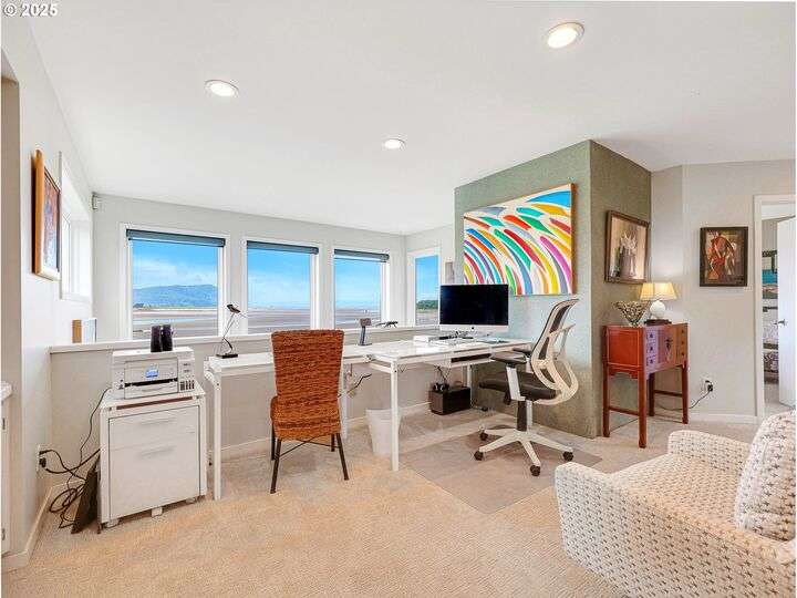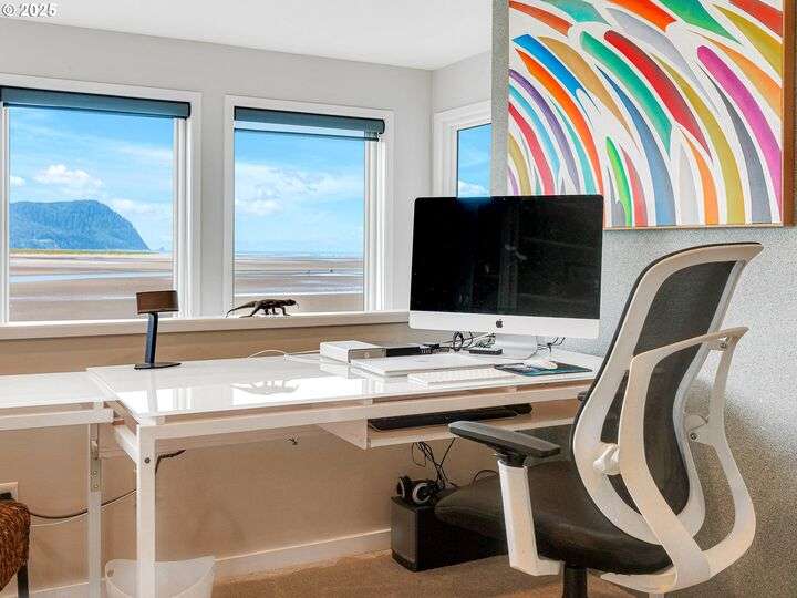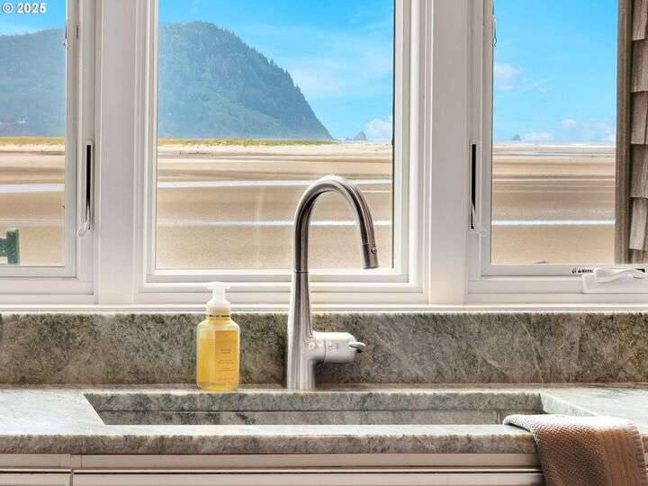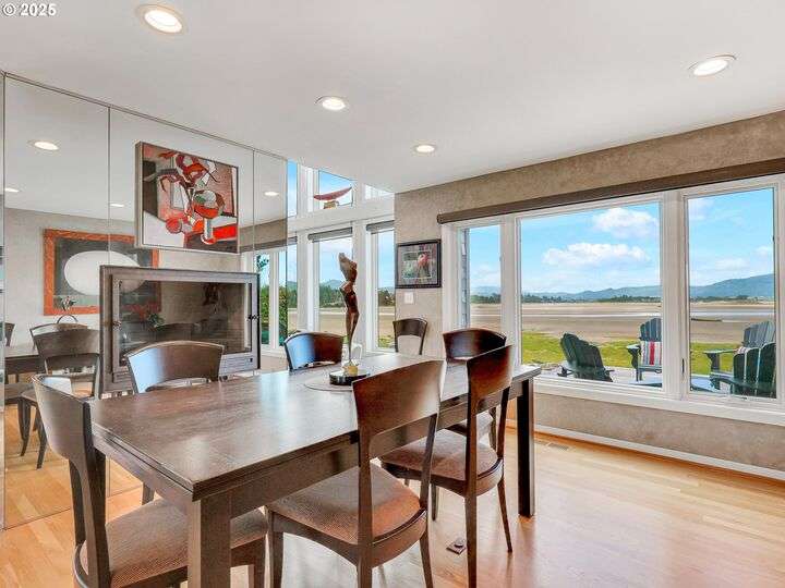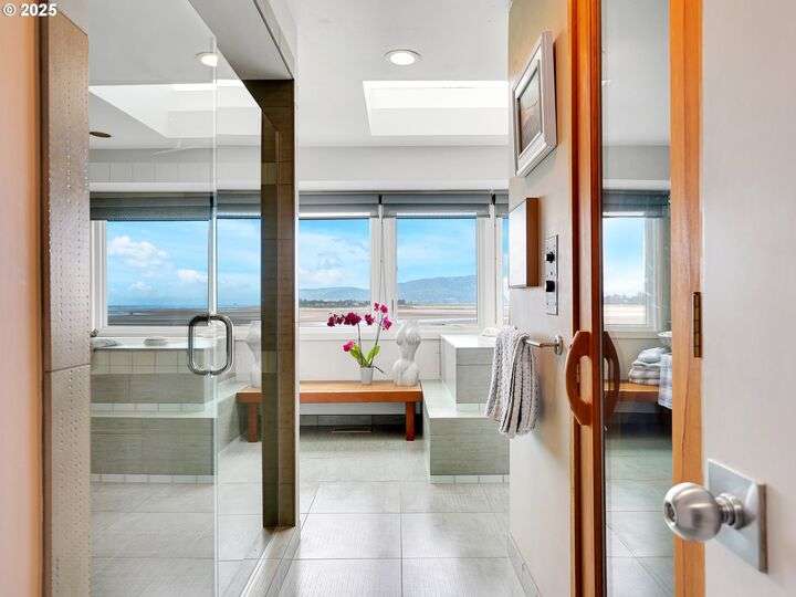 Escape to tranquility as you take your private drive to your stunning coastal retreat. Enter through a spacious and lovely courtyard into your haven of serenity, where breathtaking views of Little Beach Estuary, Ocean, Tillamook Head, Lighthouse, and Coastal Mountains create an unparalleled backdrop for everyday living. Also designed for nature lovers and bird watchers, this one-of-a-kind location offers a harmonious blend of luxury and natural beauty. High ceilings and expansive windows fill all main living areas with spectacular vistas and gas fireplaces for cozier evenings. Upstairs, a generous landing with a dedicated nook serves as an inspiring office space with incredible views. The primary suite offers a peaceful retreat, featuring captivating vistas and an indulgent spa-inspired bathroom with jetted soaking tub and sauna -your personal water-side spa escape. Enjoy outdoor living in abundance with a spacious waterfront deck, perfect for relaxing and soaking in the scenery. Want to explore? Step out on your own private beach access.