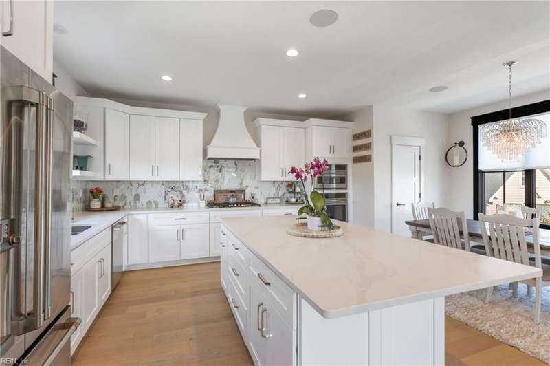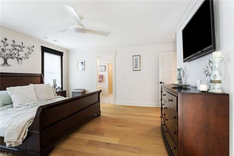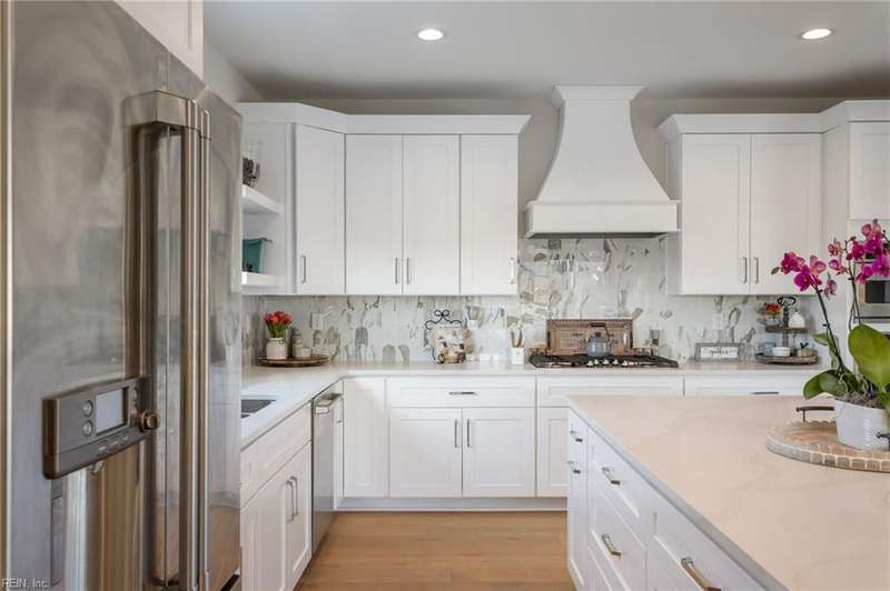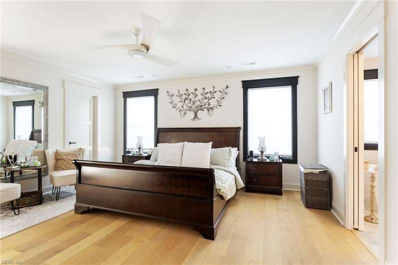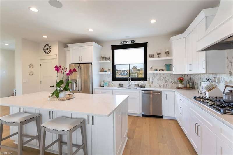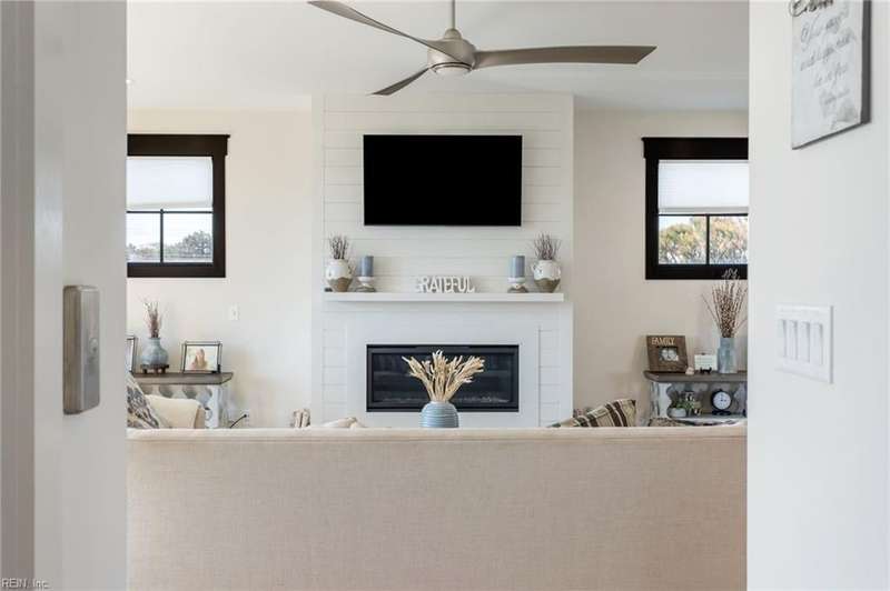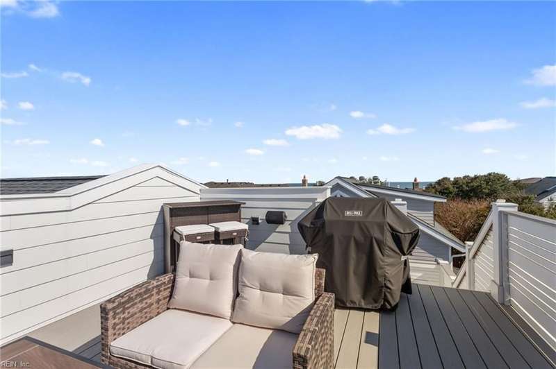 This beautiful, light-filled condo, located on a quiet street less than a block from the beach, is a perfect full-time residence or 2nd home. 3-story no-fee condo with elevator access to all floors. Enjoy ocean views from the roof-top deck. Small private yard with patio and 2 additional decks. 1st floor has 2 bedrooms and full bath, 2-car garage with storage closet and electric charging station, and outdoor shower. Large primary bedroom with beautiful bathroom and private deck is on the 2nd level. A 4th bedroom with ensuite is on the 2nd floor. The 3rd level is a beautiful open great room with fireplace, double-sliding glass doors, and large chefs kitchen. Luxuriously appointed: Quartz countertops, GE Cafe Pro Appliances, hardwood flooring throughout, Tankless gas water heater, 22 KW Generac generator, Elevator, Surround Sound speakers. LIKE NEW!
