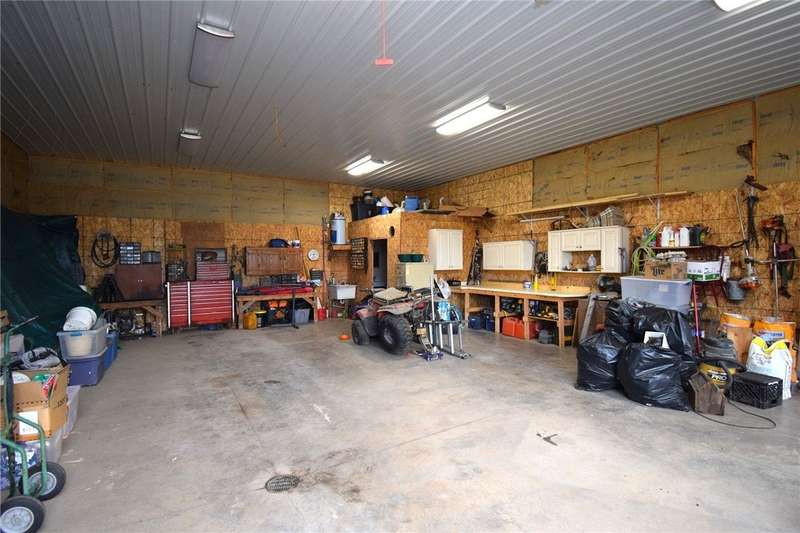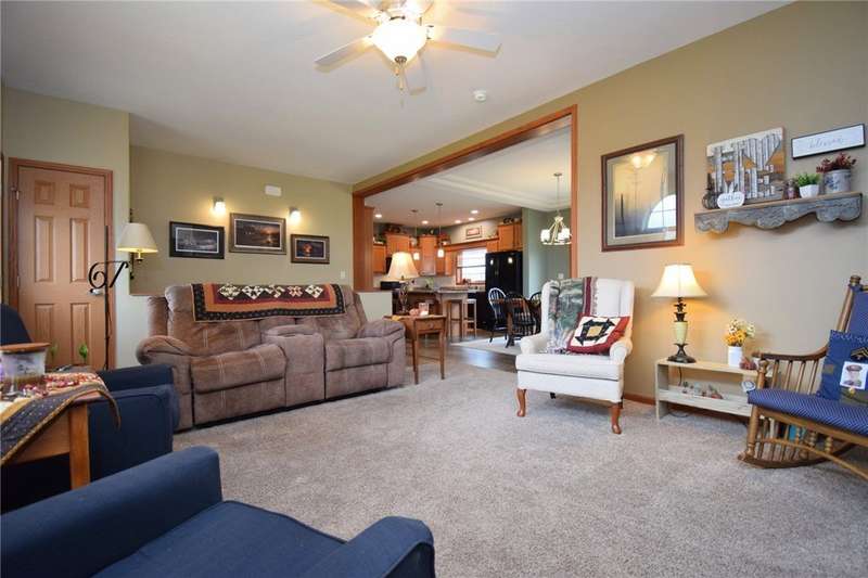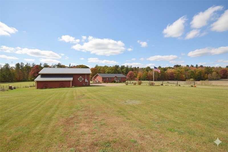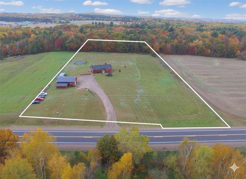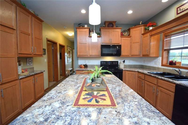 Charming newer 3 BR, 3 BA home offers all one level just outside of Spooner! Gorgeous setting situated on 5 private acres w/a mix of open and some wooded land. Home & all mechanicals new in 2018. You'll love the light & bright open floor plan! Stunning eat-in kitchen w/large island with seating and separate dining area, oak tiered cabinets, fun pendant lighting, black appliances & complimented w/distressed vinyl flooring. Perfect for entertaining! Large living room & dining accented w/reclaimed white barnwood. Retreat to your own master suite & 2 addt'l. BR's & BA for guests to enjoy. Main floor laundry, full basement is insulated w/finished 3/4 bath, 9' ceilings & is a blank pallet for you to finish to suit & egress window for addt'l. BR. Beautiful landscaping surrounds the home, perennials, deck to watch the wildlife, large fenced garden & a darling chicken coop & fenced run. Large steel 30x40 fully insulated/heated 2+ car gar. w/1/2 bath, lean-to for addt'l. storage, has all the makings for the perfect man cave & place to store all the toys. Such a rare find for a quality, highly efficient build that's impeccably maintained and ready for you to step into!
