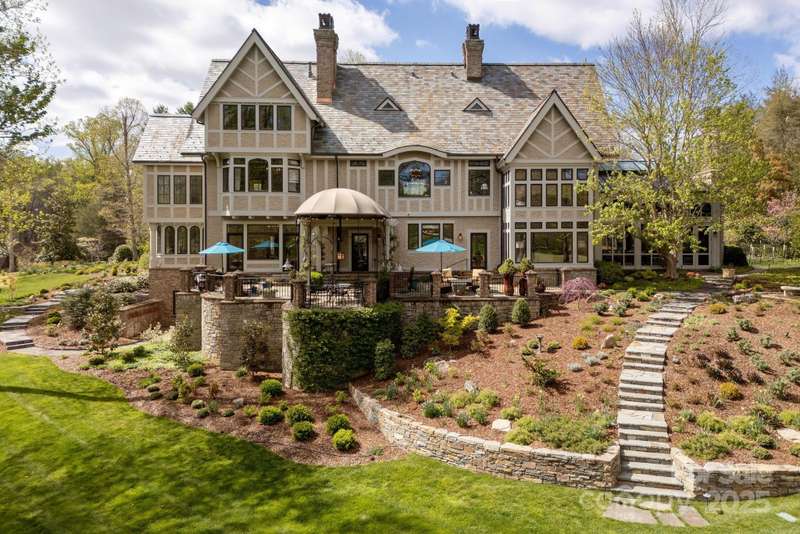 Welcome to 8 Fairway Place-a residence where timeless architecture meets refined living in one of Asheville's most sought-after communities. Inspired by French chateau elegance with subtle Tudor influences, this Griffin Architects, PA home offers both grandeur and comfort, just steps from the 7th fairway of the exclusive Biltmore Forest Golf Course. The entry hall is graced with William Morris-inspired stained-glass windows and a painted strapwork ceiling that highlight the home's history and artistry. An Edwardian sunroom/parlor, filled with natural light and set with terracotta flooring, creates an inviting space for relaxation. The formal dining room features stenciled Venetian plaster and a high ceiling adorned with a decorative plaster English rose motif. The butler's pantry, with its backlit English Art Nouveau antique stained-glass doors, opens to an expansive terrace. At the heart of the home, the soaring great hall is anchored by a striking stone fireplace framed in handcrafted woodwork-a space that is both a dramatic showpiece and a warm gathering place. Just beyond, the screened-in porch extends the living area and offers panoramic views of the lush golf course. The grounds are as breathtaking as the interiors, with thoughtful landscaping that provides year-round color and texture. Stone retaining walls and winding pathways echo the craftsmanship found throughout the home's design. From sunlit interiors to serene outdoor spaces, every detail at 8 Fairway Place reflects timeless elegance and effortless living. More than a home, it is a lifestyle defined by sophistication, community, and the natural beauty of Biltmore Forest. View the tour: bit.ly/8Fairway