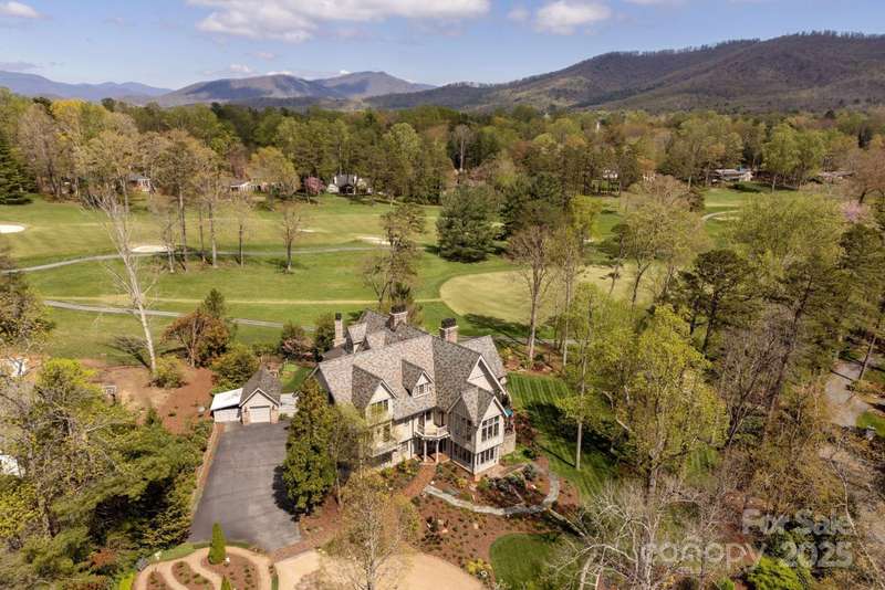 Welcome to 8 Fairway Place-a residence where timeless architecture meets refined living in one of Asheville's most sought-after communities. Inspired by French chateau elegance with subtle Tudor influences, this Griffin Architects, PA home offers both grandeur and comfort, just steps from the 7th fairway of the exclusive Biltmore Forest Golf Course. The entry hall is graced with William Morris-inspired stained-glass windows and a painted strapwork ceiling that highlight the home's history and artistry. An Edwardian sunroom/parlor, filled with natural light and set with terracotta flooring, creates an inviting space for relaxation. The formal dining room features stenciled Venetian plaster and a high ceiling adorned with a decorative plaster English rose motif. The butler's pantry, with its backlit English Art Nouveau antique stained-glass doors, opens to an expansive terrace. At the heart of the home, the soaring great hall is anchored by a striking stone fireplace framed in handcrafted woodwork-a space that is both a dramatic showpiece and a warm gathering place. Just beyond, the screened-in porch extends the living area and offers panoramic views of the lush golf course. The grounds are as breathtaking as the interiors, with thoughtful landscaping that provides year-round color and texture. Stone retaining walls and winding pathways echo the craftsmanship found throughout the home's design. From sunlit interiors to serene outdoor spaces, every detail at 8 Fairway Place reflects timeless elegance and effortless living. More than a home, it is a lifestyle defined by sophistication, community, and the natural beauty of Biltmore Forest.