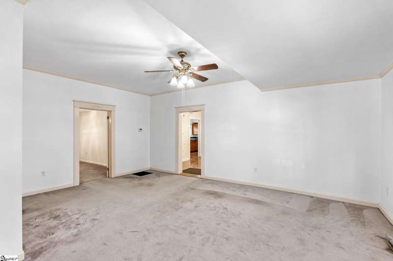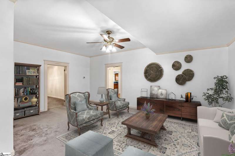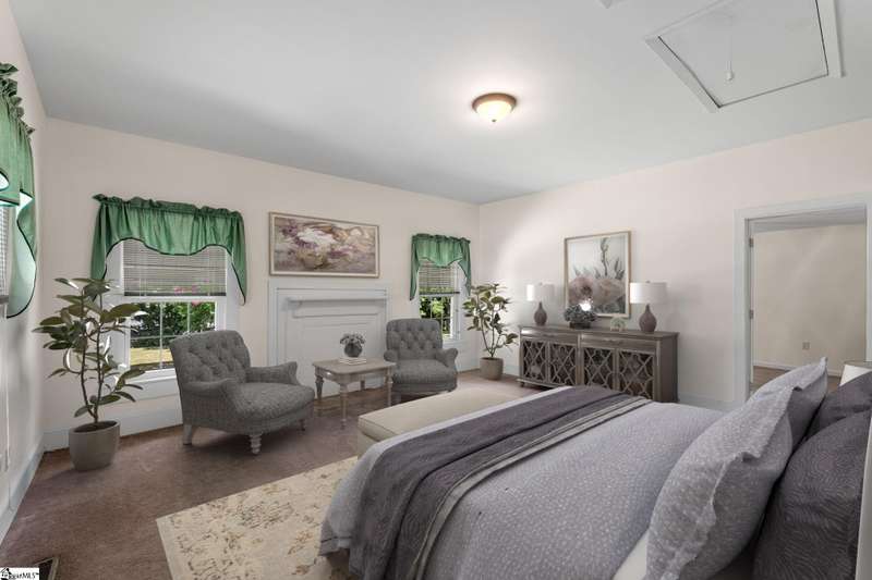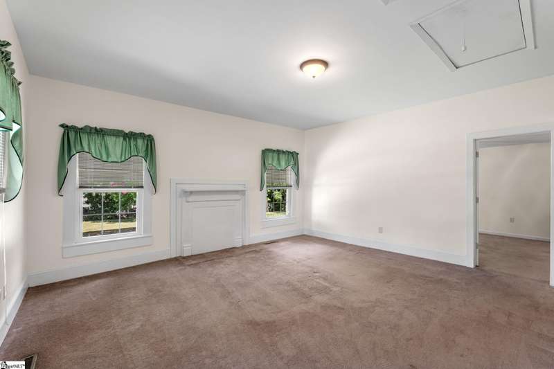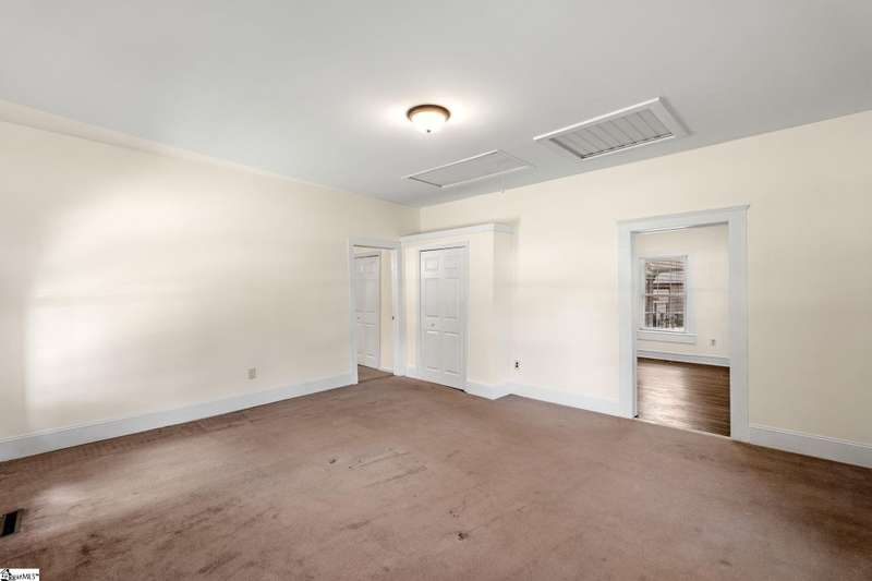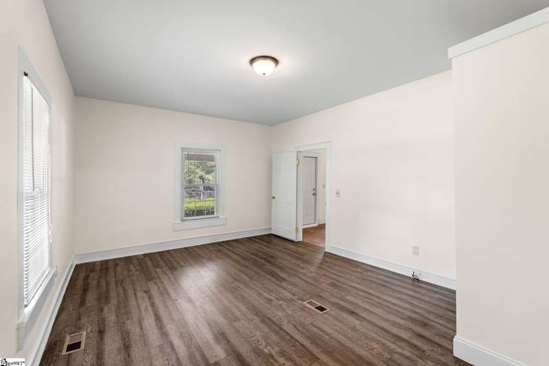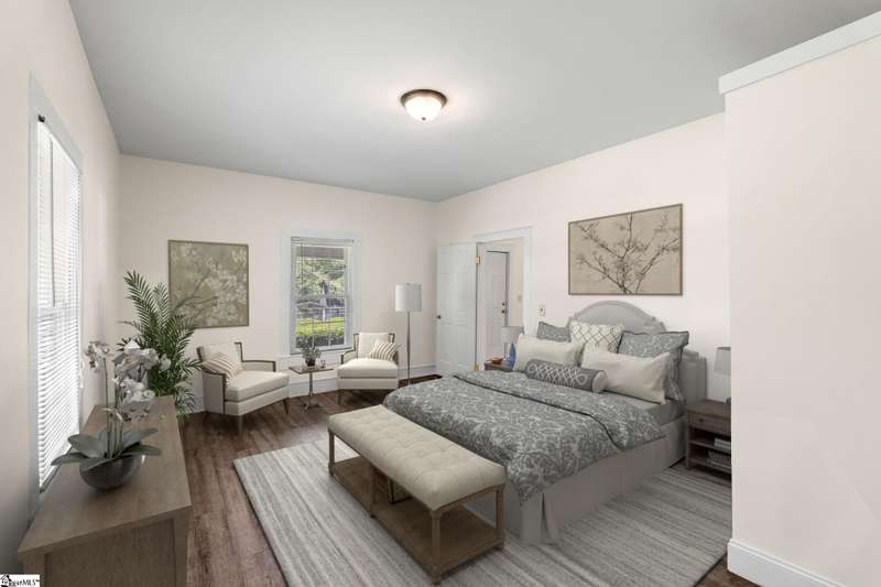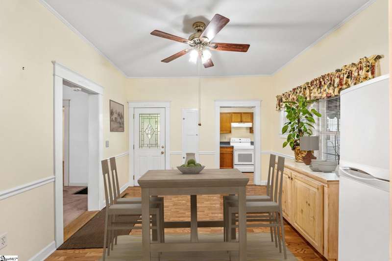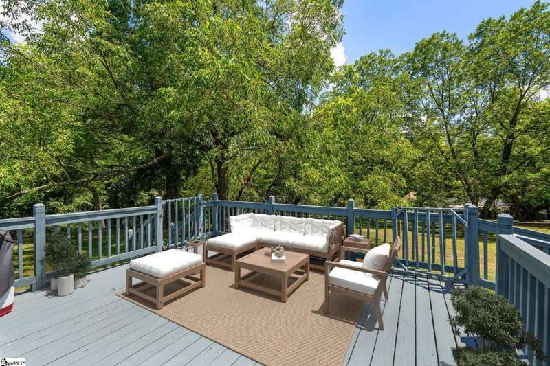 Nicely updated with a brand new roof and painted exterior plus fresh interior, this bungalow is ready for new owners! Set on just over an acre and fully fenced, this home features a spacious front porch, high ceilings, abundant natural light, and a cozy, yet functional layout that suits families and hobbyists. Highlights include a spacious laundry room, a screened-in side porch, and a back deck perfect for outdoor entertaining. The expansive grounds provide endless possibilities. With two garages and an additional, two-story storage shed, there's ample space for vehicles, tools, and hobbies. Rarely does a property of this size and character become available so close to downtown Greenville.