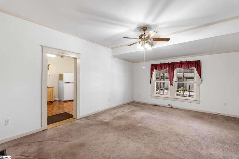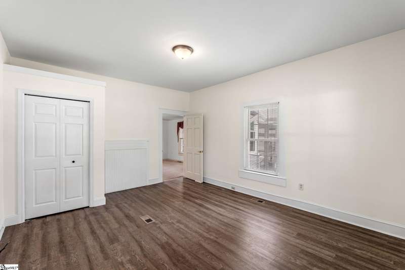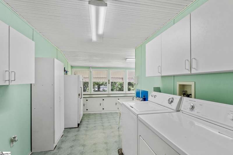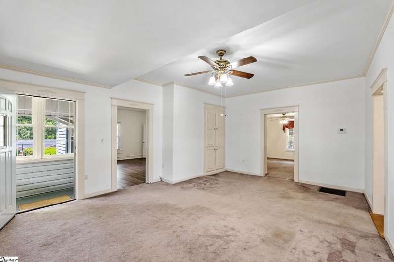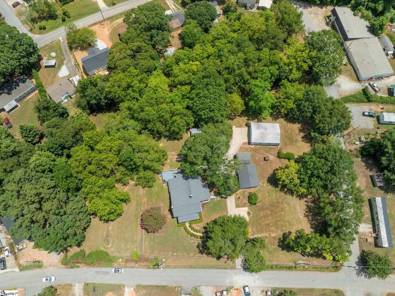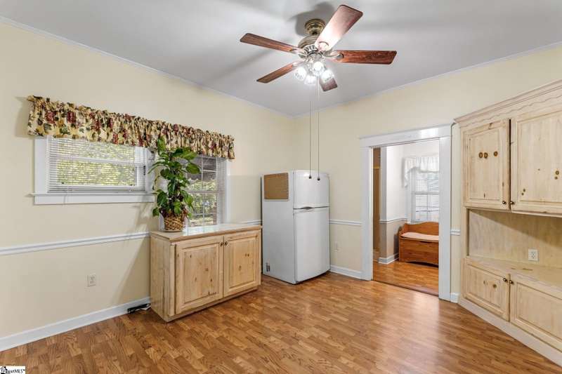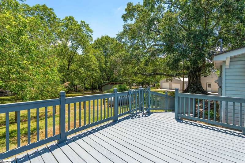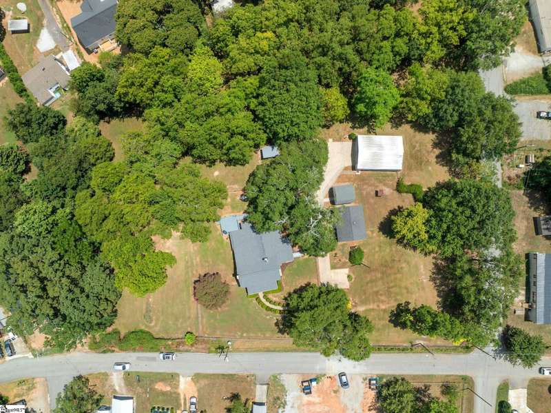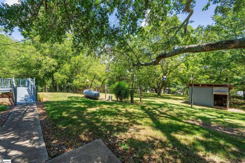 Nicely updated with a brand new roof and painted exterior plus fresh interior, this bungalow is ready for new owners! Set on just over an acre and fully fenced, this home features a spacious front porch, high ceilings, abundant natural light, and a cozy, yet functional layout that suits families and hobbyists. Highlights include a spacious laundry room, a screened-in side porch, and a back deck perfect for outdoor entertaining. The expansive grounds provide endless possibilities. With two garages and an additional, two-story storage shed, there's ample space for vehicles, tools, and hobbies. Rarely does a property of this size and character become available so close to downtown Greenville. Home, garages and sheds all sold AS IS.