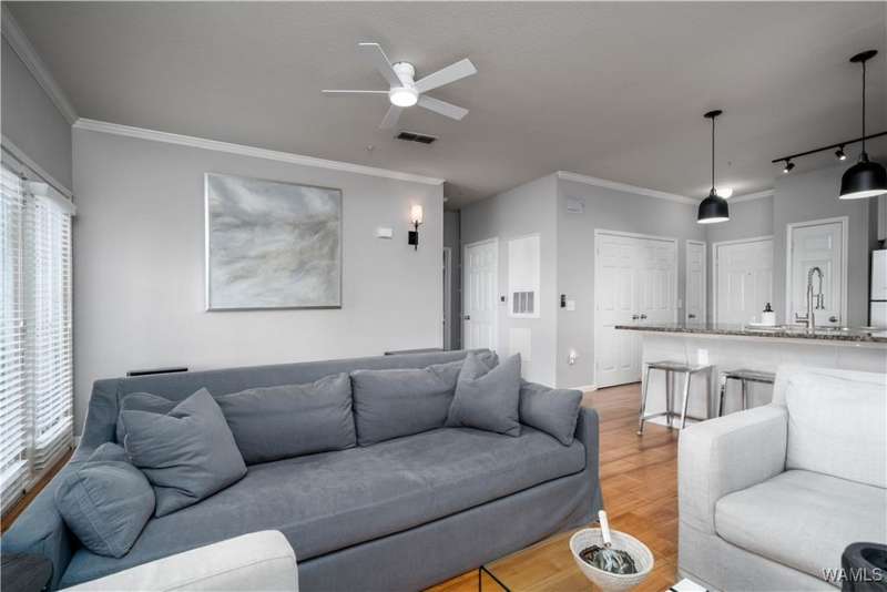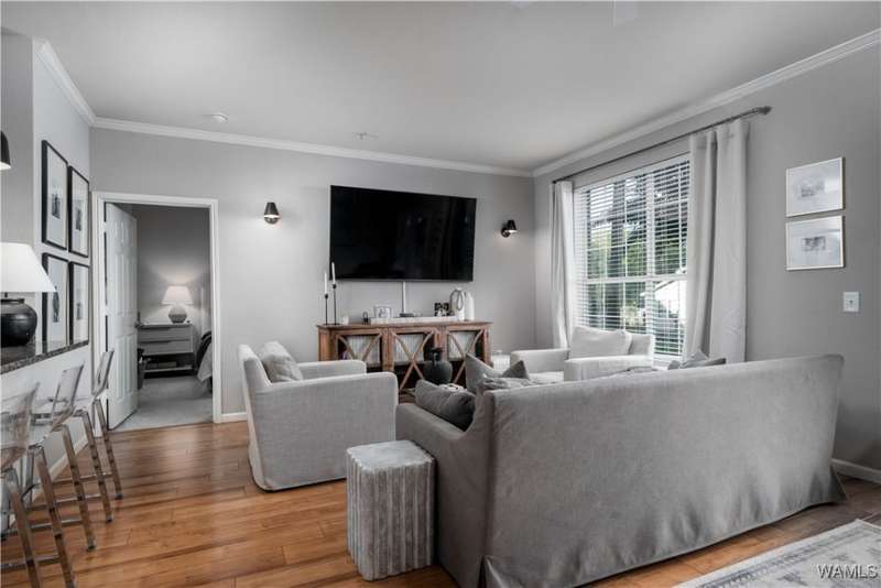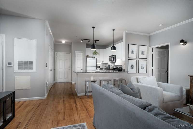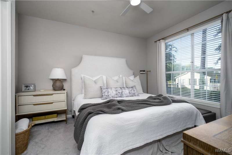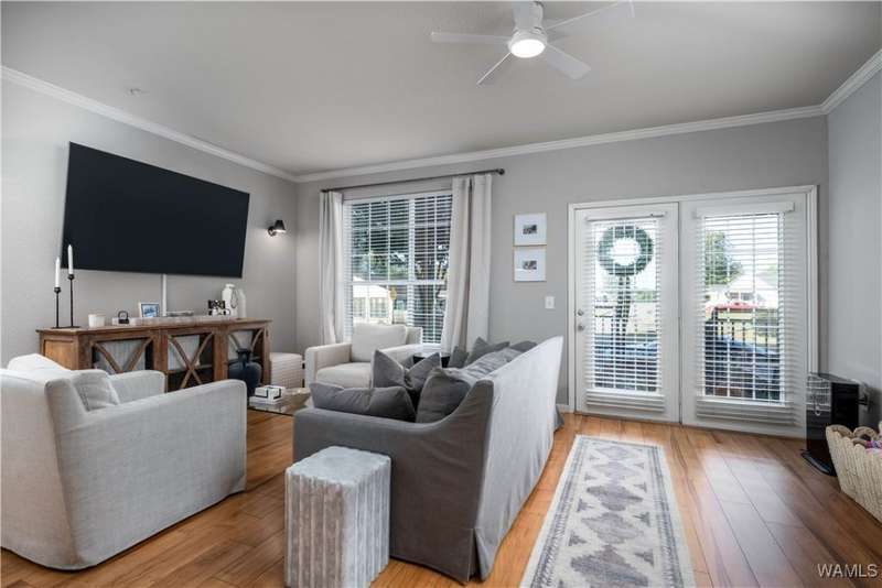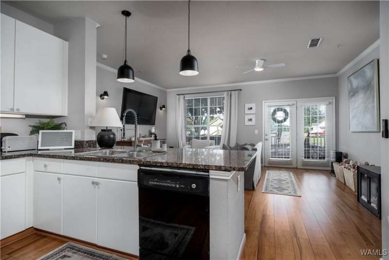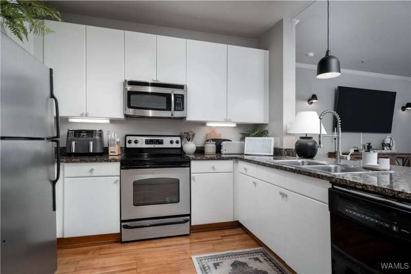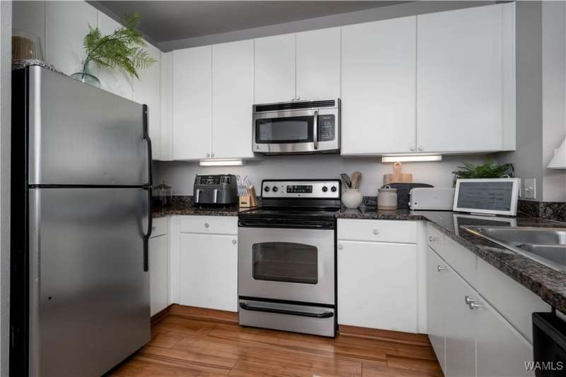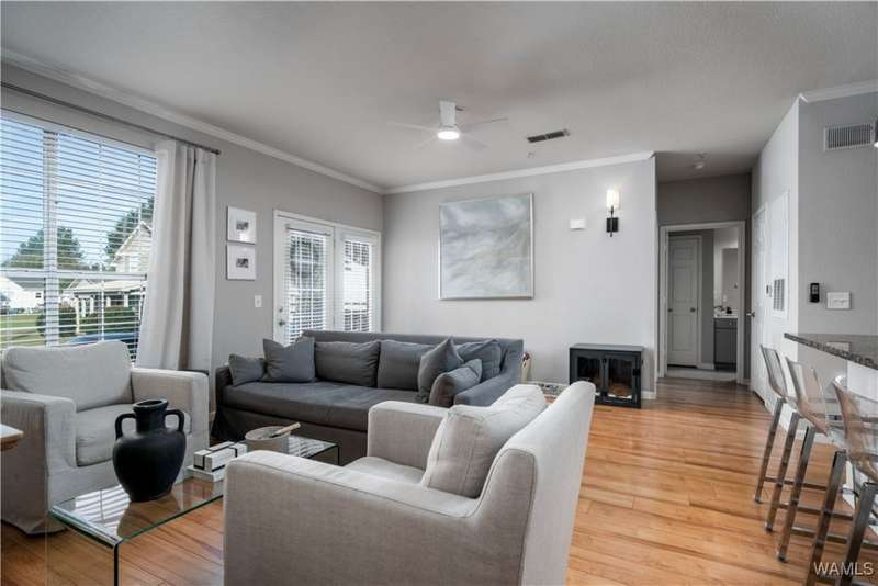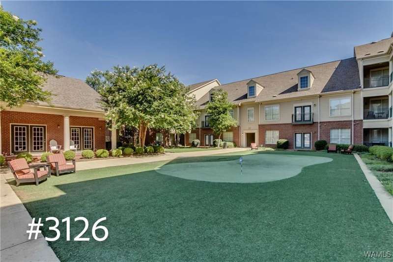This charming 2-bedroom, 2-bath condo offers the perfect blend of comfort and convenience. Located on the highly sought-after 1st floor, it features a walk-out patio with direct access to on-street parking. Inside, enjoy neutral, warm colors, abundant natural light, hardwood floors, granite countertops, and stainless steel appliances. Both bedrooms come with their own full baths and walk-in closets. Conveniently situated just steps from dining and shopping, and minutes from the University of Alabama. The complex boasts fantastic amenities, including a pool, putting green, fitness center, tanning bed, clubhouse with a kitchen, and two parking garages. Safety features include controlled gate access, security cameras, and fire alarm and sprinkler systems. Great accessibility!
