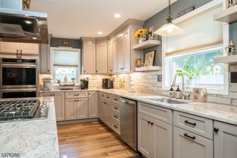 Set up is perfect for a Mother/Daughter! Welcome home to this one-of-a-kind Sparta residence, offering two distinct and beautifully arranged living spaces. The original side of the home contains 2 bedrooms, a family room with a pellet stove, a dining area, a kitchen with a breakfast bar, a full bath with tub/shower, and a laundry room all on one level. The two-story addition, which was completed in 2022, features a culinary chef's dream kitchen with a gas stove top, a double oven, granite countertops, a massive center island, a large pantry, a spacious living room, and a powder room all on the first floor. The second floor features one bedroom plus a den/office, oversized linen closet, a full master-bath suite, including a jetted tub and stand-up shower. The bedroom has his-and-her closets, an additional laundry area, and a huge attic for storage. The two living areas share a utility room, which leads to your fence-in private backyard with a fire pit and a patio for entertaining. A shed with electricity provides ample storage or a great space for hobbies. Recent updates in 2022 include a new roof, chimney, siding, windows, furnace, AC, and two water heaters offering Peace of Mind for years to come. Don't miss this opportunity to own a home that truly has it all.