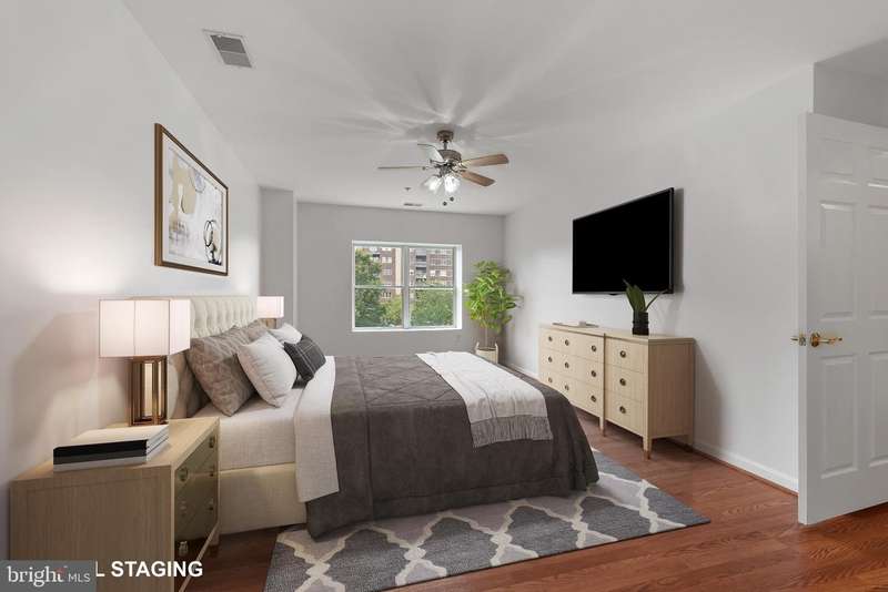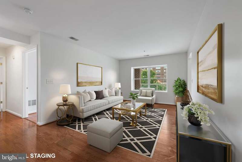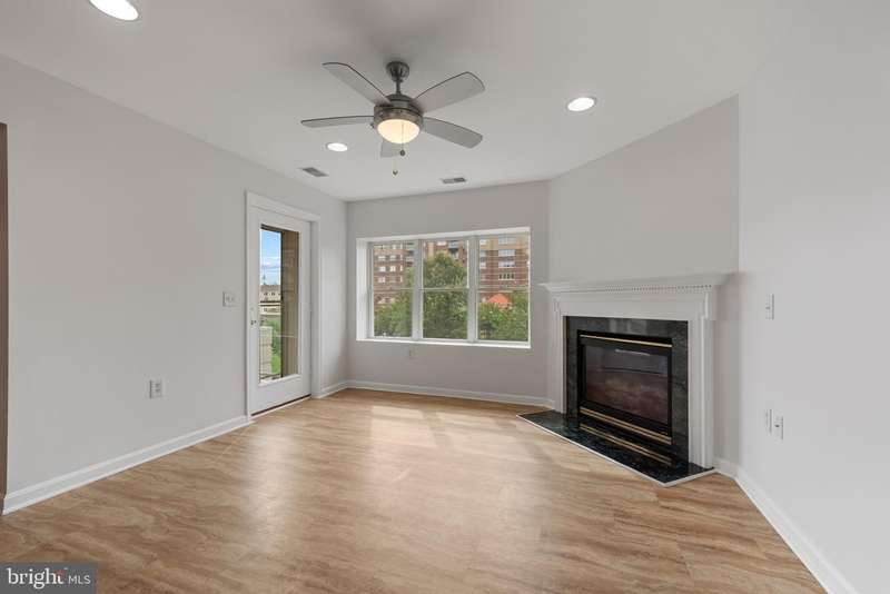 PRICE REDUCTION - Light filled 2 BR 2BA 1437 sq ft western exposure interior unit with hardwood flooring throughout. Freshly painted throughout in a neutral color. The expanse of white wood kitchen cabinets with newer stainless steel appliances await your cooking creations. The family room with a gas fireplace off the kitchen presents a comfortable area to relax. Both the living room and dining room provide additional living areas. The primary bedroom has a large walk-in closet and remodeled primary bath. A second bedroom and remodeled family bath complement the condo. Of course, a laundry/utility room, 2024 water heater is included. A Community room, two elevators, trash chute and storage room are in close proximity. The balcony off the family room offer views of the Gazebo and park-like setting that provide peacefulness, and an exterior place to enjoy a morning coffee or evening beverage. Within walking distance to the neighborhood shopping center with a food market, numerous eateries, a drug store, hair salon, etc., provide the easiest of living. This condo awaits your arrival.