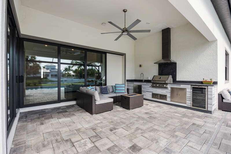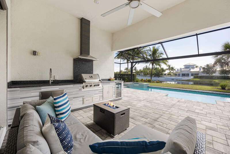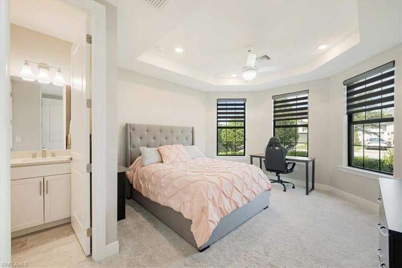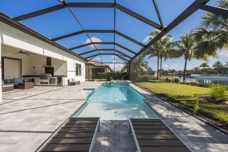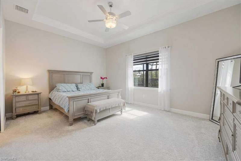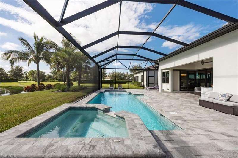 Welcome to Greyhawk at Golf Club Of the Everglades, a natural gas & beautiful Golf community located in North Naples off Vanderbilt Beach Rd! This upgraded & thoughtfully designed "Pinnacle model" features a heated saltwater pool & spa, outdoor kitchen, whole home natural gas generator for peace of mind, hurricane impact windows and doors, x flood zone, and is ideally located just steps from the Amenity Center (Tiki bar! Community Pool! Gym! Social Events & more!) Offering true resort-style living in a gated, guard-attended community. This home features 3 spacious bedrooms, plus den/office/4th bed option. 2 en-suite style bedrooms for guest privacy and convenience. Also features a lot of thoughtful upgrades- including tray ceilings, crown molding, wainscoting, and designer finishes throughout, along with an open-concept great room highlighted by an elegant wood-and-stone feature wall with electric fireplace. Kitchen has the larger upgraded island with extra storage, natural gas cooking, Kitchen Aid appliances, built-in microwave and oven, and a custom wine & coffee bar with wine cooler and storage pantry. 3-car extended garage with epoxy flooring truly fits 3 cars- or 2 large suvs and the Golf cart! Enjoy seamless indoor-outdoor living with zero-corner sliding doors opening to the expansive extended lanai featuring a picture screen cage, outdoor natural gas kitchen, and a heated saltwater pool and spa with sun shelf, bubbler, and color lighting. Reverse osmosis whole-house filtration system and a separate kinetico drinking system at the sink. Community Lifestyle: Greyhawk residents enjoy a vibrant social calendar and exceptional amenities, including a resort-style pool and spa, outdoor tiki bar, full-service indoor and outdoor dining, fitness center, yoga/pilates studio and classes, tennis, pickleball, bocce, and walking trails. The community is golf-cart friendly and offers golf privileges at the Golf Club of the Everglades May- October for any and all residents. Golf membership information and social membership information available in supplements. Greyhawk is a wonderful place to live, whether its year round or your winter get away- you wont be disappointed with this lifestyle here in paradise!