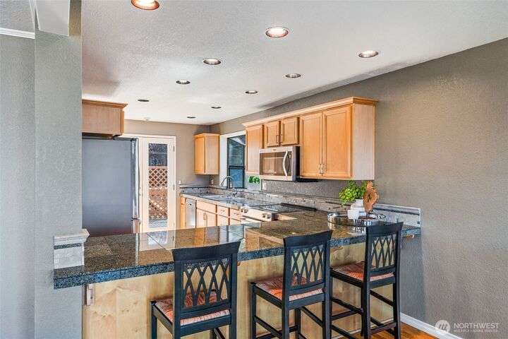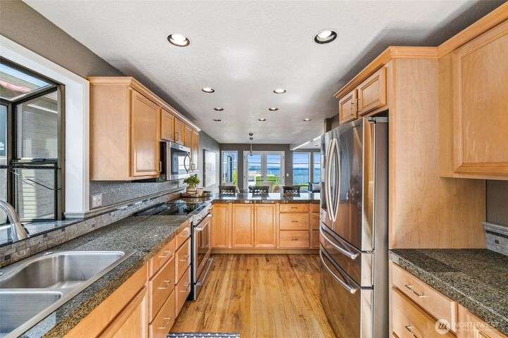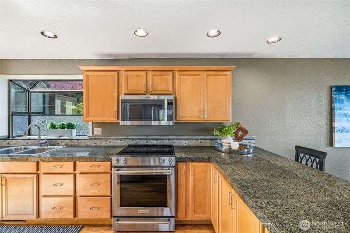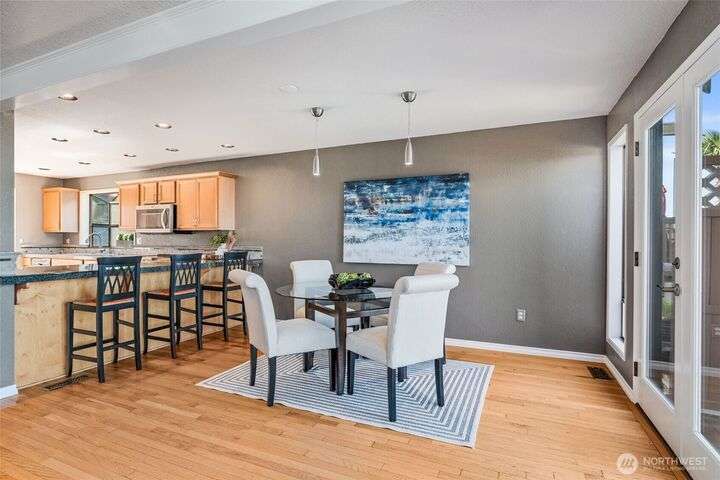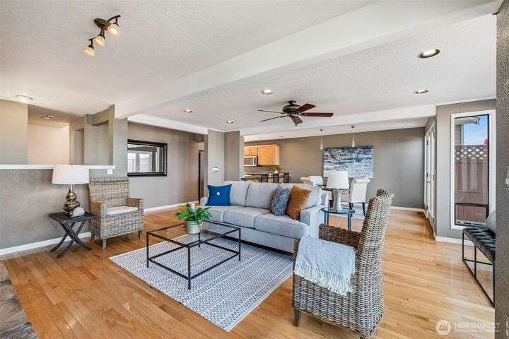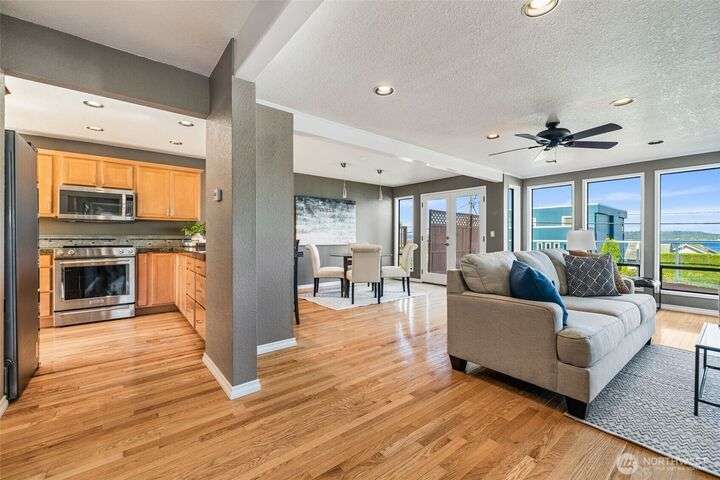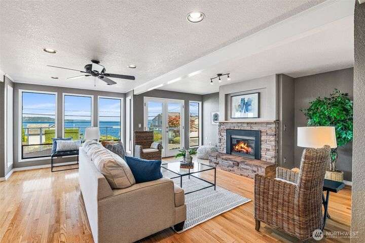 Life at Redondo Beach! Located 1/2 block from the beach, in minutes you can have sand between your toes, dip into the Sound, fish for salmon, walk the boardwalk & all this while living in this gorgeous home. Immaculate and fresh w/newer int paint & carpet, this home has SO much to offer. 2nd level is bathed in natural light with Western facing windows overlooking the Sound. Open great rm w/gas fireplace, double french door access to entertainment sized deck & L shaped kitchen with newer SS appl incl Bosch DW. Main floor has 2 bedrooms & 2 baths (one bdrm is ensuite) plus laundry. Top level is a lavish primary suite offering incredible views/sunsets, 3 closets in bdrm area, office+reading nook, lrg ¾ bath. Spacious garage+storage. NEW roof!