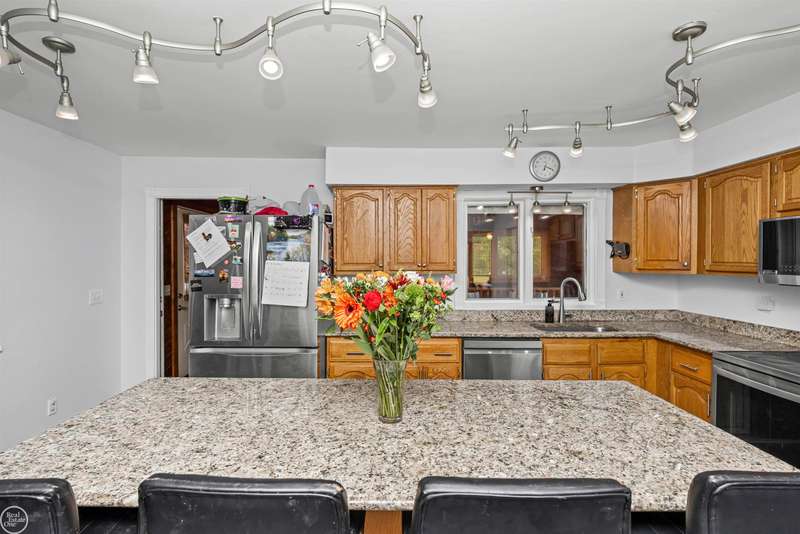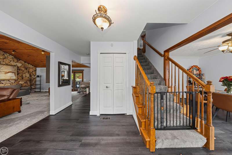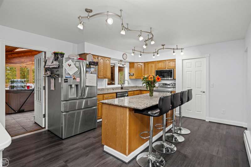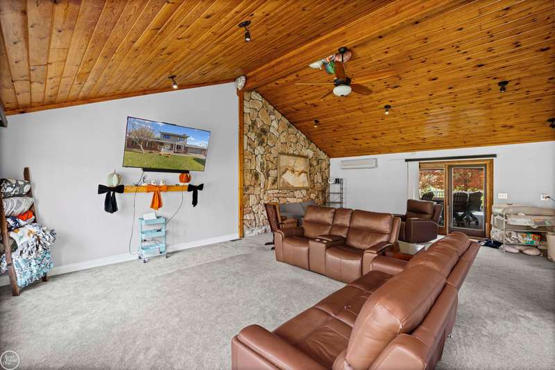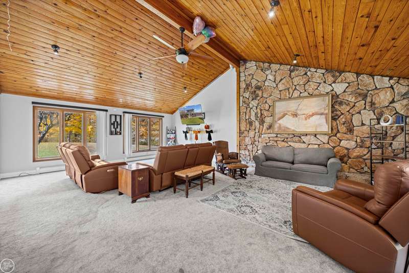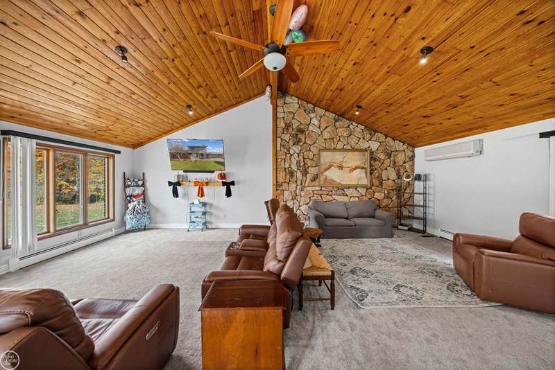Peaceful Country Living on 4.5 Private Acres! Tucked away on a serene, wooded lot, this spacious Colonial offers privacy, charm, and modern comfort. A wraparound deck provides the perfect setting for relaxing or entertaining. Inside, a large living room with vaulted ceilings and expansive windows fills the home with natural light and picturesque views. The main level includes a convenient first-floor laundry and half bath, while upstairs offers four bedrooms, including a primary suite with a full bath. Enjoy year-round comfort in the inviting 4-season room complete with a hot tub. The fully finished basement provides additional living space with a wood-burning stove, abundant storage, and a separate area with its own entrance and full bath--ideal for an in-law suite or guest quarters. Additional highlights include a 2.5-car attached garage and an outdoor storage shed. Recent updates include a generator (2024), full well rehab (2023), all new appliances (2025), whole-house water filtration system (2025), and new sump pumps (2025). A rare opportunity for peaceful country living--just minutes from town conveniences!