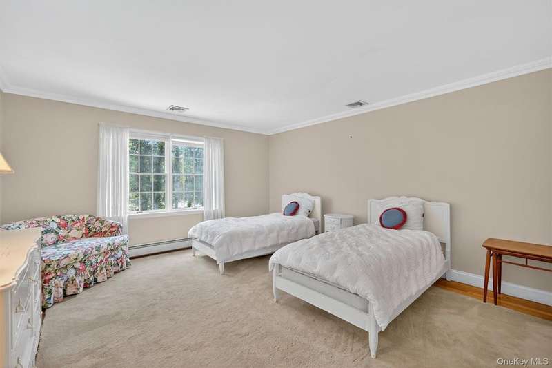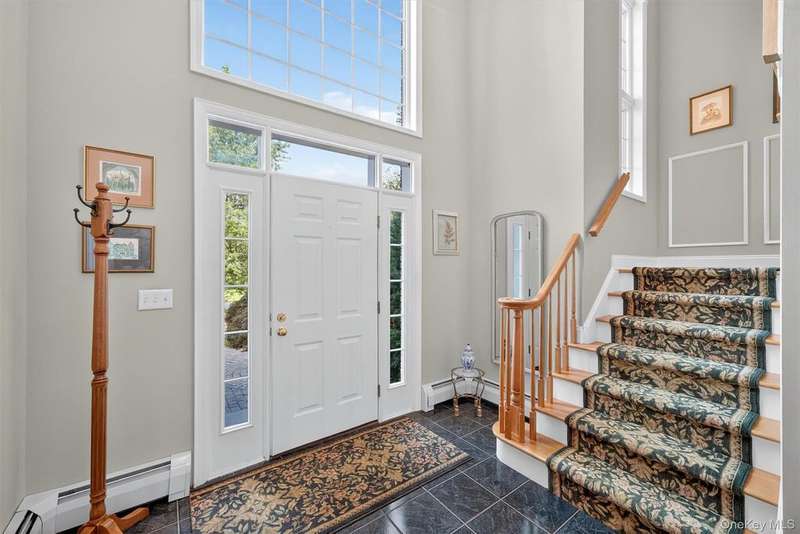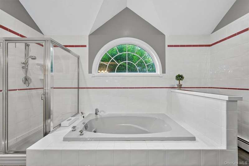 Experience refined living in Tuxedo Park's coveted Table Rock Estates with this elegant 4 bed, 2.5 bath Contemporary home. Set on 1.3 private acres with direct access to protected state land, this property offers the ultimate in privacy and tranquility. Inside, a grand entryway leads to the stunning living room, where a soaring vaulted ceiling, massive windows, and a custom stone fireplace create a showpiece of light, space, and comfort. Natural sunlight pours in, illuminating views of the lush backyard and surrounding woods. The thoughtful layout offers multiple living and entertaining areas, including an oversized formal dining room and spacious eat-in kitchen. The main floor primary suite is a peaceful escape, featuring a walk-in closet and a luxurious en-suite bath with a jetted soaking tub. Upstairs, three generously sized bedrooms with walk-in closets and share a stylish, spa-inspired bathroom. The oversized two-car garage has tall ceilings, ideal for large vehicles or extra storage. Unlock the full potential of this property with a spacious, unfinished basement awaiting your custom touches and limitless possibilities. Outside, unwind on the patio and soak in the tranquility of one of the most secluded lots in the neighborhood. With taxes under $14,000 and convenient access to major highways, the GW Bridge (30 miles away) and public transit options including the Tuxedo Train Station and bus to NYC, this is luxury living with everyday convenience. Schedule your tour today and experience the lifestyle you've been waiting for.