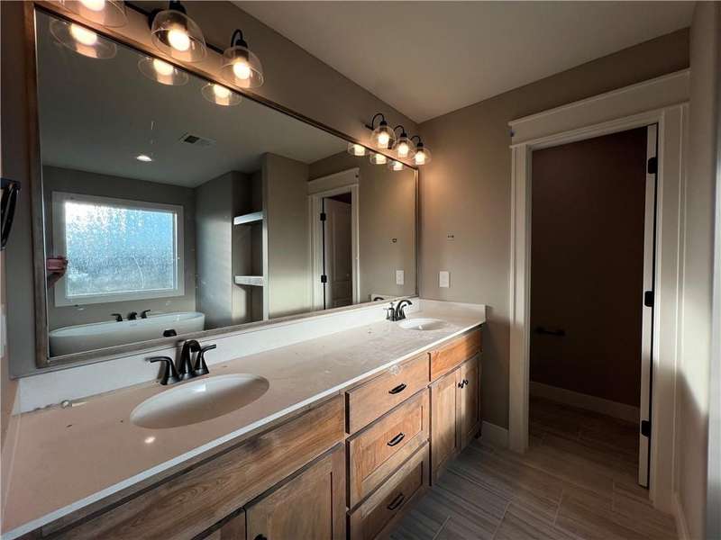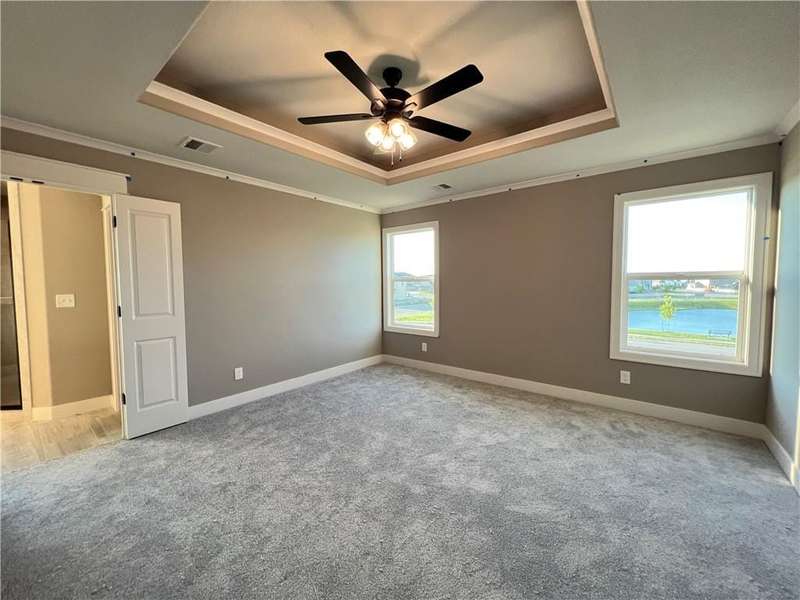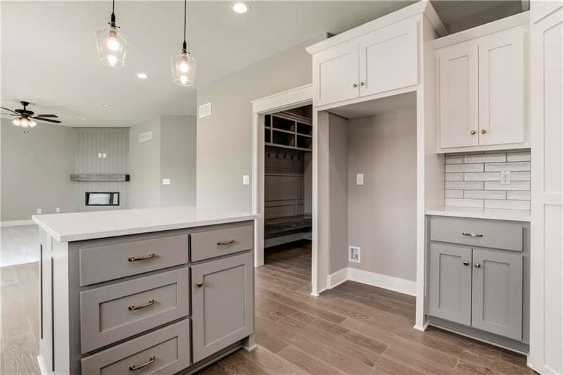 The Greyson EXP Plan, New Kitchen layout, expanded living room space, huge Master Closet, and new master bath layout. Office with upgraded glass doors. Expanded Farmhouse-Style Front Porch with custom railing. 2-inch faux wood blinds included! Hardwoods in the Breakfast, Kitchen, and Entry. Built-in expanded mud room with a floating bench off the garage entrance. Incredible trim details in the custom floating boot bench and the office accent wall. Free-standing tub. Quartz kitchen and bathroom tops. A second enamel color is featured on the kitchen cabinet upgrades and feature walls. Kitchen faucet upgraded to champagne bronze and upgraded kitchen backsplash tile! Custom prep pantry addition, with a can stack, work area, and shelving to the ceiling! Painted garage interior, wifi capable garage door openers, and key keypad. A lawn sprinkler system is included for the sodded areas. Smart thermostat. Custom Master closet trim work, with added double stack-bench and face-framed shelves. Check out the loft area at the top of the stairs, a great place to add a desk or reading corner. Flooded with natural light. Upgraded Craftsman and simple Craftsman capped door casings. Area Amenities include a STOCKED fishing lake, a heated swimming pool with extended seasonal use, a playground, picnic shelter, firepit area, and trails. Taxes and square footage are estimated.