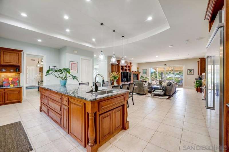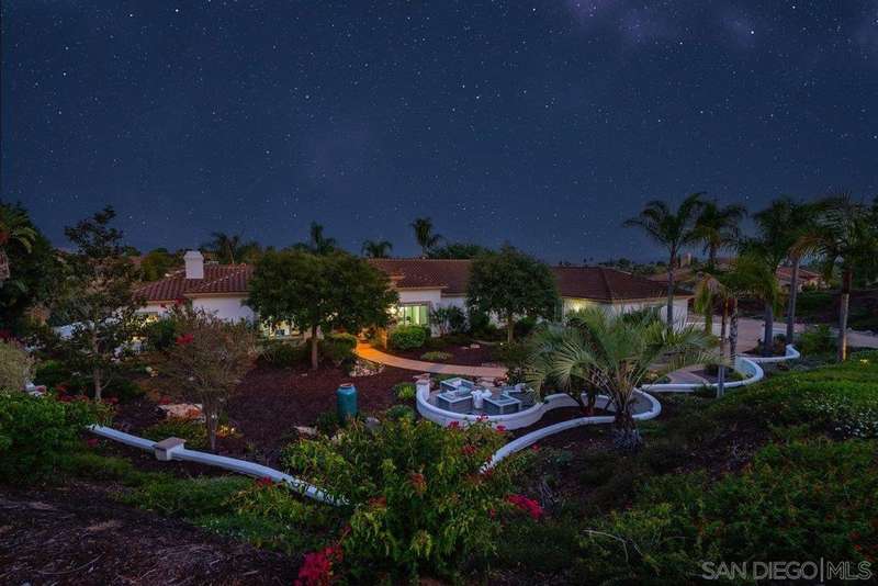 Chef's Dream Kitchen & Entertainer's Paradise: The heart of the home is the state-of-the-art professional kitchen, equipped with high-end built-in appliances, granite countertops, and a large central island perfect for both prep work and entertaining. A built-in wet bar and entertainment center complement the inviting living areas. Sustainable Living: This eco-conscious estate includes paid solar, keeping utility costs exceptionally low. Additional green features include a reverse osmosis system, water softener, and central vacuum. Privacy & Security: Secluded and fully fenced, the property is accessible through a security gate and stucco walls, ensuring ultimate privacy. The grounds are meticulously landscaped with drought-tolerant plants, a variety of fruit trees--including avocado, fig, tangerine, walnut, guava, persimmon and apple-- fully irrigated for ease of maintenance. Additional Features: * Oversized four-car garage with built-in cabinetry and an electric car charger * Newly designed exercise/yoga room * Whole-house fire sprinklers * Covered stucco exterior eaves for added durability This property is an exceptional blend of luxury, convenience, and sustainability, offering a rare opportunity to live in the highly sought-after area near Fallbrook Winery. A must see!