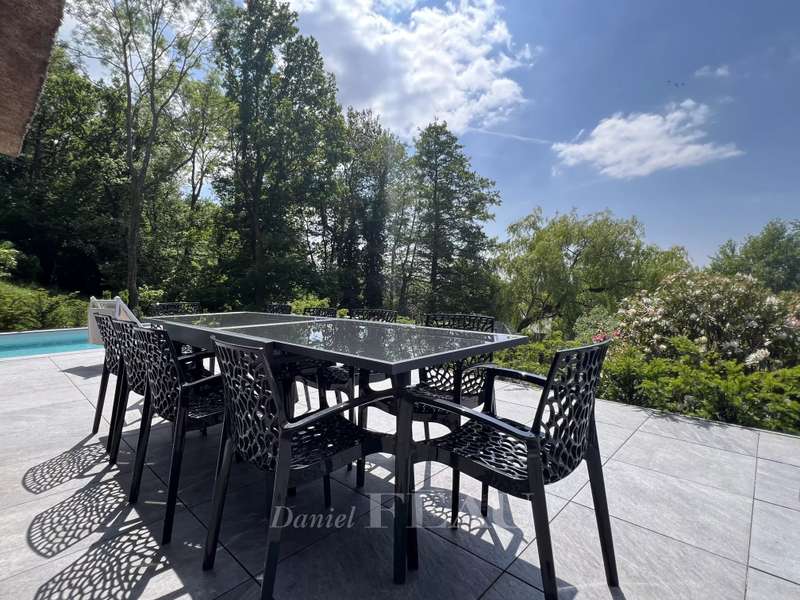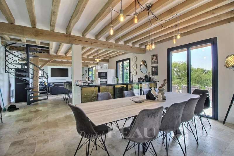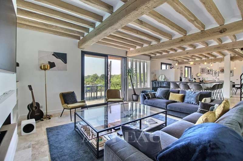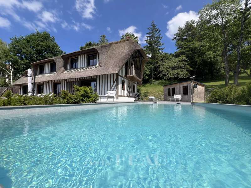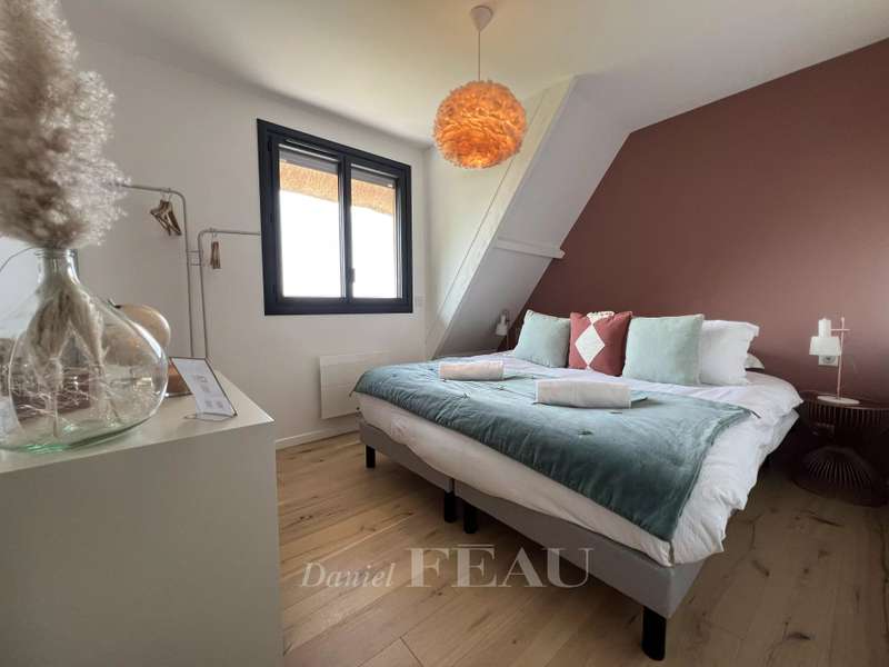 This entirely renovated and beautifully appointed “Lebas” thatched property offering 180 sqm of floor space is in a secure and sought-after residence with a tennis court and a caretaker. Set in a 2800 sqm plot with a swimming pool, it includes an over 60 sqm living/reception room with a fireplace, an open-plan kitchen and a dining room (all accessing a 90 sqm south/west facing terrace enjoying an open view), a master suite with a bathroom, and a guest wc. Upstairs a landing leads to four bedrooms each with a bathroom, a utility room and a separate wc. Love at first sight.