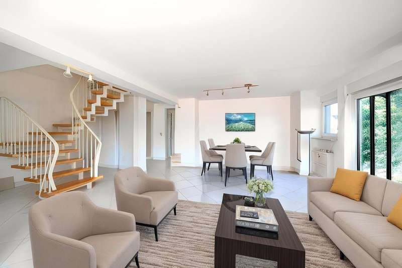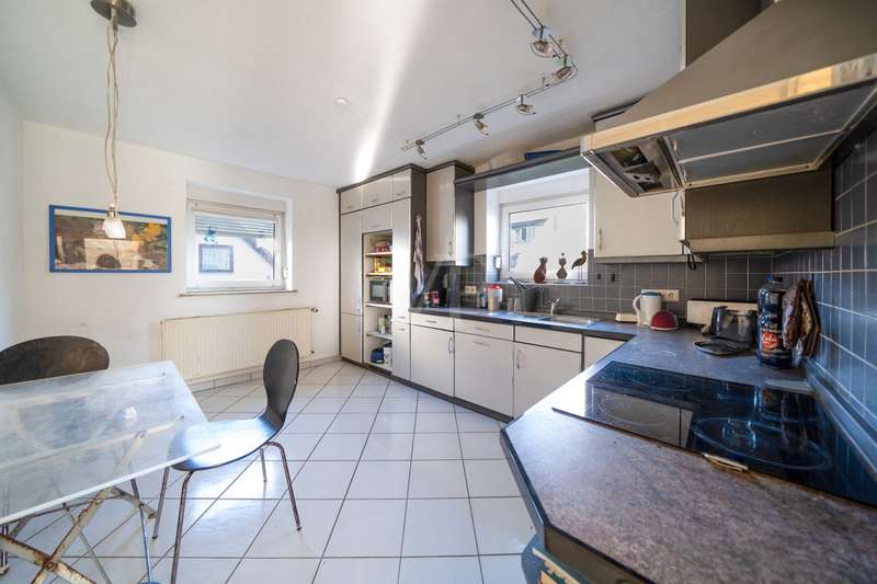 The building is currently divided into one ready-to-occupy apartment (part A), spread over 3 floors, with a floor area of approx. 200m². The other two parts (B,C) of the building are still in an unfinished state. The furnishings of the house (A) can be described as simple, which offers buyers scope for individual adaptations and improvements. Due to the renovation in 1992, some aspects of the property have already been modernized, but there is still a need for renovation in many areas, which offers future owners the opportunity to bring in their personal ideas. Spread over a generous living area, the house (A) offers a variety of rooms that can be individually designed. On the first floor, the hallway leads into a spacious living room, which offers enough room for cozy hours with the family. The adjoining kitchen has a functional layout and can be transformed into a modern focal point of the house with new equipment. There is also a daylight bathroom on this floor. The upper floor houses a bedroom and two bedrooms, which can be used flexibly as bedrooms, children's rooms or studies. Each room has sufficient natural light and therefore offers a pleasant atmosphere. An older bathroom with a corner shower rounds off the space on this floor, although there is scope for modernization here to increase comfort. On the top floor, you will find another room with an adjoining bathroom, which is ideal as a guest room, hobby room or retreat. The granny apartment is accessible via a separate entrance and comprises a living/dining room with a small kitchen, a bedroom, a bathroom and a storage room. It can also be used as an additional living space via direct access. This means that you can get straight to work on the interior fittings and design everything according to your wishes and ideas. Possible uses and further potential could therefore be: a house for generations, living and working under one roof, mixed property between owner-occupation and investment, connection of the 1st apartment and 2nd unit and use of the 3rd apartment as a guest apartment/office. In addition, the property has a spacious basement and sufficient parking spaces directly in front of the house. The outside area of the house is easy to maintain and offers space for relaxing hours outdoors. The surrounding area is characterized by a quiet neighbourhood and offers various shopping facilities as well as schools and kindergartens in the immediate vicinity. The consistent combination of living space, location and potential of this property is of particular interest to handy buyers who are willing to take on the renovation work to create a home to their liking. If you are interested in a viewing or further information, please do not hesitate to contact us. A viewing of this versatile house could be the first step towards your new home.