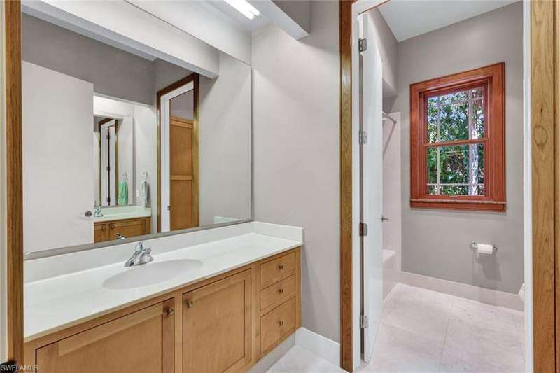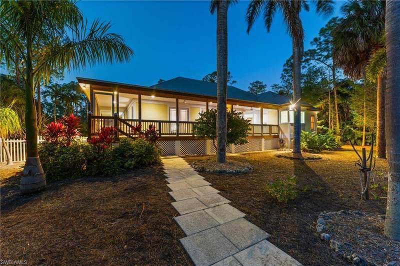 Discover a masterfully crafted Florida Vernacular estate in the heart of Oakes Estates, Naples, FL, where expert craftsmanship meets timeless design. This stunning property offers a main house, guest house, and expansive outdoor spaces, all designed with quality and longevity in mind. The main home features 3 bedrooms plus a den. Soaring 10-ft ceilings and 8-ft doors throughout create an open and airy feel, while prairie-style windows enhance its architectural charm. The interior showcases custom, locally crafted solid rock maple cabinetry and unstained white oak flooring, adding warmth and character to the home. The primary suite boasts a one-piece marble shower and a custom walk-in closet. Functionality meets convenience with a whole-house reverse osmosis system, a new exterior and interior paint job, and masonry construction. The home is designed with no interior load-bearing walls, allowing for a flexible floor plan for potential future updates. Extra-deep garages provide ample storage, and the property includes an air-conditioned shed. Additional features include a central vacuum system with a new motor, copper plumbing, a newer water heater, and a 5-ton AC. The guest house, built in 2006, offers 1,100 sq. ft. under air with 2 bedrooms and 1.5 baths. It features polished concrete floors, impact-resistant PGT windows, and high-end finishes, including granite countertops and luxury German cabinetry. Stainless steel appliances complete the modern kitchen, making it a perfect retreat for guests or extended family. Outdoor living is a dream with a 3/4 wraparound porch that exudes Florida Vernacular charm. The property includes a gunite pool with a new filter recently installed. A tranquil canal in the backyard provides a perfect spot for fishing, with large-mouth bass, peacock bass, snook, and gar frequently found in the waters. Situated in Zone X, flood insurance is not required. The home sits 50 inches above the crown of the road, ensuring an elevated and secure foundation. This estate seamlessly blends luxury, durability, and thoughtful design, creating a home that is as functional as it is beautiful. Enjoy the serene, private setting of Oakes Estates while being just minutes from Naples' world-class dining, shopping, and beaches. Schedule a private showing today and experience this one-of-a-kind property for yourself!