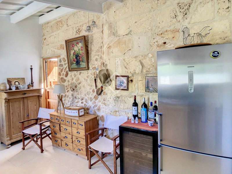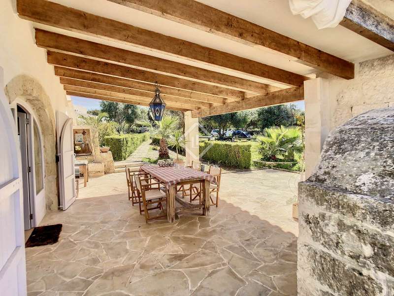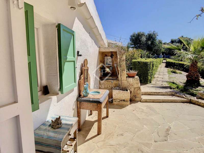 Rural house of 295 m² built, completely renovated with two pretty little houses in the garden for guests, located on a plot of 1,662 m². Both houses are fully equipped and distributed in bathroom, kitchen, living room / bedroom. The main house has many windows with the typical Mediterranean shutters. In it, a glass door with arches gives us entrance to the house and then we find a charmingly furnished living room with a wood-burning fireplace, a fully equipped kitchen with a natural stone wall, a dining room and a double bedroom with private bathroom and office. Behind one of the pretty doors on this floor, there is a staircase that leads to the master bedroom with en-suite bathroom and terrace. From this terrace, there is a wide view of the Menorca countryside and the Mediterranean Sea. From the ground floor, there is access to the lower ground floor that can be used as a cellar. Outside, we find a covered terrace in front of the main house with the beautiful stone oven and the old well. In addition, two independent guest houses are offered, fully equipped with bathroom, kitchen, living room/bedroom and private terrace. The garden has a beautiful landscaped area with various trees and shrubs, including olive and palm trees. In addition, enough space is offered outside to park several vehicles. Without a doubt, a rural house to spend time with family and/or friends. Contact us for more information, or to arrange a visit.