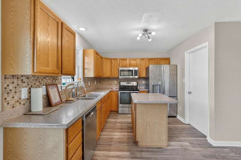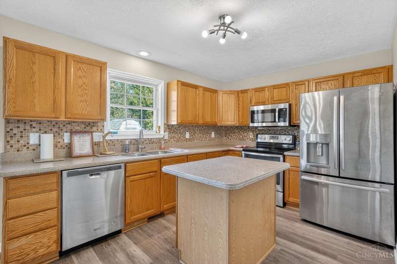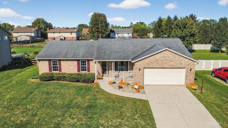 Newly Updated 3 Bed Brick Ranch in Weathered Oaks, Fresh Paint, Doors & LVP Floors Throughout. Main Living Area Features Open Floor Plan, Vaulted Ceilings & Gas Fireplace, Spacious Kitchen with Stainless Appliances. Additional 1000+ Sq Ft of Unfinished Basement Ready for Your Touches. Cozy Covered Front Porch with Concrete Patio Out Back that Overlooks Gorgeous Fenced Yard & Shed. Terrific Location Minutes from Liberty Township & Hamilton. Furnace/HVAC 2020, Don't Miss this One with Immediate Occupancy!