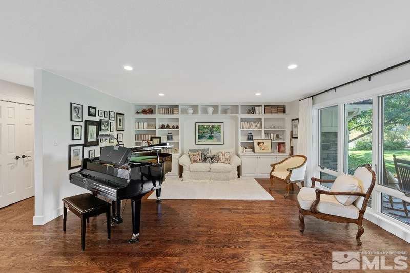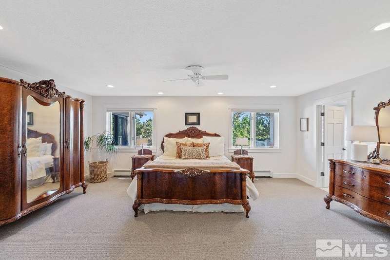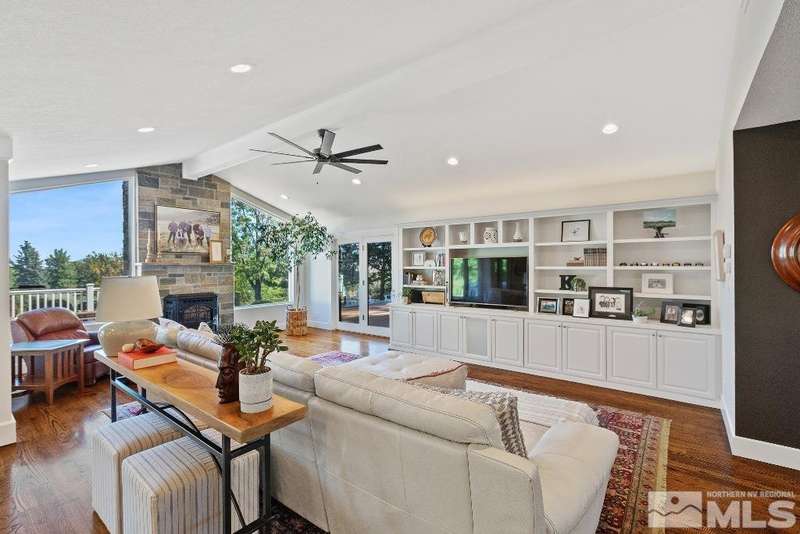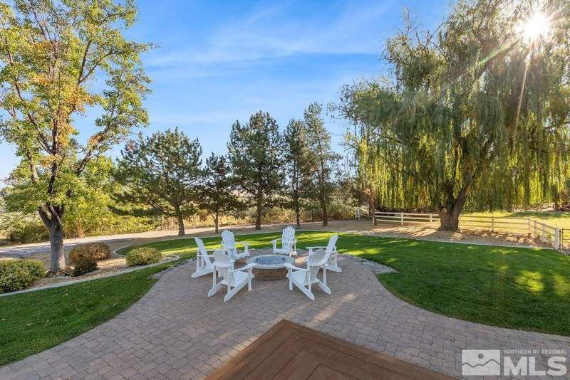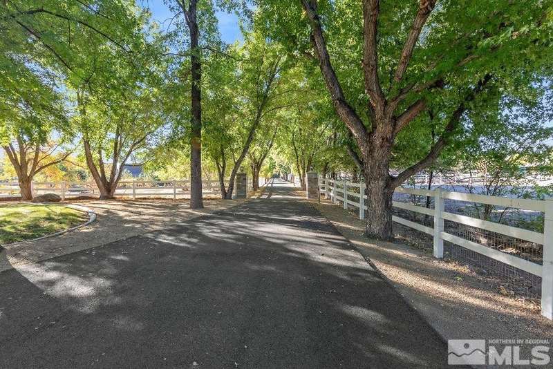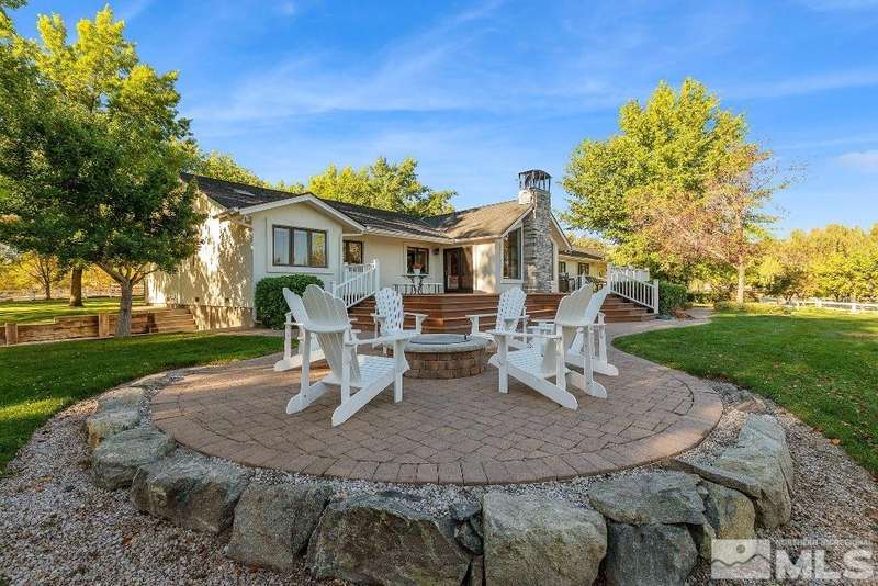 This very special Private Country Retreat is nestled on 2.5 lush Acres with scenic views at every turn. The residence is nestled at the end of a private 385+-ft tree-lined driveway! Discover this centrally located, serene & secluded 2.5-acre estate with breathtaking pastoral views. Thoughtfully remodeled in 2017, this refined residence offers "Quiet Elegance" inside and out. The spacious and well-designed kitchen features Carrera Marble countertops, a walnut-inset island, Viking, Bosch, and Thermador appliances, dual dishwashers, plus an oversized pantry. Vaulted ceilings, custom-built-ins, solid oak floors, and expansive windows fill the home with natural light. The open-concept layout includes spacious Living Room, dining areas, and a family room. A generous laundry/mudroom comes with dual washers and dryers. More than adequate storage can be found throughout the home. Step outside to enjoy awesome views from your substantial deck, plus gas fire pit! Mature orchard (apple, pear, peach, cherry, and more), a henhouse, lush pasture land, and a stunning Enormous Weeping Willow Tree! There is no HOA! Storage and parking are unmatched!! Walk-in under-home storage, it's huge, you'll love it! The quality house remodel included an astonishing 1,845 +/- Square Foot "Epoxied" Garage! you'll be amazed when you see this space with numerous windows & loads of bright lighting. Exceptional!! Recently, August 2025, the owners have repurposed the separate 583+/- garage space for their own additional personal living space, now included by Washoe County as living space), which includes a brand new "Split" unit for heating & AC. Terrific possibilities: Game room, home theater, music studio, office, art studio, another family room, or easily converted back for additional garage space. This special residence is exceptionally private, peaceful, and beautifully appointed! A unique Lifestyle is waiting for you....