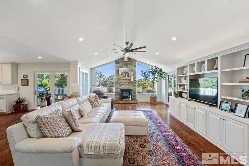 This very special Private Country Retreat, nestled on 2.5 Acres with scenic views at every turn. The residence has been placed the end of a 385+-ft tree-lined driveway! Discover this centrally located, serene & secluded 2.5-acre estate with breathtaking pastoral views. Thoughtfully remodeled in 2017, this refined residence offers "Quiet Elegance" inside and out. The spacious and well-designed kitchen features Carrera Marble countertops, a walnut-inset island, Viking, Bosch, and Thermador appliances, dual dishwashers, plus an oversized pantry. Vaulted ceilings, custom-built-ins, solid oak floors, and expansive windows fill the home with natural light. The open-concept layout includes spacious Living Room, dining areas, and a family room. A generous laundry/mudroom comes with dual washers and dryers. More than adequate storage can be found throughout the home. Step outside to enjoy awesome views from your substantial deck, plus gas fire pit! Mature orchard (apple, pear, peach, cherry, and more), a henhouse, lush pasture land, and a stunning Enormous Weeping Willow Tree! There is no HOA! Storage and parking are unmatched!! Walk-in under-home storage, it's huge, you'll love it! The quality house remodel included an astonishing 1,845 +/- Square Foot "Epoxied" Garage! you'll be amazed when you see this space with numerous windows & loads of bright lighting. Exceptional!! Recently, August 2025, the owners have repurposed the separate 583+/- garage space for their own additional personal living space, now included by Washoe County as living space), which includes a brand new "Split" unit for heating & AC. Terrific possibilities: Game room, home theater, music studio, office, art studio, another family room, or easily converted back for additional garage space. This special residence is exceptionally private, peaceful, and beautifully appointed! A unique Lifestyle is waiting for you....
