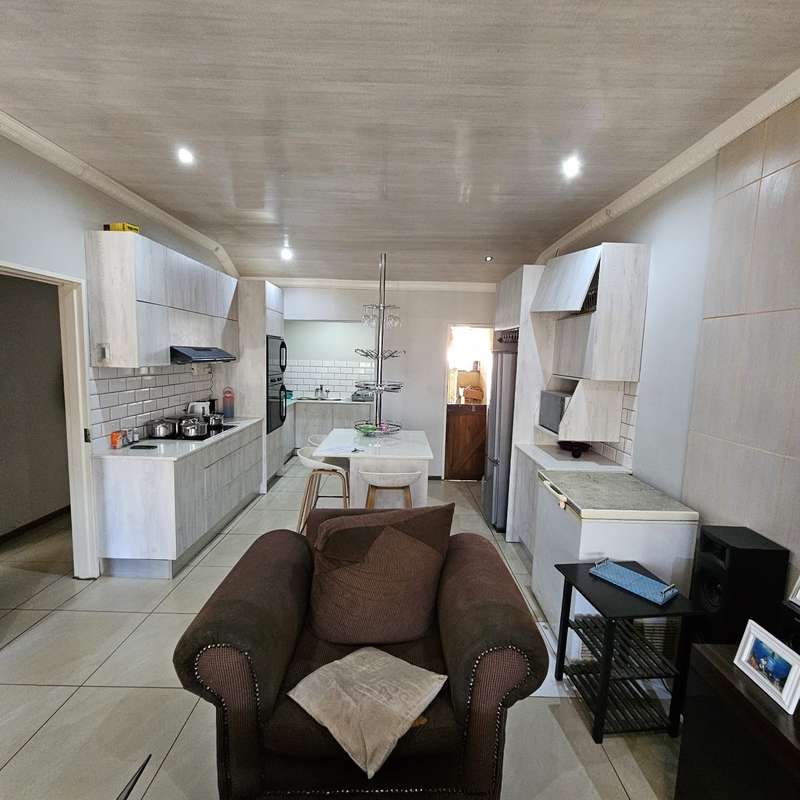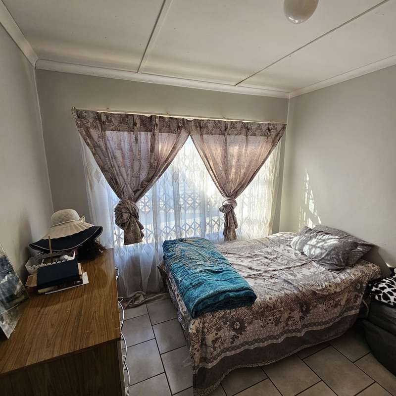 This 3 bedroom 2 bathroom starter home is ideally situated in a quiet street. The newly upgraded kitchen has lots of built-in cupboards and a separate scullery. For your convenience an induction stove top and extractor fan provides ease of cooking for the family. All three bedrooms have built-in cupboards and tiled floors. The main bedroom has an ensuite bathroom which consists of a shower, toilet and basin as well as tiled floor. The second bathroom has tiled floors as well as a bath, toilet and basin. The property is fully enclosed and has a tandem carport for safe and secure parking. At the back there is another carport as well as a separate outside toilet. Call today to make this house your home.