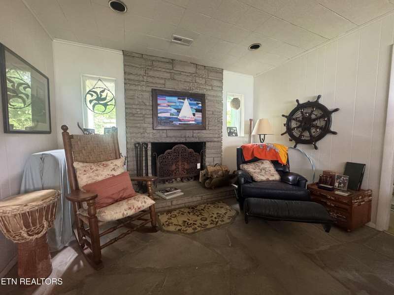 Tucked away on 2.2 level acres of pristine zoysia grass, this charming lakefront cottage offers an exceptional blend of peace, privacy, and panoramic beauty. With over 700 feet of shoreline on Watts Bar Lake, the property delivers sweeping views of both the water and surrounding mountains, creating a stunning backdrop from nearly every room in the house. Inside, the home is warm and welcoming, featuring a sunroom and a spacious screened porch that invite you to relax and take in the serene setting. The level lot makes access to the water and the private boat dock effortless, perfect for days spent boating, fishing, or simply enjoying lakeside living. Just across the lake, a full-service marina adds even more convenience. Whether you're searching for a weekend retreat, primary residence, or investment opportunity, this lakefront haven captures the essence of lake living at its finest.