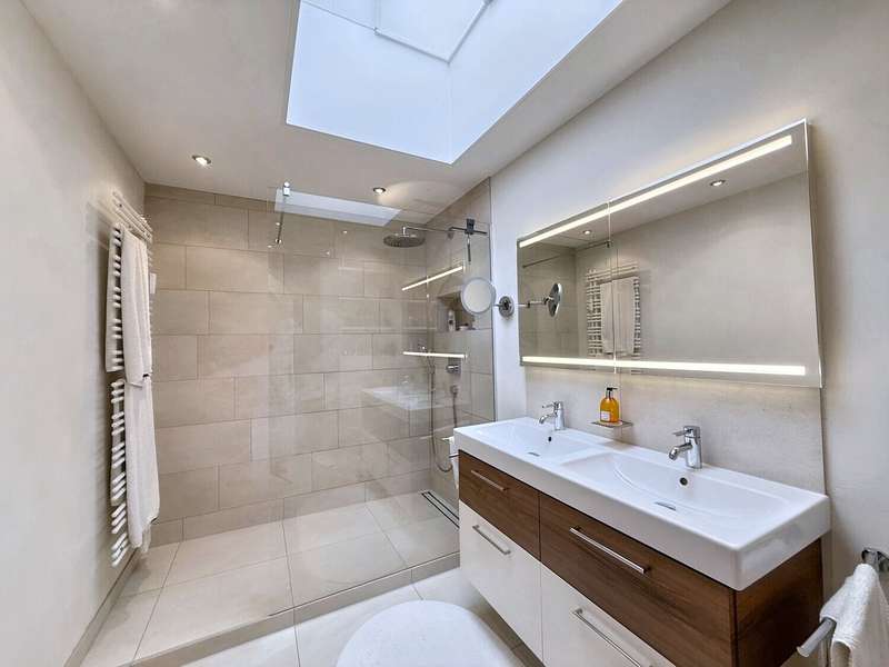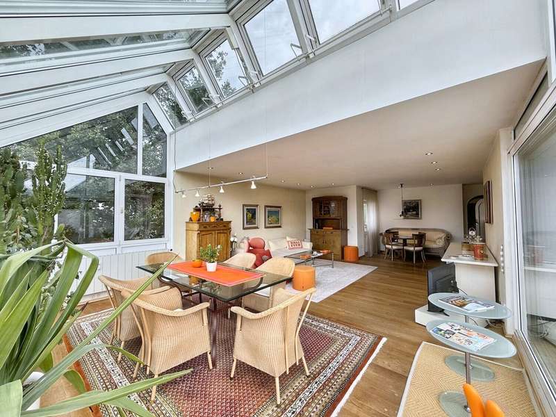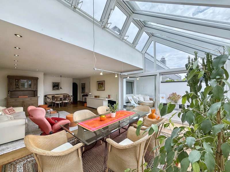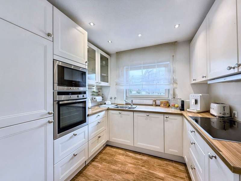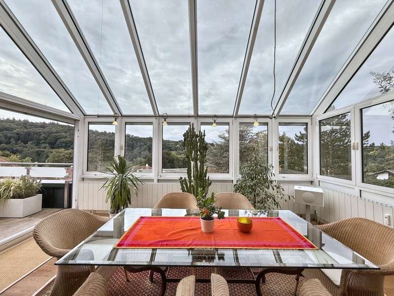 This exclusive penthouse apartment is located on the top floor of a well-kept apartment building from 1978 and impresses with its high-quality, fully renovated interior and well thought-out room layout. The living space of approx. 109.92 m² extends over 3.5 rooms and offers ideal living conditions for couples, small families or discerning individuals who value comfort and spaciousness. The open-plan living and dining area forms the heart of the apartment. Large windows provide pleasant natural light, while the timeless cherry parquet flooring in all living rooms and bedrooms creates a pleasant atmosphere. The spacious conservatory, built in 1988, extends the living space and allows a view outside even on cooler days - conveniently controlled by the electric shading system from 2020, so that the indoor climate always remains pleasant. The modern kitchen blends harmoniously into the overall picture and offers plenty of work and storage space in addition to high-quality built-in furniture. Here you can enjoy a pleasant cooking experience in a contemporary ambience. The apartment has two spacious bedrooms that offer plenty of room for individual furnishing ideas. One of them is equipped with a dressing room. The bathroom, which was extensively renovated in 2015 at a cost of 35,000 euros, offers plenty of comfort and high-quality fittings. The fully automatic shower toilet is just one of them. In terms of technology and energy, the penthouse is state-of-the-art: a central heating system provides cozy warmth. Electric shutters on all windows allow flexible light and view regulation. The building envelope has also been modernized: The façade was renewed in 2020 and the roof was extensively renovated and insulated in 2018. The offer is rounded off by a single garage, which offers secure and dry parking space for your vehicle. A large cellar room is also available. The property's location combines a mature neighborhood with good infrastructure. Shopping facilities, services, doctors and public transport can be reached in just a few minutes. The connection to the city center as well as supra-regional destinations enables a high degree of flexibility in everyday life. This penthouse presents itself in an upscale, ready-to-move-in condition. The modern fittings, wide window fronts, carefully renovated surfaces and the mature structures of the building offer you a cozy, contemporary home. Discover the many possibilities of this property and convince yourself of the advantages of this special offer during a personal viewing. Please contact us for further information or to arrange an individual viewing. According to the economic plan for 2025, the house rent is 503.56 euros (of which approx. 434 euros is apportionable) plus 116.44 euros in maintenance reserves. Inquiries can only be processed with a fully completed contact form (name, address, telephone number and e-mail). You will receive the floor plan and further pictures with the exposé.