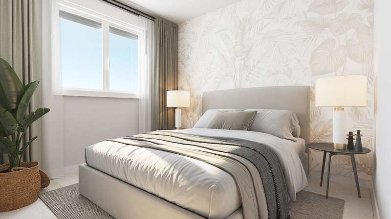 The apartments in Estepona for sale are located close to amenities, 1 km from the beach, 10 minutes from Marbella, Puerto Banus, and Estepona city center, 30 minutes from Gibraltar Airport, and 1 hour from Malaga Airport.