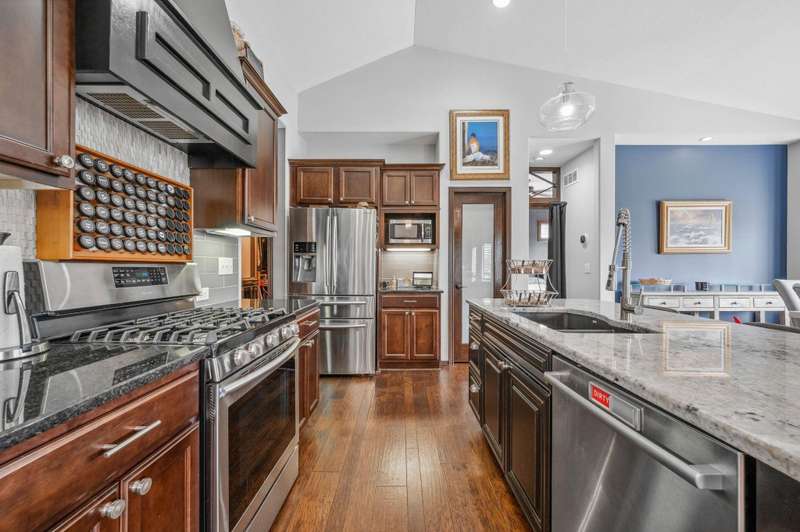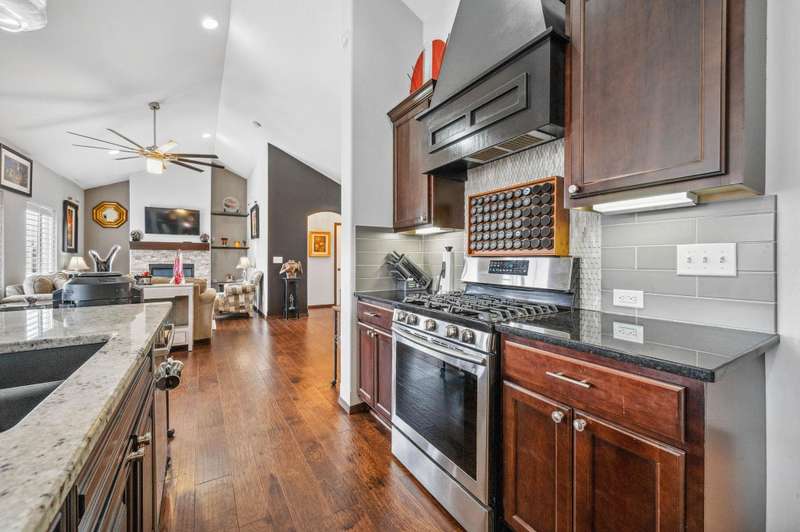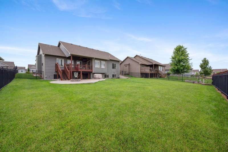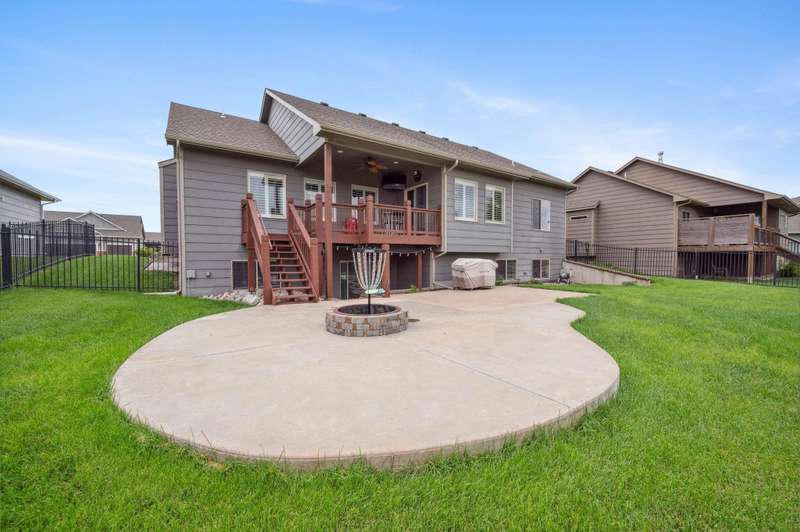 Welcome Home to 12446 E. 27th Ct. N. in the beautiful area of Firethorne! This rare gem stands out with stunning curb appeal, meticulous maintenance, and timeless stylemaking it truly better than new! From the inviting entryway to the thoughtfully designed living spaces, every detail has been carefully crafted for comfort and luxury. Inside, youll find a spacious open floor plan featuring a chefs kitchen with a center island, walk-in pantry, and expansive dining area that flows effortlessly into the cozy family roomcomplete with a fireplace flanked by custom built-ins. The primary suite is a private retreat with a spa-inspired ensuite, oversized shower, and exceptional storage. Downstairs, the entertainers dream continues! The open-concept layout showcases a fabulous bar area and a separate glass-enclosed wine bar featuring a historic 1800s dooran eye-catching detail sure to impress. Polished concrete floors, view-out windows, and a walk-out/walk-up basement offer endless possibilities for hosting. Outside, enjoy an east-facing, fully fenced backyard with lush landscaping, a covered deck ideal for summer movie nights, and a patio perfect for gatherings. The neighborhood pool is just over a block away, adding another layer of fun to this vibrant community. Located in the desirable Circle school district and minutes from Wichitas top private and parochial schools, this home also offers convenient access to K-96, shopping, dining, and entertainment. Dont miss this incredible opportunity to own one of Firethornes finest!