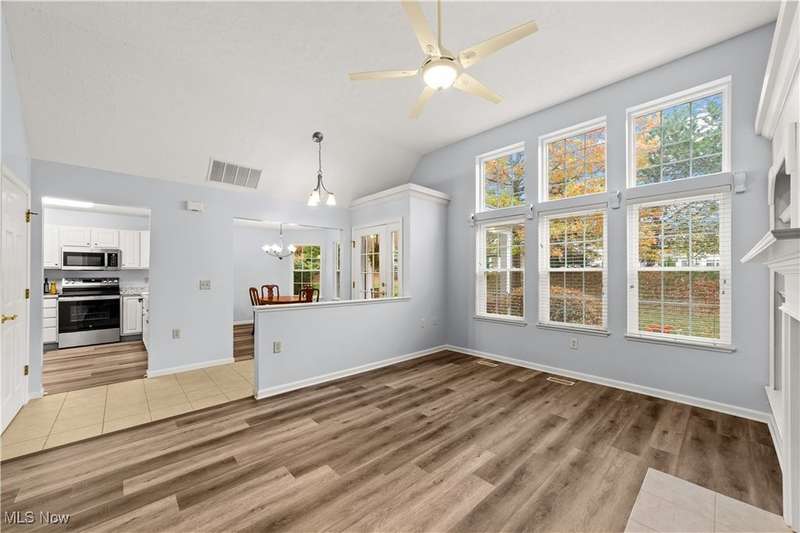 Come fall in love with this low-maintenance 2-bed, 2-bath end-unit ranch condo, perfectly tucked at the end of a cul-de-sac in the desirable Towne Center Community Campus, a vibrant 55 plus community! Enjoy rare privacy with scenic green space and two charming patios?an ideal extension of your living space. Step inside to a welcoming foyer that opens to a bright, open-concept layout with fresh neutral paint and new LVP flooring throughout the main living areas. To the left, the spacious living room features a cozy gas fireplace and a wall of windows that fill the space with natural light. To the right, the dining area flows seamlessly into the well-appointed kitchen, offering abundant white cabinetry, pantry storage, and brand-new appliances paired with a new countertop. Down the hall, the serene primary suite includes two closets?one walk-in?and a generous bath complete with a walk-in shower and separate tub. A comfortable second bedroom and full guest bath provide excellent flexibility for guests or a home office. The laundry room is conveniently located off the attached 2-car garage, which provides great storage. Outdoors, enjoy morning coffee or an evening beverage in your private patio oasis. Additional peace of mind comes with a brand-new A/C unit. Towne Center offers an exceptional community experience with social activities and a community center featuring an indoor heated pool/spa, fitness room & classes, library, and a monthly activity calendar. Say goodbye to lawn care and snow removal?just move right in and enjoy! Schedule your private showing today!