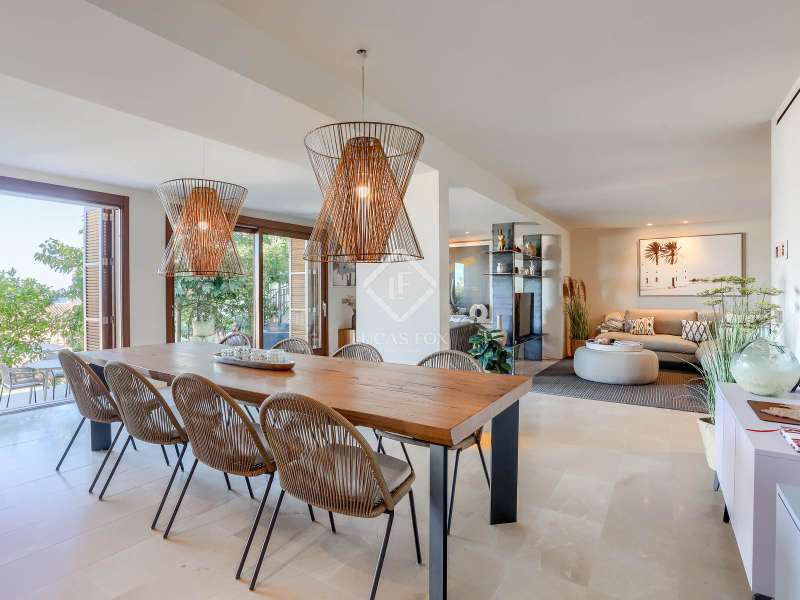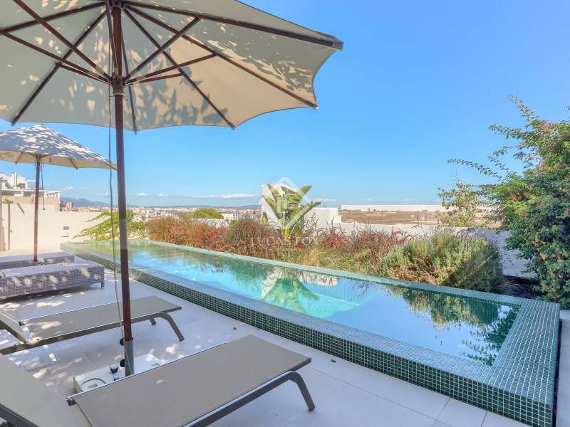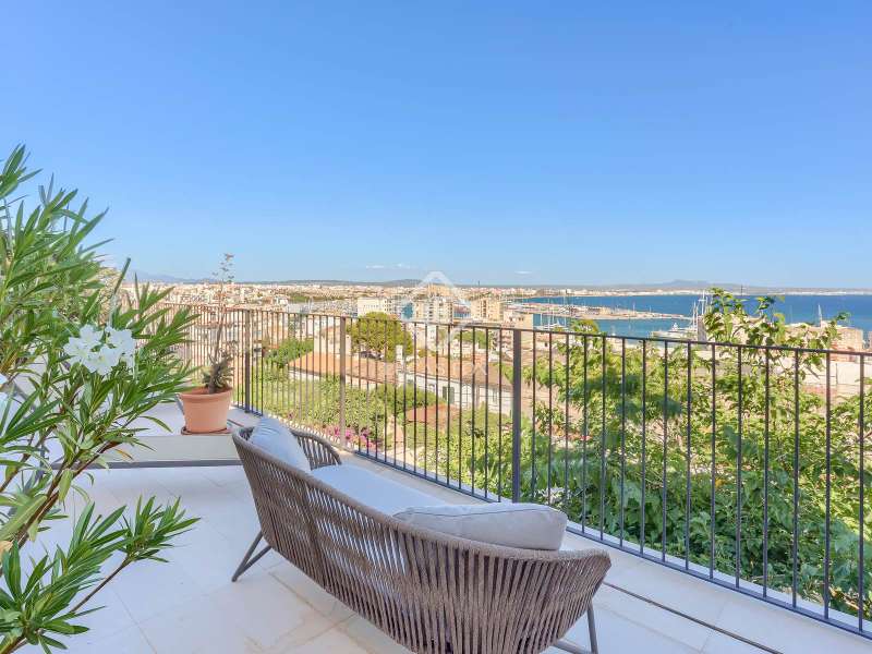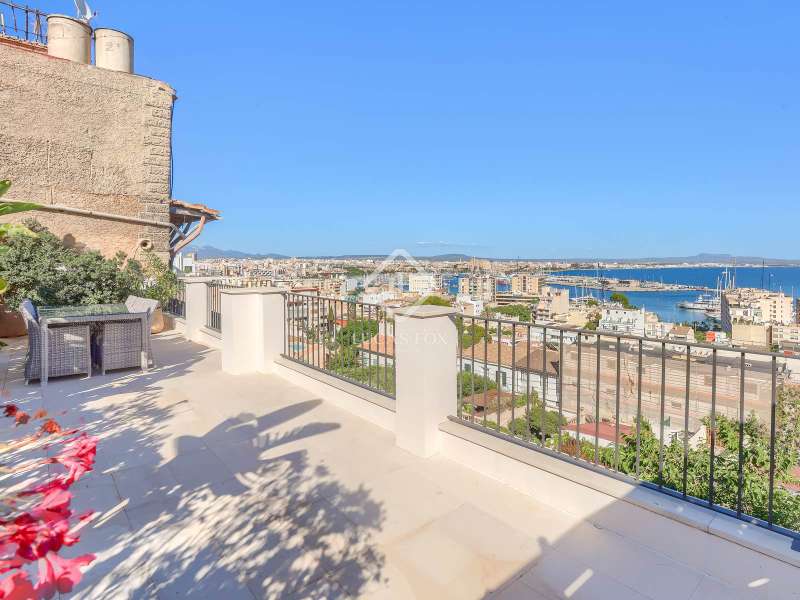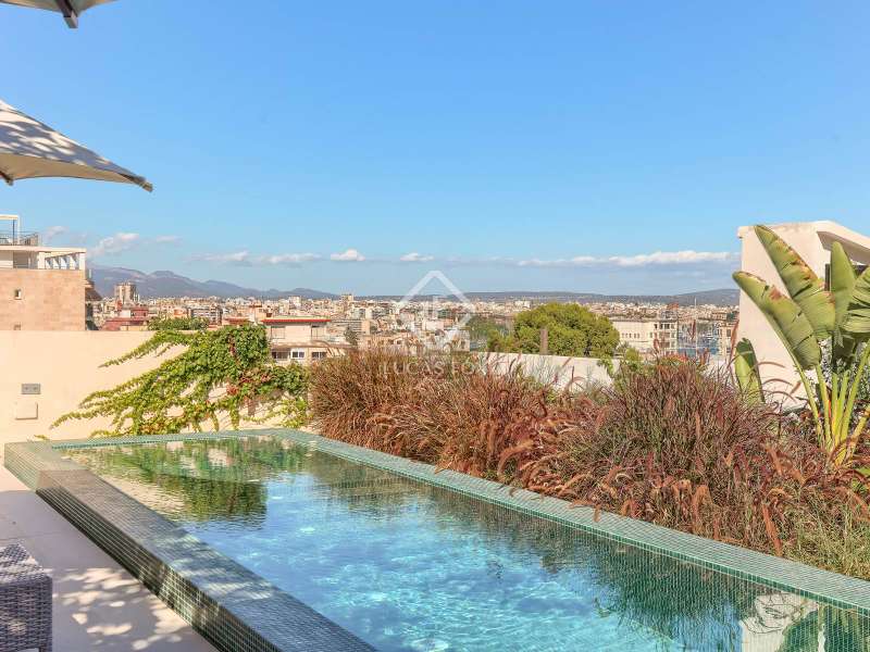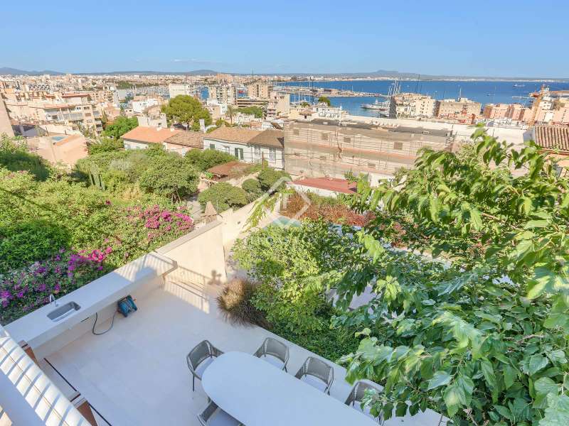Lucas Fox Mallorca presents this exclusive villa with panoramic views in El Terreno, Palma Nestled in the hills of El Terreno, one of Palma de Mallorca's most bohemian and sought-after neighborhoods, this exceptional villa combines Mediterranean elegance, high-end amenities, and spectacular views. Spread over three levels, the property captivates with its abundant natural light, commanding position, and large bay windows that reveal a unique panorama of the city, the cathedral, and the port of Palma. The atmosphere is both peaceful and connected to the city's bustling atmosphere. The house has a tourist license, a rare asset that allows for legal rental, ideal for combining personal pleasure and profitability. On the ground floor, the entrance leads to a spacious, bright living room and a fully equipped, contemporary kitchen, opening onto a welcoming terrace. The carefully landscaped outdoor area invites you to relax around the swimming pool with its integrated jacuzzi. Upstairs, three elegant bedrooms, each with its own private bathroom, dressing room and access to an individual terrace, offer optimal comfort and unforgettable sunrises. The top floor features a spectacular 55 m² terrace, perfect for enjoying the sun in complete privacy with breathtaking views of the Bay of Palma. A private garage, close proximity to beaches, marinas, international schools, prestigious golf courses and the historic centre of Palma - within walking distance - complete this rare and sought-after property, located just 15 minutes from the airport. A refined refuge away from the summer hustle and bustle, in a neighborhood undergoing a renaissance, to experience Mallorca in all its splendor.