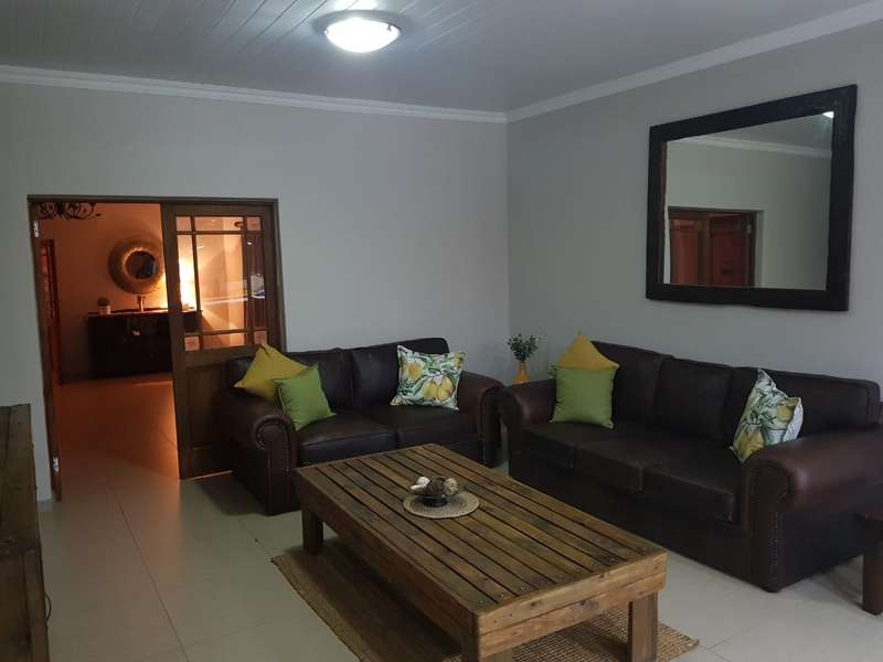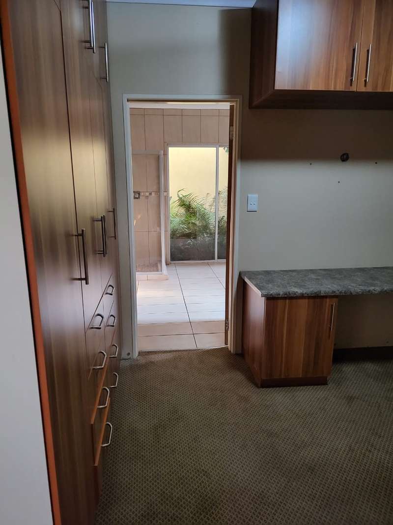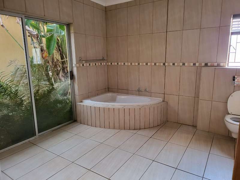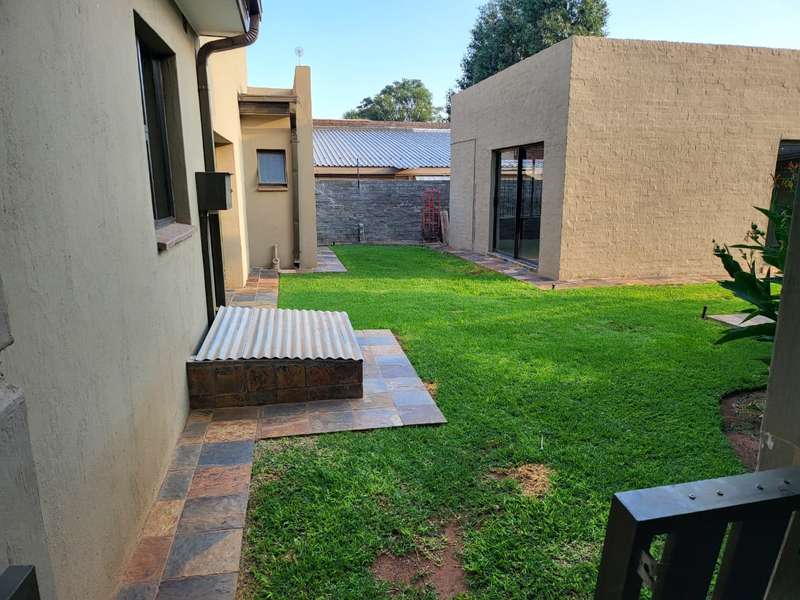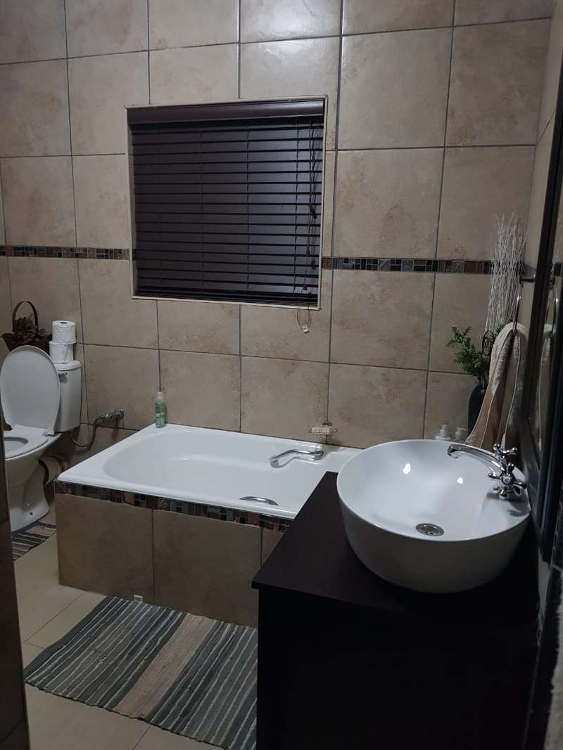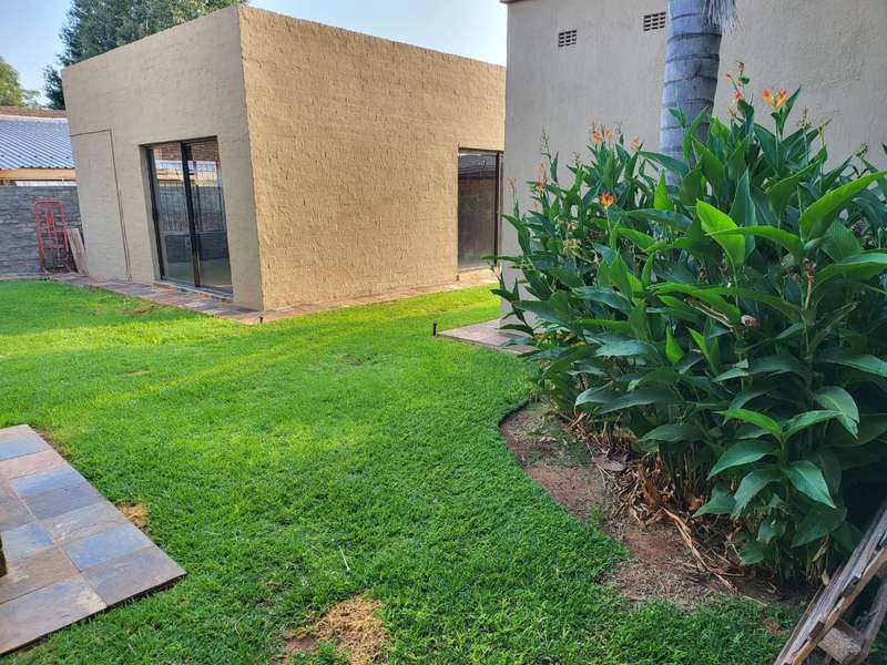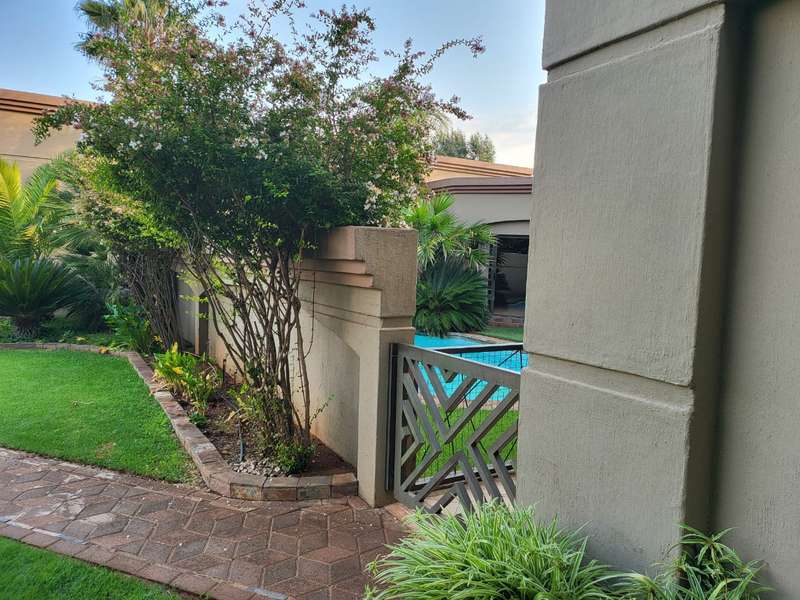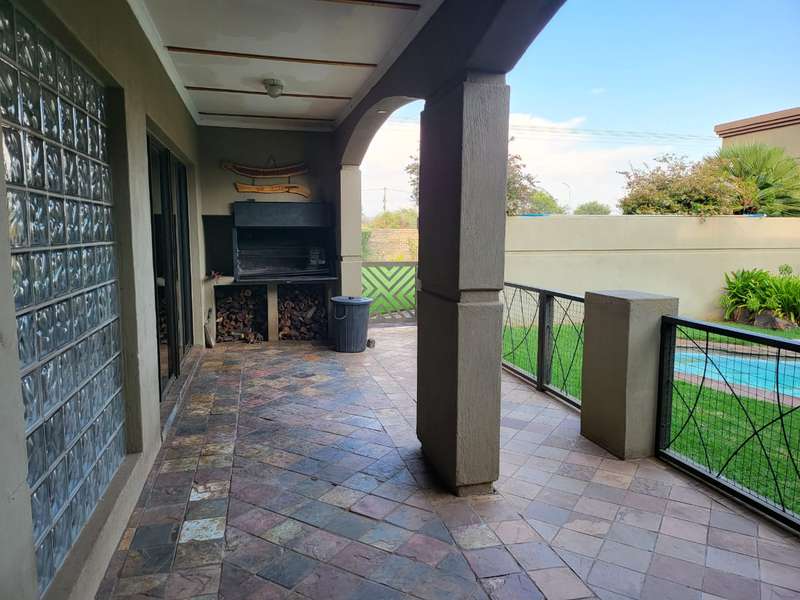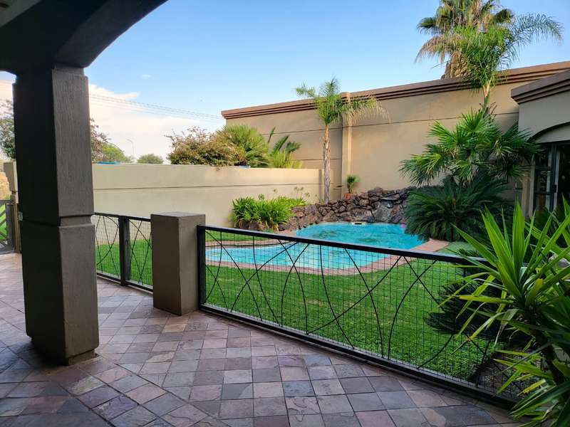 This modern sensation offers you every and anything you need! This house offers you 6 bedrooms of which 5 have aircons , 4 bathroom 2 of which are on-suite 1 is a separate bathroom and one a separate toilet. There is a coffee/study room with cabinets, a larger than life open plan kitchen and living room fitted with air conditioners. A dining room with a big bar area and to top it a cinema fitted with air-conditioning for our hot summers. In addition to this magical house it also has a sky blue swimming pool with a pool house and outside bathroom facilities. For the garden there are timed watering systems for the lawn, 5000L water tank with pressure pump. For security there electric fencing surrounding the site. A double garage and single garage with aircons that can be used as office space should you need it. The apartment at the back of the house have an open plan dining and living room, a kitchen, bathroom and a large bedroom with a study room and air-conditioning