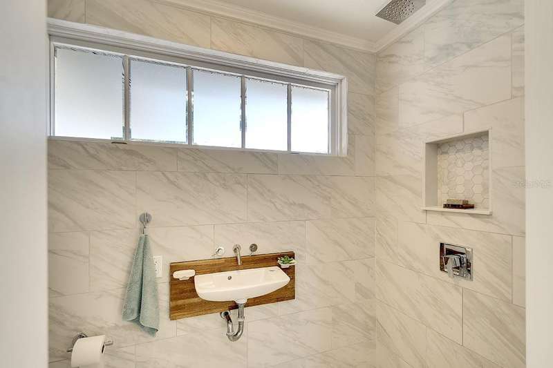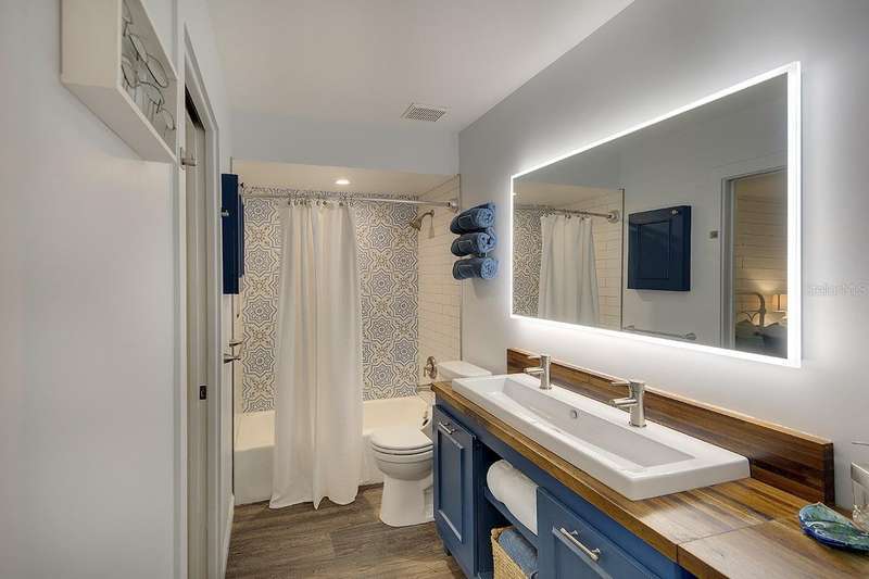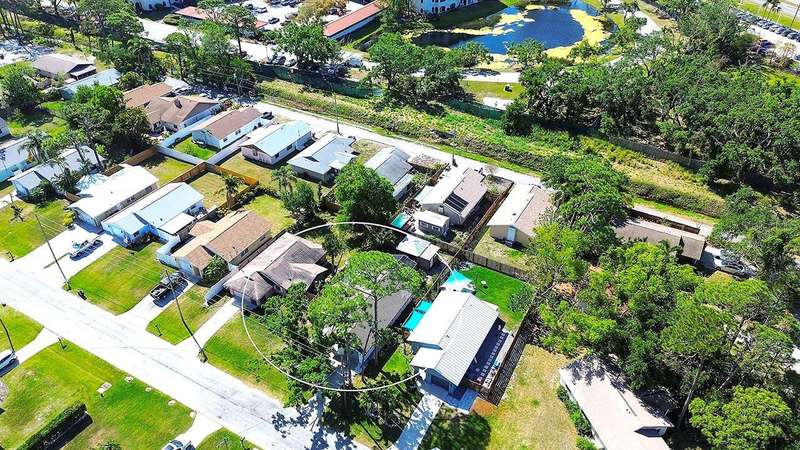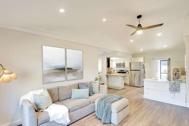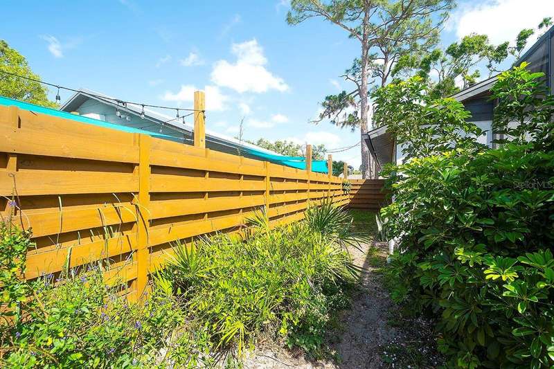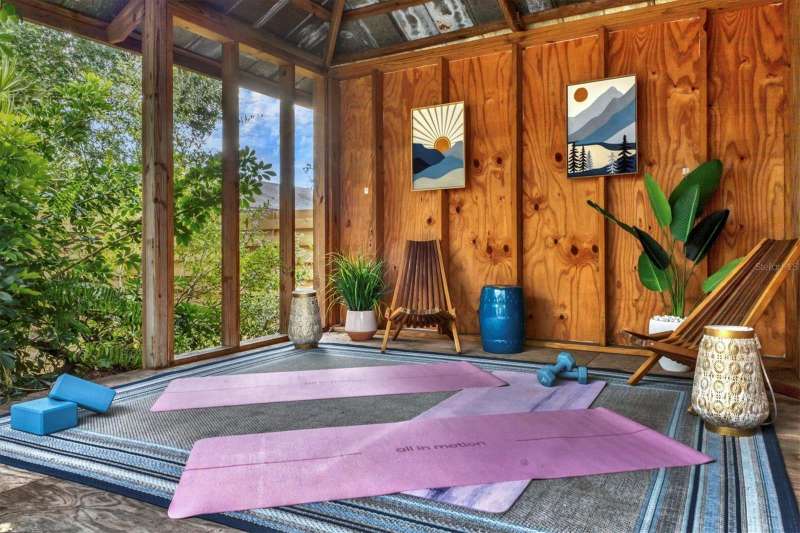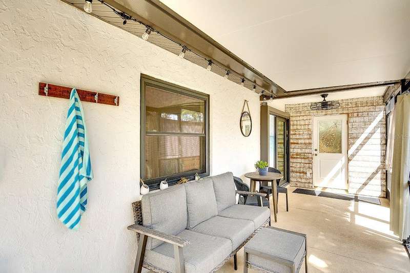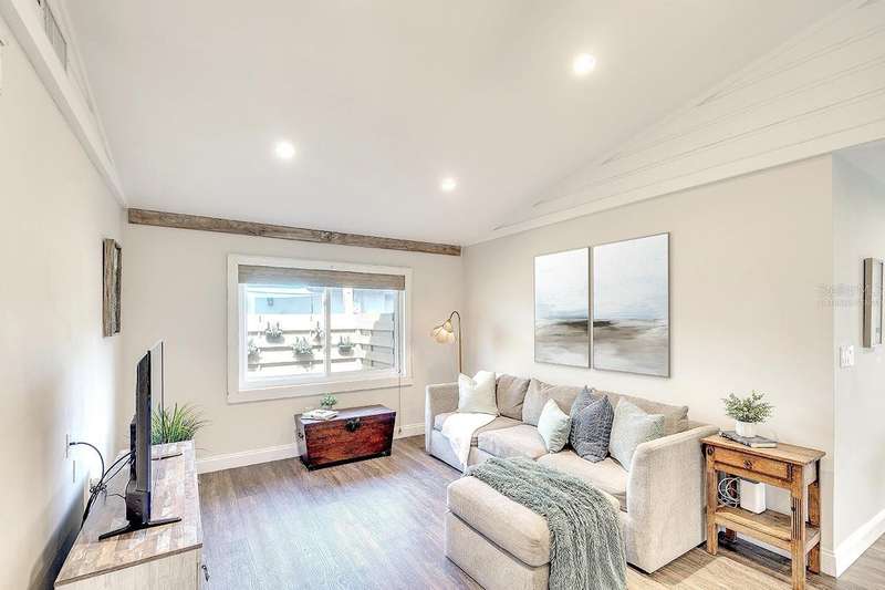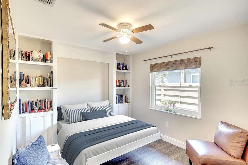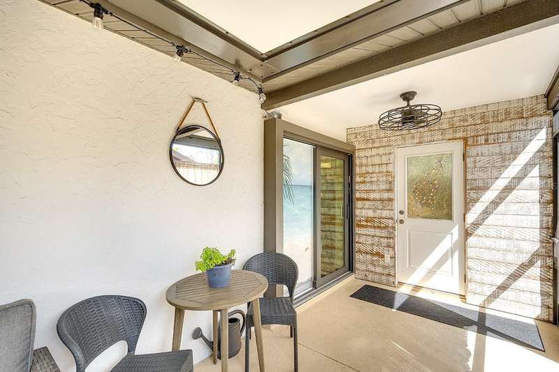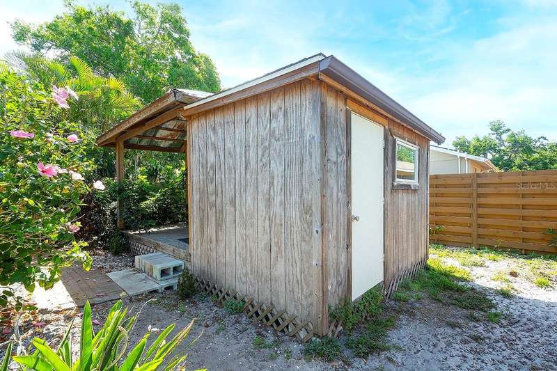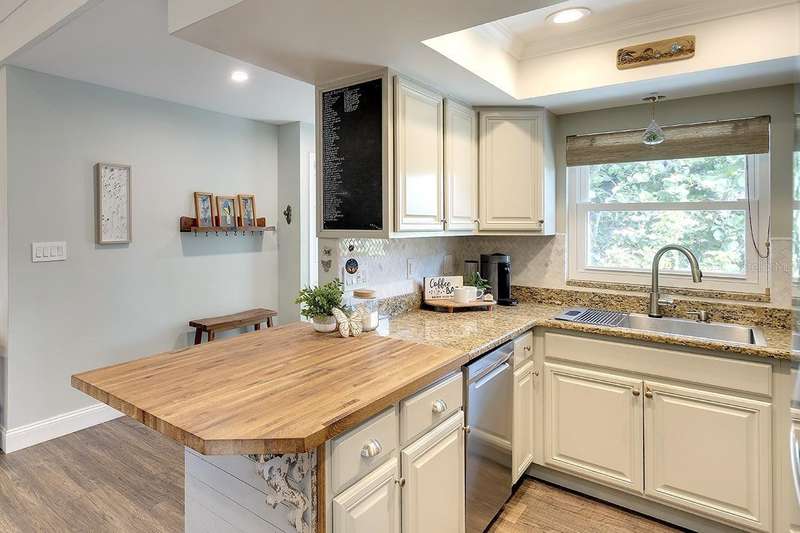 Back on The Market! With New & Upgraded Septic System (Installed Sept 2025) This Nature Lovers Retreat AS SEEN ON THE RECENT HGTV EPISODE OF MY LOTTERY DREAM HOME, Season 18 Episode 5, this beautifully updated craftsman-style home offers 1,048 sq. ft. of living space and a modern, open floor plan with vaulted ceilings creating a bright and spacious feel. Updates include seamless Luxury Vinyl Flooring throughout and Custom room-darkening shades. Entertaining or just making a stay at home dinner is a delight in the gourmet kitchen with granite countertops, herringbone backsplash, large single-basin sink, stainless steel appliances (including double oven) and butcher-block breakfast bar with foot rail, with an added bonus, the hanging spice garden that conveys makes fresh and tasty meals a daily delight. The charming built-in corner dining bench (conveys), Remodeled bathrooms (previous owner), Primary bedroom with vaulted ceiling, Guest bedroom includes custom Murphy bed with built-in desk and shelving—perfect for a home office, Newer A/C (2021) with UV light for improved air quality, High-end hybrid water heater and LED lighting throughout. Private PebbleTec heated saltwater pool (2019), Expansive covered lanai with multiple seating areas, Fenced yard (2024) with attractive woven wood fence and hanging spice garden, Treated wood walkway newly added (2025) leads to private backyard. Stay in shape or enjoy some Zen from your own elevated and covered yoga/meditation platform with attached storage shed, Mature trees maintained by a licensed botanist—home to many bird species, HURRICANE IMPACT WINDOWS & DOORS, Flood Zone X – No Flood Insurance Required, One-car air-conditioned garage (formerly 3rd bedroom – easy to convert back), Newer garage door (2021), Newer washer & dryer (2021), PIPES COMPLETELY LINED WITH PVC (2024), Grading & gutter system (2024) for proper drainage, Roof (2011) with wind mitigation (2022), Public water + brand-new septic system (2025). Conveniently located near shopping, dining, Siesta Key Beach, Oscar Scherer State Park, and The Legacy Trail. This move-in-ready home offers modern comfort, quality updates, and the best of Florida living—all in one exceptional property!