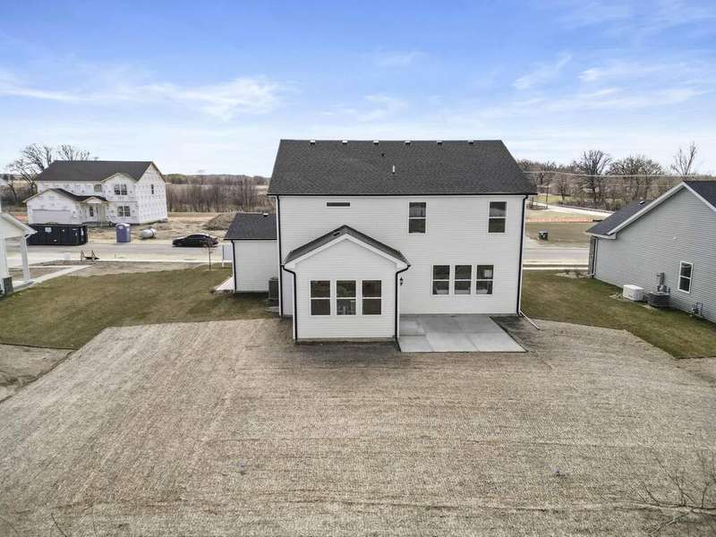 Under construction, The Onyx 2-Story at Stone Mill - Lowell, Indiana's Newest Community. This inviting home offers 3 spacious bedrooms, 2.5 bathrooms, a loft, standard basement with crawl space, and a 2-car garage. The main level features 9-foot ceilings and a modern open-concept design that seamlessly connects the Great Room, Kitchen, and Cafe. The kitchen is a standout with a 7-foot island with 10-inch overhang, ample cabinets, and plenty of prep space. A versatile Den and convenient Powder Room add to the main floor's functionality. Upstairs, the primary suite includes an ensuite bathroom and a generously sized walk-in closet. Two additional bedrooms, each with abundant closet space, a full bathroom, a finished laundry room, and a spacious loft complete the upper level. Pricing includes professional landscaping, enhancing the home's curb appeal. Located in the charming town of Lowell, this home offers small-town living with modern conveniences. Just minutes from downtown, schools, shopping, and dining, residents also enjoy community events, local parks, and recreational opportunities. Lowell provides easy access to Illinois for commuters. Photos are representative of a model home with the same floor plan; finishes and features may vary based on selections and availability.