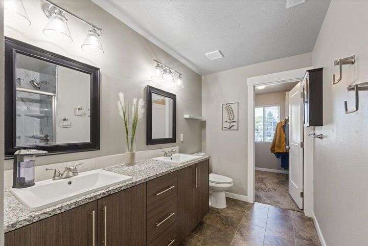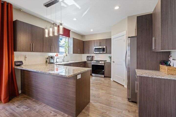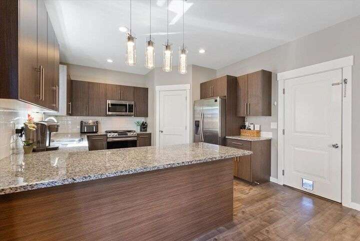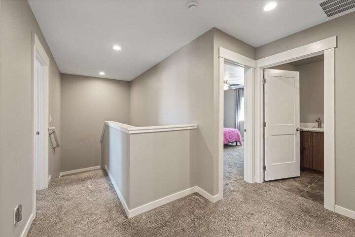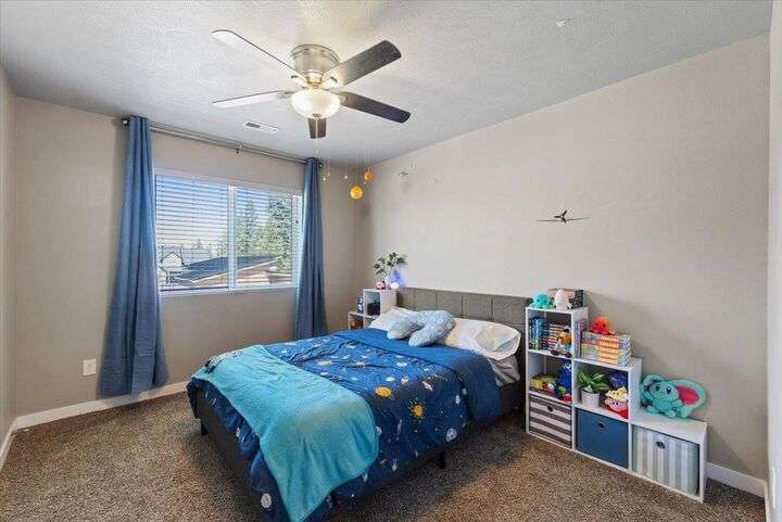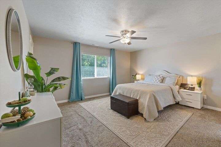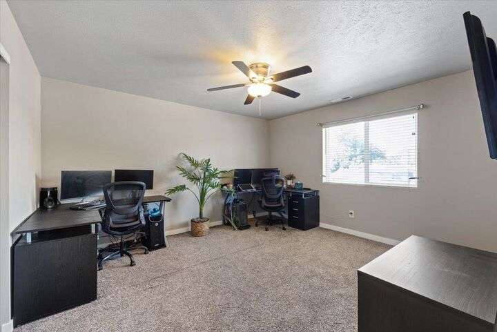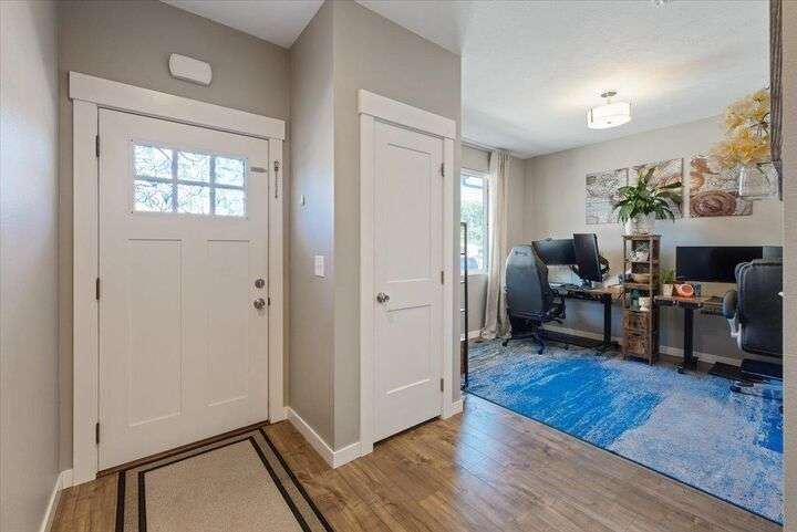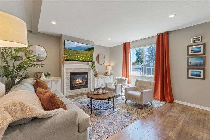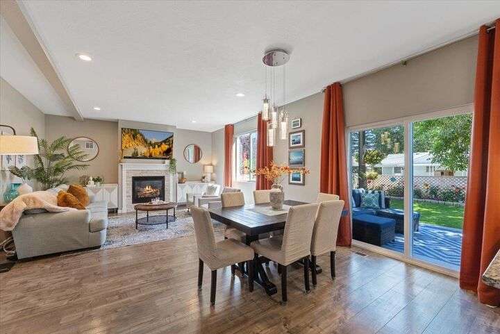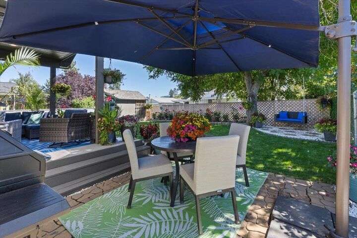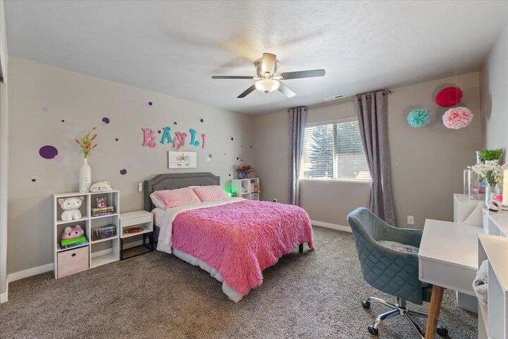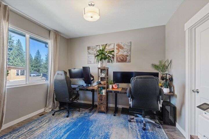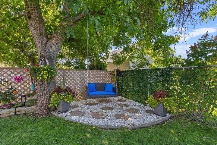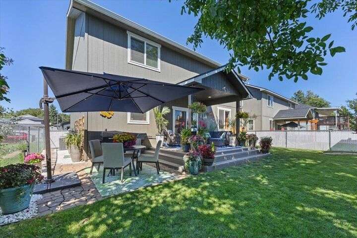 Spacious and inviting, this 4 bed/3 bath home with additional office space offers thoughtful design and comfort throughout. All four bedrooms, plus the laundry room, are conveniently located on one floor, creating ease and flow for daily living. The open kitchen boasts a generous walk-in pantry and connects seamlessly to the main living area, highlighted by lofty ceilings and a cozy gas fireplace. The primary suite is a true retreat with two walk-in closets and a private bath. Step outside to your backyard oasis, where a generous deck with a relaxing swing overlooks lush, thoughtfully designed plantings. A charming patio provides the perfect outdoor dining area, creating an ideal space for both quiet mornings and lively gatherings.