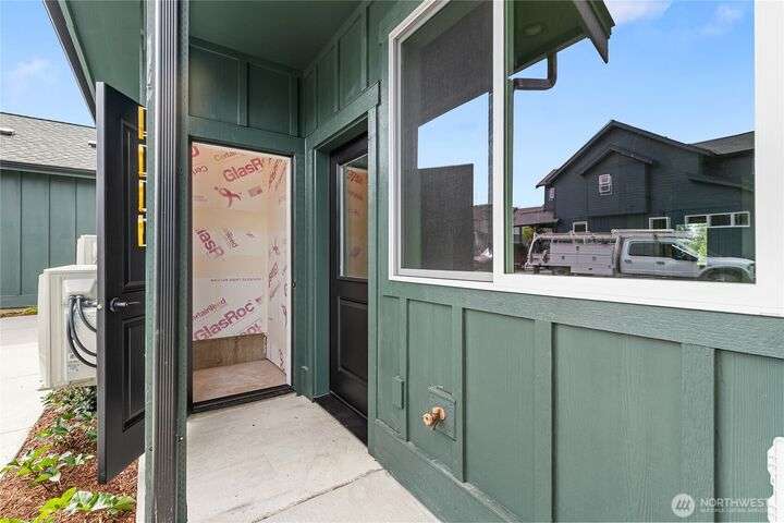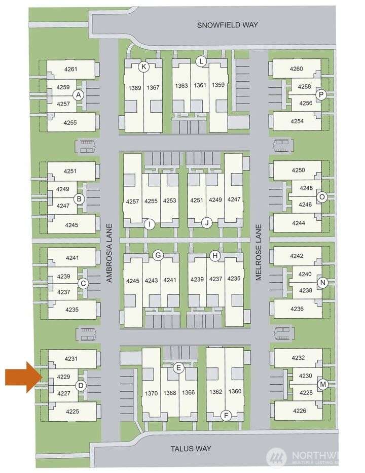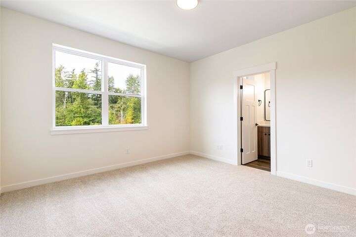 Welcome to this beautiful townhome in Trailside, offering fantastic views and privacy along the pond and greenery! The 2-bedroom plan includes a 2-car driveway, high-end & warm finishes throughout, fenced front yard, and serene pondside setting. The main floor offers a spacious open floorplan with light-filled great room, half bath, and kitchen with quartz counters, wood cabinetry, and stainless appliances. Upstairs, enjoy two large primary suites with en-suite baths and walk-in closets, plus laundry. With ductless heat/AC, 9-ft ceilings, premium flooring, outdoor storage, and more. This home is move-in ready and waiting for you. 5.5% permanent rate buy-down available & no HOA dues until 2027!