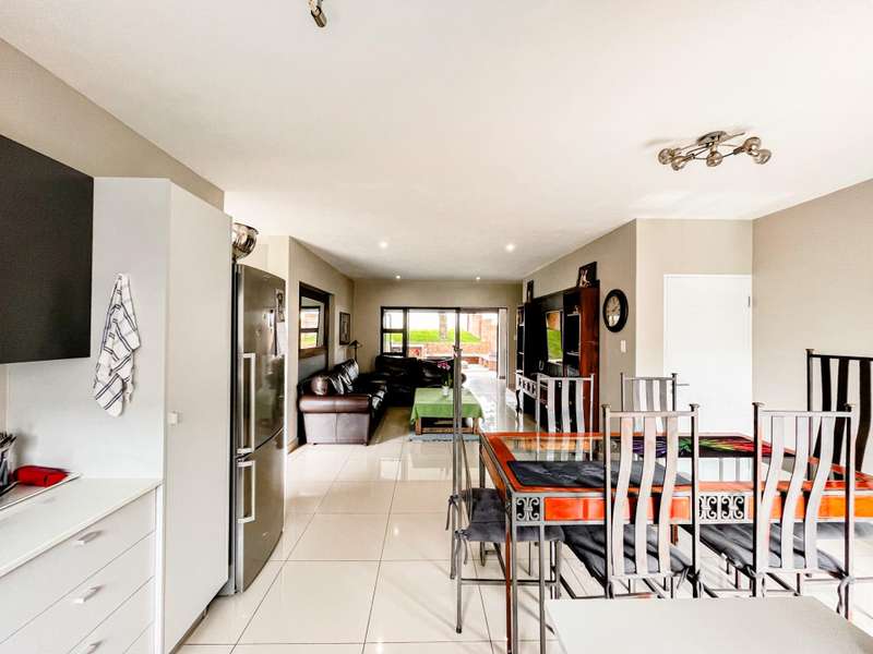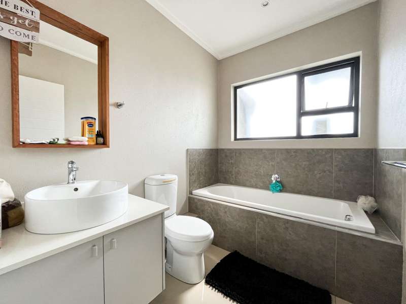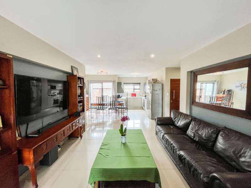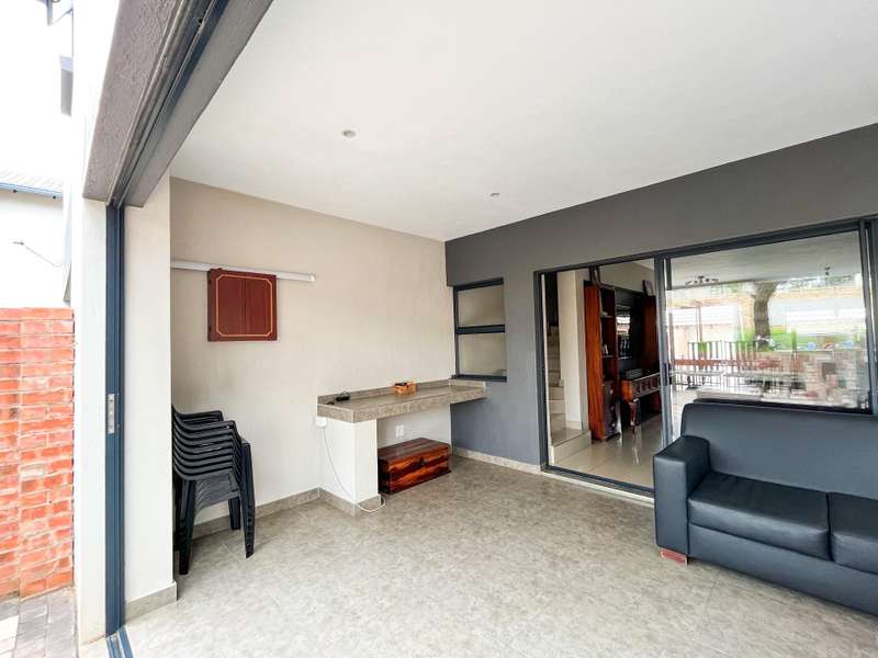 This modern home offers stylish living with high-quality finishes. The spacious design features an open-plan kitchen, dining, and living area, creating a seamless flow for everyday living. A convenient guest toilet is included on the ground floor. The lounge extends onto a patio, providing an inviting space for relaxation. Upstairs, you'll find three well-sized bedrooms and two bathrooms, including a main en-suite for added comfort and privacy. For outdoor entertainment, the property includes a boma with a built-in braai, perfect for hosting gatherings and enjoying cozy evenings. This complex offers secure living and includes a clubhouse with a swimming pool and braai area. Phone today for a viewing.