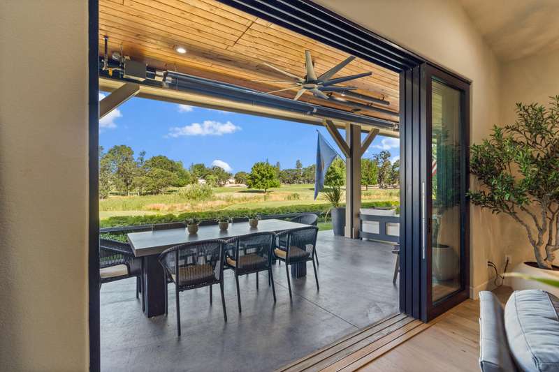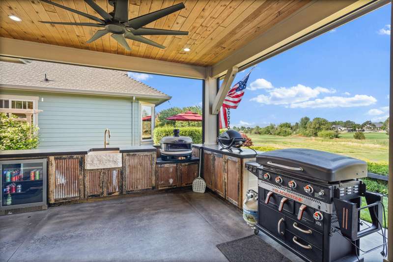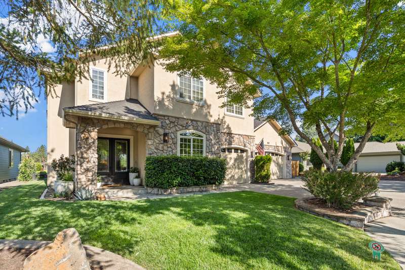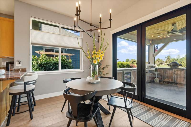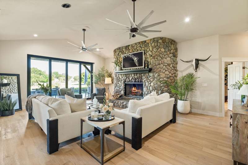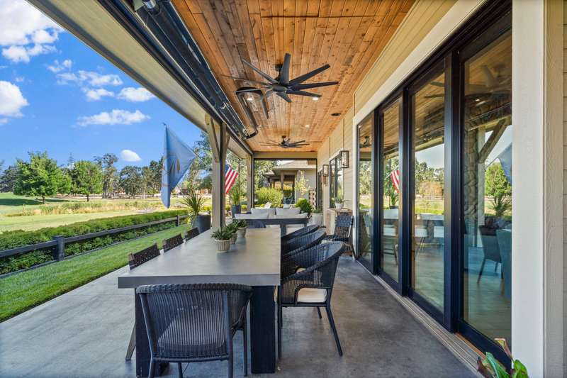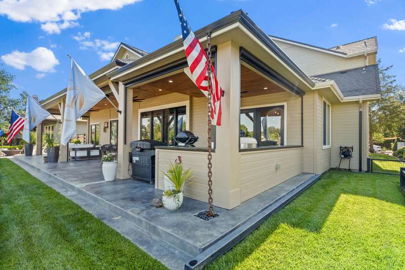 Prime location situated on the 17th & 18th Fairway of the Eagle Point Golf Course. Beautifully crafted open-concept home, offering a main-level office w/elegant French doors, formal & informal dining areas, & a true gourmet kitchen equipped w/6-burner cooktop, griddle + dble ovens. The living room is anchored by a stunning floor-to-ceiling river rock fireplace & expansive Nano doors that open seamlessly to a newly covered back patio designed for entertaining, w/outdoor counter space, a mini fridge, sink, ample seating, heaters & cozy fire pit. The luxurious primary suite features a soaking tub, walk-in shower, dual vanity, spacious walk-in closet, cozy fireplace, & private access to the tranquil covered back patio. Upstairs are 3 spacious bdrms, including a secondary master + 2 bedrooms w/convenient adjoining full bath. All outdoor areas offer beautiful views of the golf course. Additional highlights include extra off street parking, perfect for a boat plus a spacious 3-car garage.