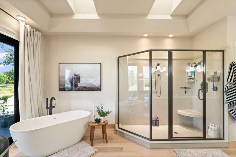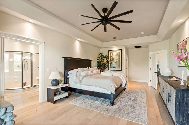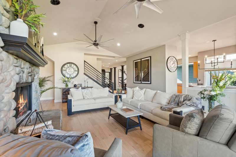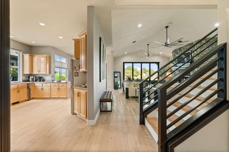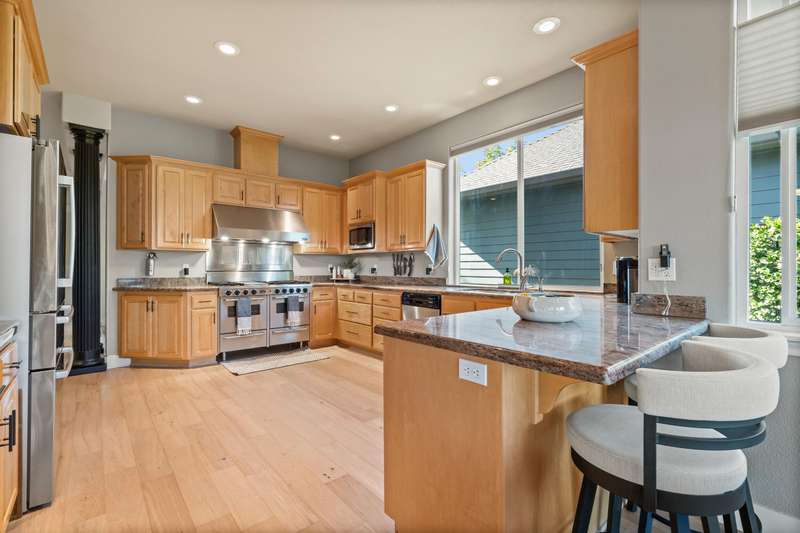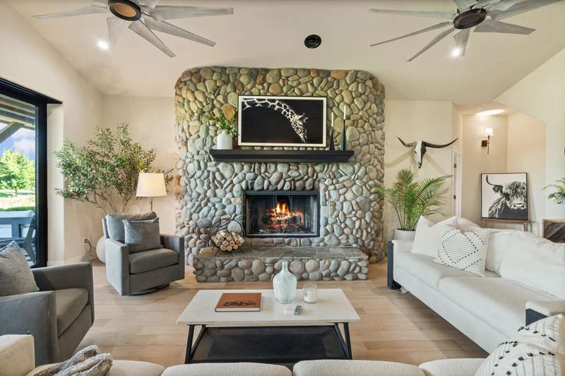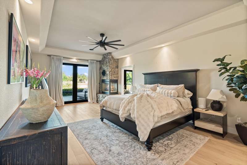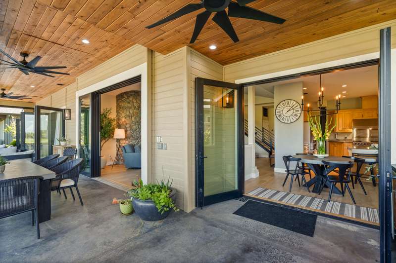 Prime location situated on the 17th & 18th Fairway of the Eagle Point Golf Course. Beautifully crafted open-concept home, offering a main-level office w/elegant French doors, formal & informal dining areas, & a true gourmet kitchen equipped w/6-burner cooktop, griddle + dble ovens. The living room is anchored by a stunning floor-to-ceiling river rock fireplace & expansive Nano doors that open seamlessly to a newly covered back patio designed for entertaining, w/outdoor counter space, a mini fridge, sink, ample seating, heaters & cozy fire pit. The luxurious primary suite features a soaking tub, walk-in shower, dual vanity, spacious walk-in closet, cozy fireplace, & private access to the tranquil covered back patio. Upstairs are 3 spacious bdrms, including a secondary master + 2 bedrooms w/convenient adjoining full bath. All outdoor areas offer beautiful views of the golf course. Additional highlights include extra off street parking, perfect for a boat plus a spacious 3-car garage.