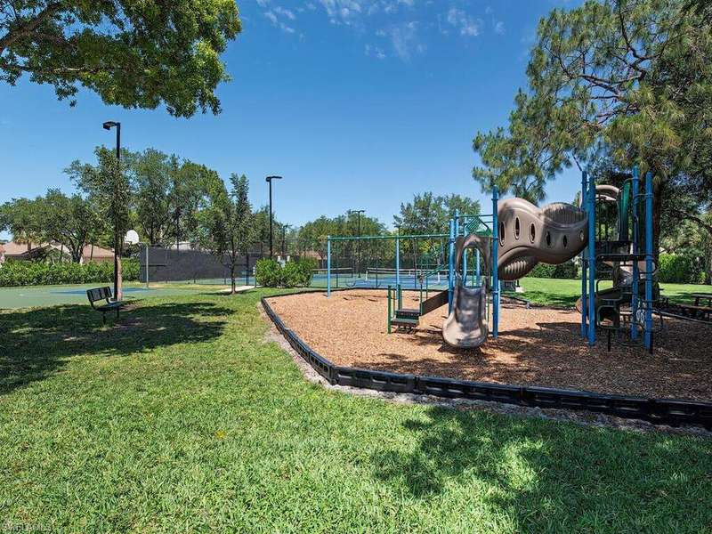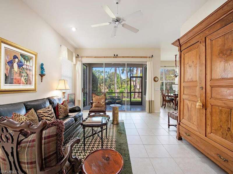 Lakefront serenity meets modern comfort in this beautifully updated 2 bedroom + den home in Autumn Woods, one of North Naples most sought-after gated communities. This Maple Brooke villa lives like a single-family home with its open concept and split bedroom floor plan. The meticulously maintained villa home boasts a wealth of tasteful UPDATES including NEWER roof, updated bathrooms, brick paved driveway, wood floors, newer A/C and water heater, and an updated kitchen hosting stainless steel appliances, backsplash, and countertops. Garage door has been updated to hurricane rated and Tesla hi-speed charger added in garage. Almost 1,600 sq. ft. of living space offers residents two spacious bedrooms plus study, two chicly updated bathroom and volume ceilings all the while set in a location that offers tranquil lake views morning to night. Highly sought after for its family friendly atmosphere, living in Autumn Woods provides a myriad of amenities, including pickleball, tennis, and basketball courts, as well as two swimming pools, fitness center, clubhouse, playground, 24-hour security, and walking paths through the community's 26.5 acres of natural preserves. Notwithstanding the aforementioned amenities behind Autumn Woods' gates, this residence is also in a prime location, just minutes to the exquisite shopping and dining found at both Mercato and Waterside Shoppes, as well as only ten minutes to the beach.