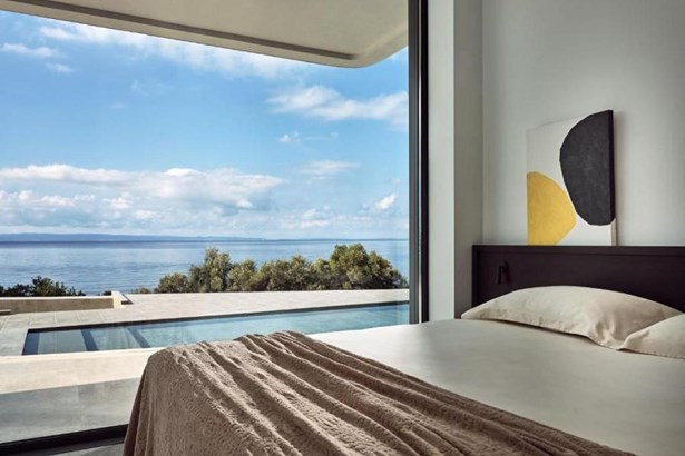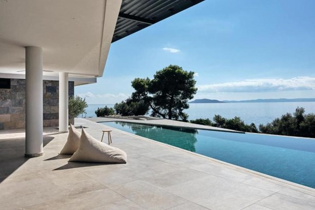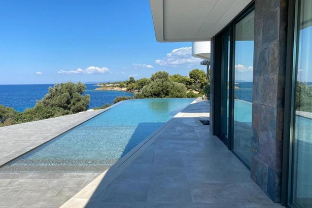 This seaside villa in Halkidiki's Lagomandra offers an exquisite escape with a rich array of amenities. It's a luxurious and spacious property that comprises five bedrooms and five bathrooms, ensuring ample accommodation for residents and guests alike.