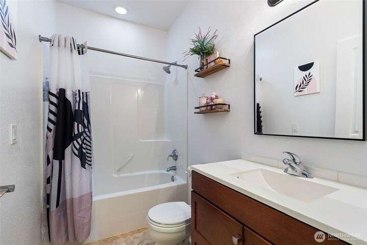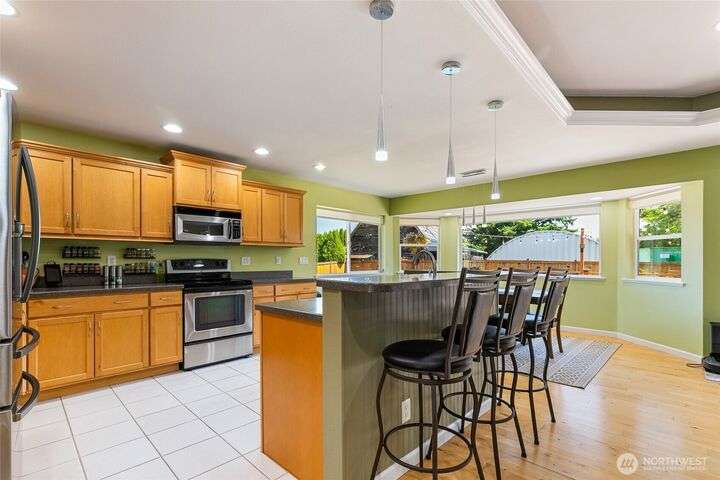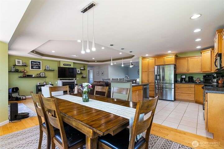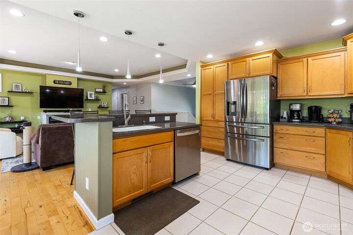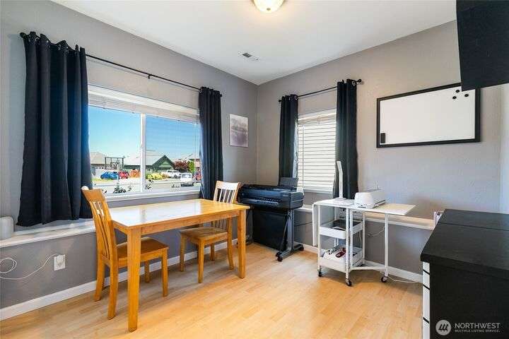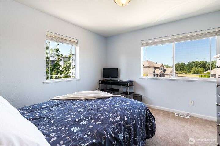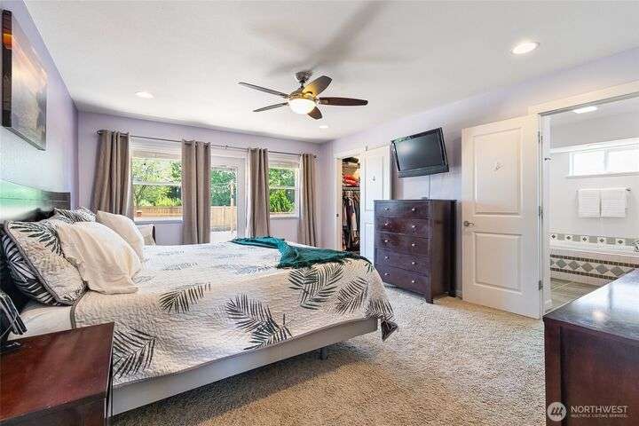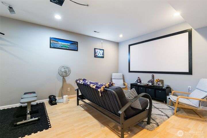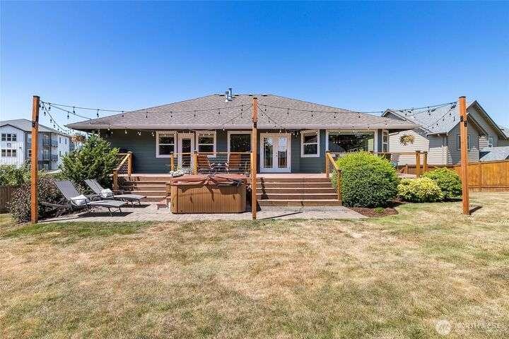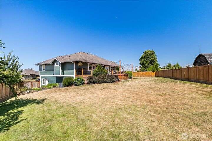 Must-see custom-built home on an oversized lot with a fully fenced backyard—perfect for play, pets, or gardening. The spacious deck is designed for gatherings with friends or quiet evenings outdoors. Inside, the bright open-concept great room brings everyone together, while the cozy downstairs family room with projector and 8’ screen sets the stage for movie nights or game days. Efficient year-round comfort comes from the heat pump. With four bedrooms featuring walk-in closets, a generous primary suite, bonus parking, and a quiet low-traffic location, you’ll find both space and convenience just minutes from Bellingham and Ferndale.