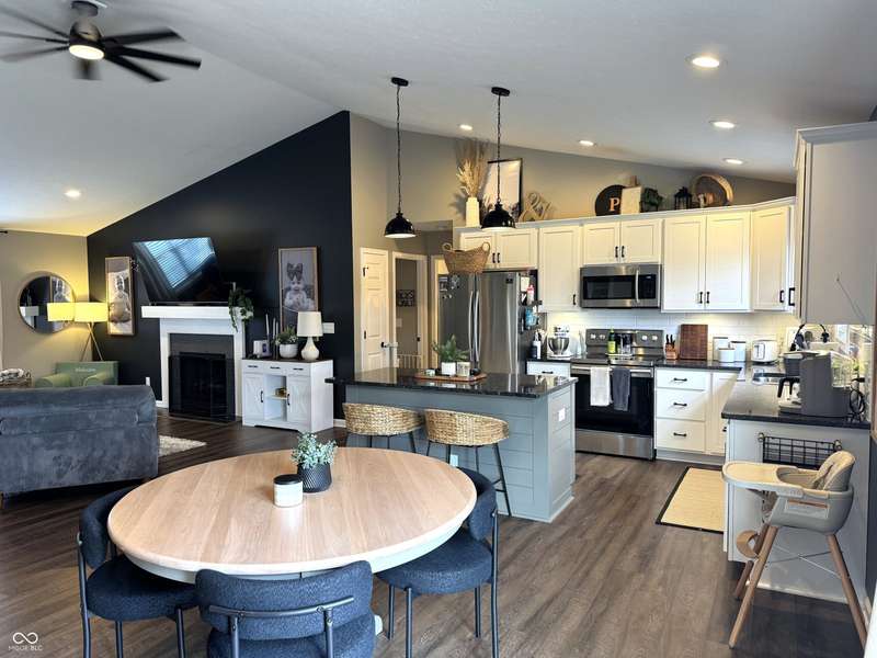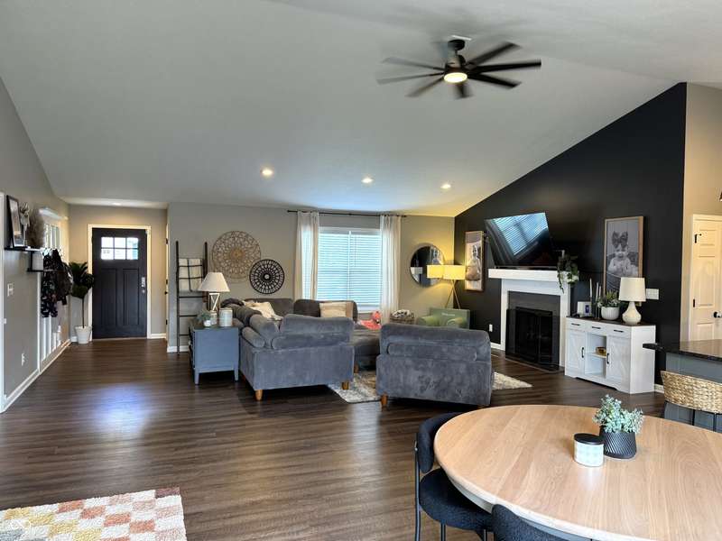 Welcome to this beautiful open-concept ranch in the desirable Diamond Ridge Subdivision. Offering 3 bedrooms and 2 full baths across 1,790 sq ft, this home features a thoughtful split floor plan for comfort and privacy. The spacious Great Room boasts a vaulted ceiling and cozy gas log fireplace, creating the perfect gathering space. The kitchen, complete with granite countertops, tiled backsplash, and all appliances, opens seamlessly to the dining area and Great Room for easy entertaining. The primary suite includes a tiled walk-in shower and an oversized walk-in closet. Enjoy the outdoors from the back patio overlooking the fully vinyl-fenced backyard. Located in the sought-after North Montgomery school district, this home combines style, function, and convenience.