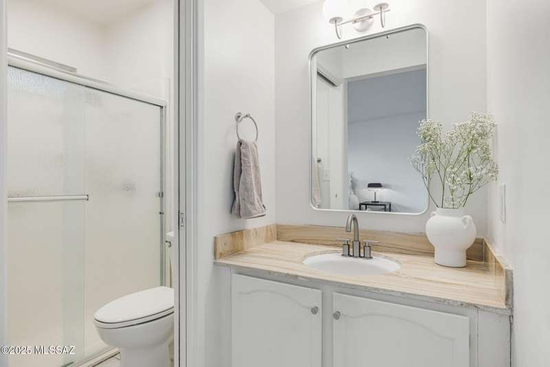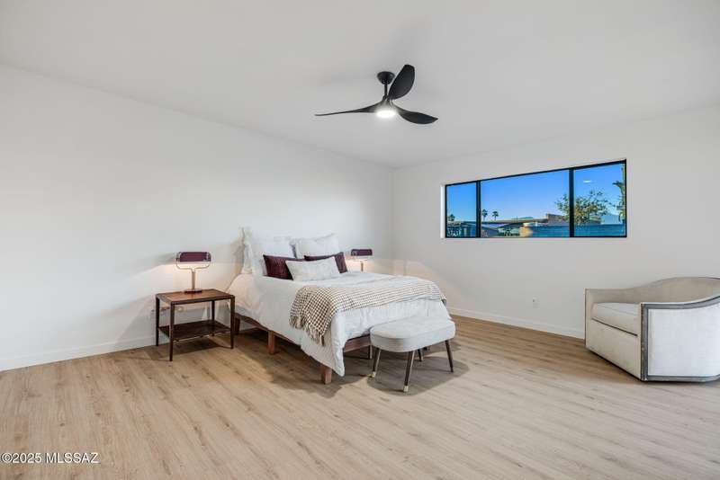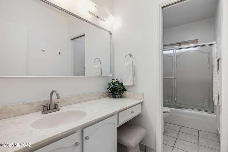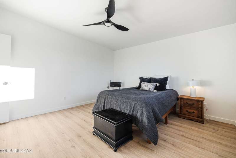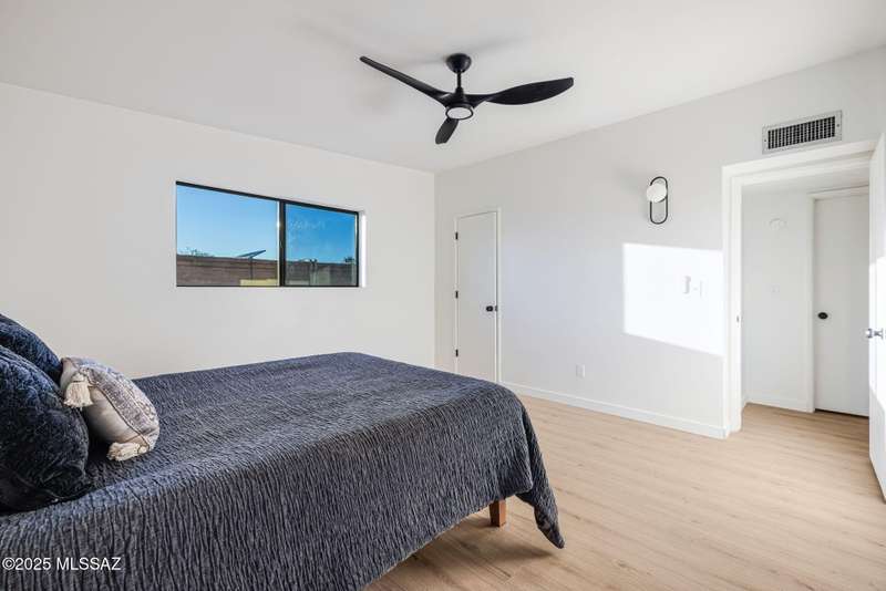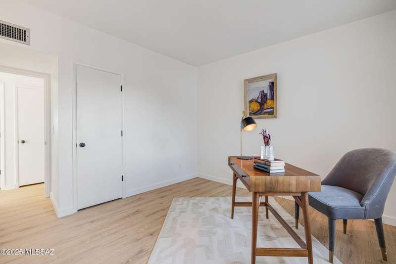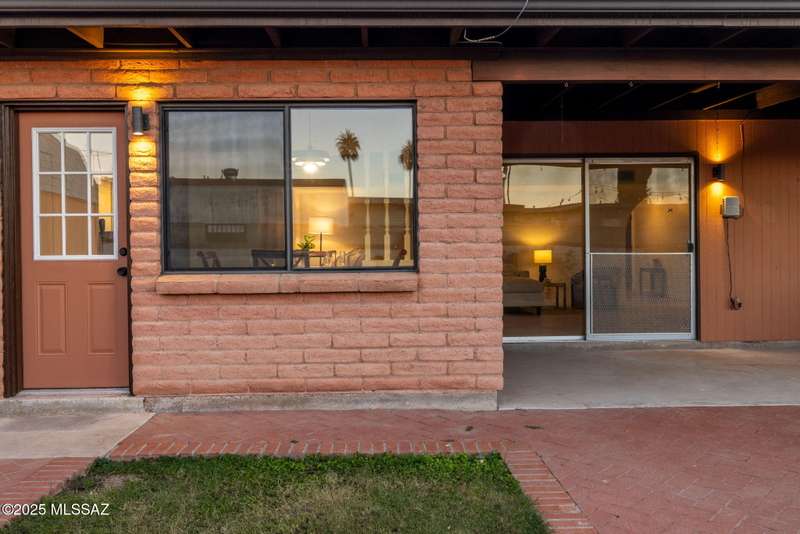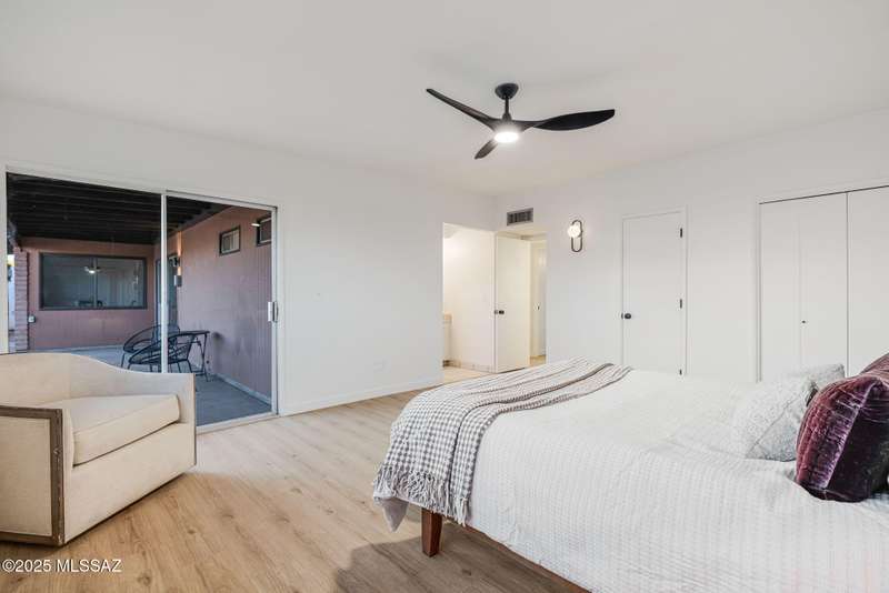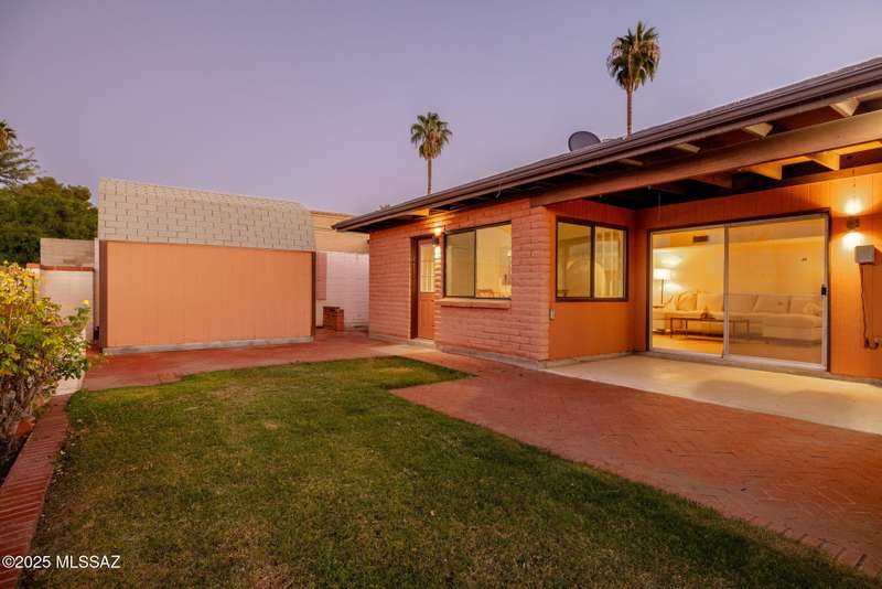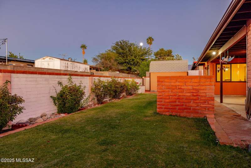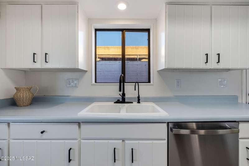 This home features stunning archways, a burnt adobe fireplace, and new luxury laminate floors throughout, seamlessly blending modern design and vintage materials. The kitchen has brand new energy efficient GE appliances, white cabinetry and a skylight that invites incredible natural light. With two large living rooms and two dining rooms this home is perfect for entertaining and hosting holidays. There are three large bedrooms with walk-in closets; the primary bedroom offers two closets, an ensuite and views of the lush backyard. Out back the walls are studded with established rose bushes, grass, a built-in grill and plenty of exterior storage. A workshop shed sits off to the side yard equip with electricity and a worktable, perfect for a wood worker, painter or extra storage.