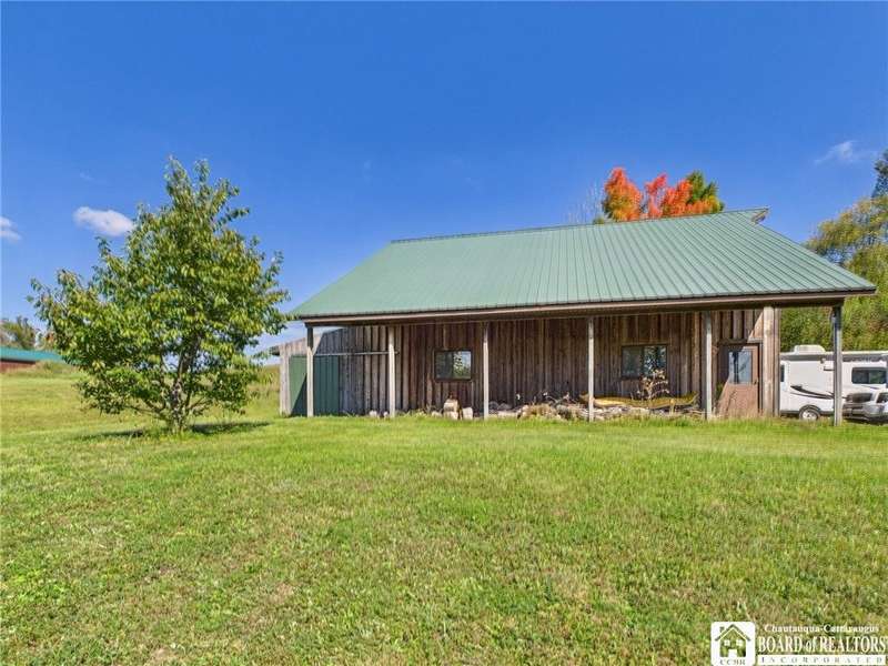 Welcome to your serene country retreat?where nature, craftsmanship, and thoughtful design come together. Nestled on 1.85 acres of peaceful countryside, this distinctive home offers space to breathe, room to grow, and a lifestyle that blends rustic elegance with everyday convenience. This home boasts Four bedrooms and two full baths, including a first-floor bedroom ideal for guests or single-level living. Downstairs you will find a library and living room, both offer cozy nooks for reading, relaxing, or working from home. Upstairs you will find an open concept dining / living area perfect for gathering. There is second floor laundry for added convenience as well. Poplar wood finishes are throughout, harvested directly from the property?bringing warmth, character, and a story to every room. Step out onto your large second-story deck/balcony to soak in panoramic views, host unforgettable gatherings, or simply enjoy the wildlife and changing seasons. Don't miss the Expansive garage/barn with electric?perfect for hobbies, storage, or a workshop?with a spacious upstairs bonus area ready for your creative touch.Whether you're dreaming of a homestead, a weekend escape, or a full-time residence , this property delivers. Come experience the quiet magic of country living?where every sunrise feels like a fresh start.