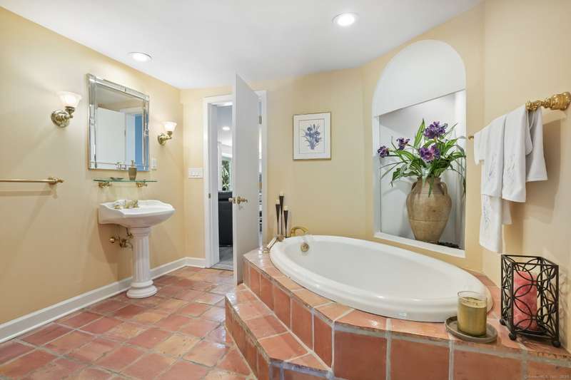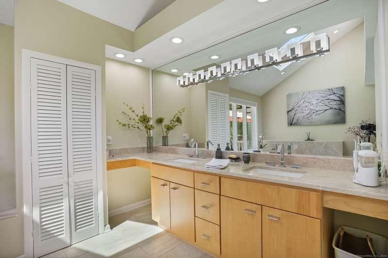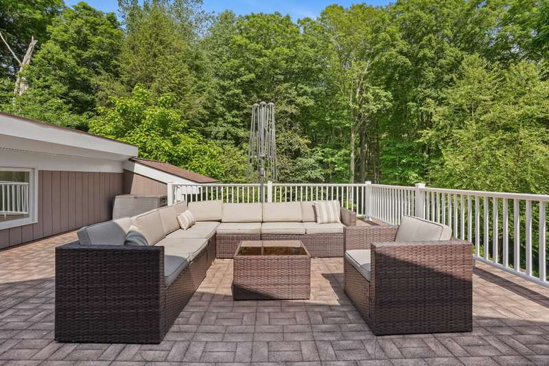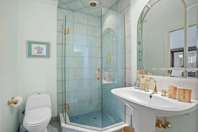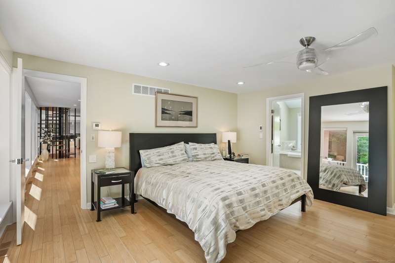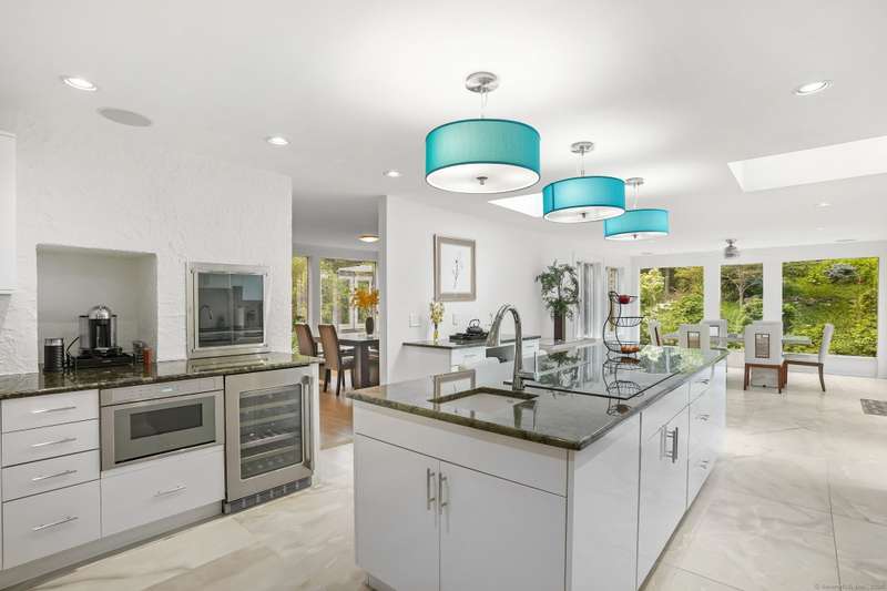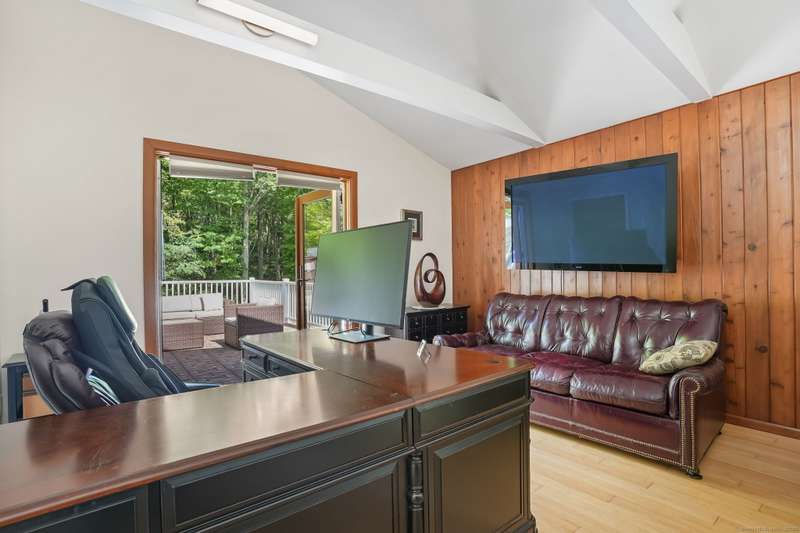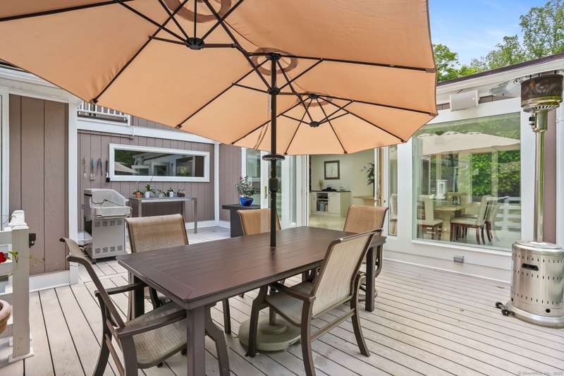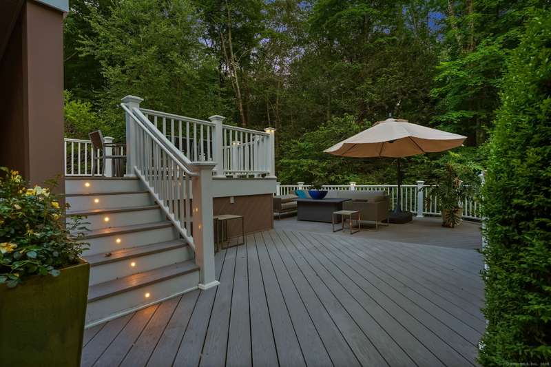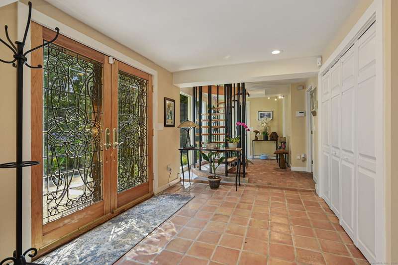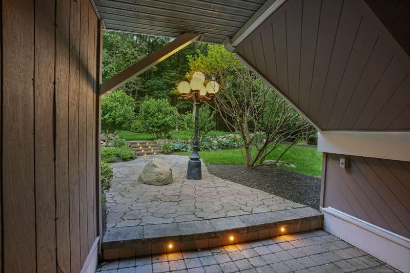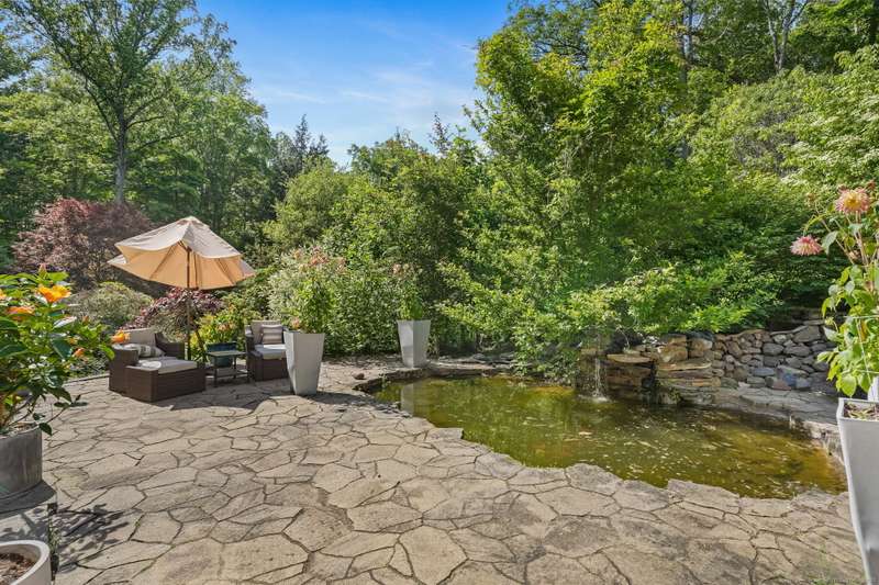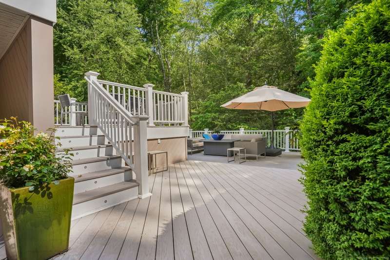 Welcome to the glass house of Southbury! Truly a home of style and distinction with its three levels of 5000+ sqft. Enjoy your own private oasis on over 3 secluded wooded acres landscaped for color from early Spring until the beautiful New England Fall. This one of a kind contemporary style home with glass walls in every major room brings the outside world in 24/7. Enter the lower level through the Garden Room hallway which leads to a Family Rm with fireplace & entrance to Patio with view of the KOI pond. The main level boasts of a Living Room with fireplace and floor to ceiling glass walls on three sides offering stunning views of the outdoors. Adjacent, is a recently remodeled Eat-in Kitchen with Thermador appliances, reflective big blue granite countertops and a deck right off the dining area. Also featured, is a lovely Primary Bedroom suite with motorized blinds, large custom Walk-in closet, and a newly renovated Bath featuring heated floors, large granite enclosed heated tub, bide