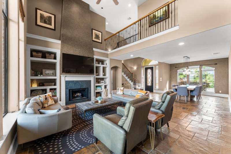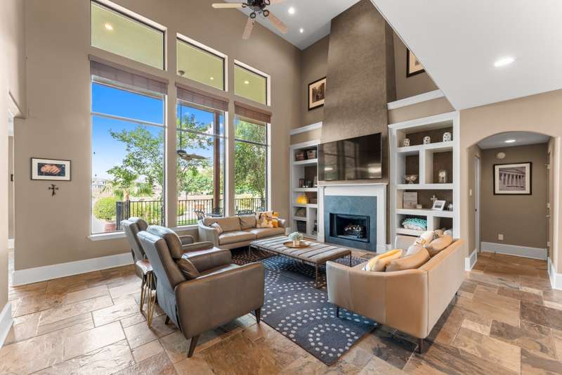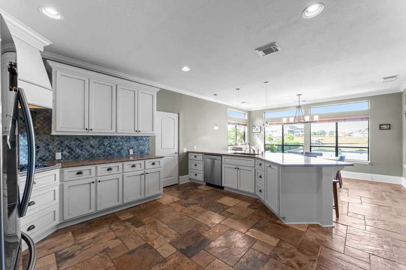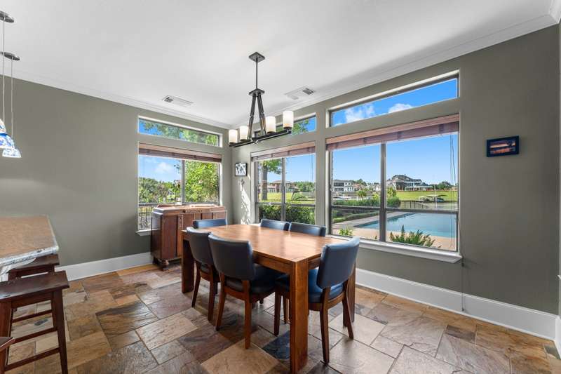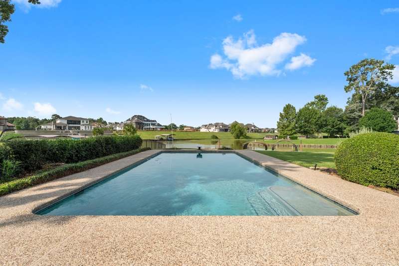 Welcome to your new Waterfront home w/ panoramic views from the beautiful, level back yard! Imagine relaxing by the inground pool, the covered back patio & by the firepit while watching the boats go by. Home sits on one of the widest canals w/ a short boat ride to the lake. Once you walk in the front door, you'll be WOWED by the scenery that the soaring ceilings/grand windows provide. This well-kept home w/ an open floor plan has 5 bedrooms, 4 baths & a 3-car garage. Ample storage thru-out including 2 pantrys, & huge linen closet. The spacious gourmet kitchen also provides amazing canal views w/ plenty of cabinet space, granite counter tops, large island w/ breakfast bar & all stainless steel applicances. This space is perfect for entertaining! Upstairs there's an oversized game room ideal for a pool table or ping pong & TV viewing area. The large backyard is gently sloped, perfect for any/all lawn games! Lawn overlooks 2 covered boat slips & swim pier. Manned, gated neighborhood!
