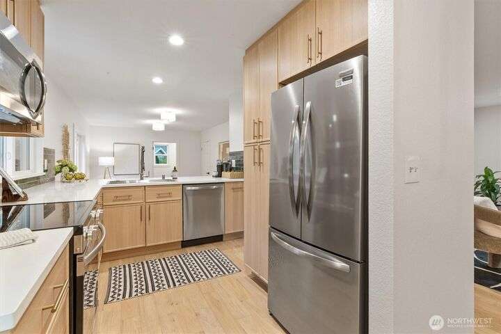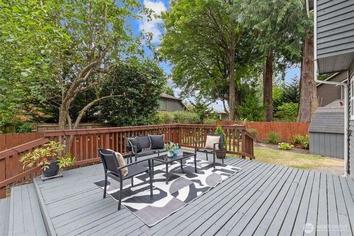 Set within a serene cul-de-sac, this home offers a rare blend of elegance, comfort and charm. Thoughtfully updated interiors feature 2 inviting living spaces, a dedicated dining room and a stylish kitchen designed for function and warmth. The upper-level hosts 3 bedrooms, creating a natural separation between private and gathering spaces. North-facing orientation enhances the light-filled atmosphere accentuating the refined finishes with timeless appeal. Additional highlights include a two-tiered deck and a versatile shed for storage or hobbies, all enveloped in a fully fenced and expansive yard. This residence embodies the best of Kirkland living for both long-term value and everyday ease. Pre-inspected and move-in ready. Truly noteworthy.