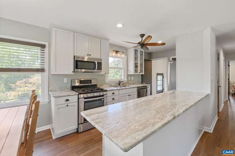 Ideally located just steps from the Rivanna Trail, this thoughtfully updated 3-bedroom, 3-bathroom home offers the perfect blend of comfort, convenience, and charm. Nestled in a highly desirable area of Charlottesville, enjoy easy access to parks, downtown, and everything the city has to offer. The beautifully renovated kitchen seamlessly opens up to the family room and dining area. This open concept plan is perfect for everyday living and entertaining. The spacious first-floor primary suite offers a peaceful retreat, while a private basement bedroom with a full bath provides an ideal guest suite or home office. Hardwood floors run throughout the home, adding warmth and character to every space. Outside boasts a large, flat, fenced-in backyard with ample sunlight: perfect for gardening, play, or pets. Don't miss this rare opportunity to own a move-in-ready home in one of Charlottesville's most walkable and scenic neighborhoods.