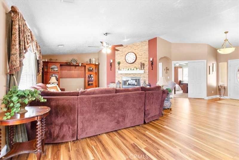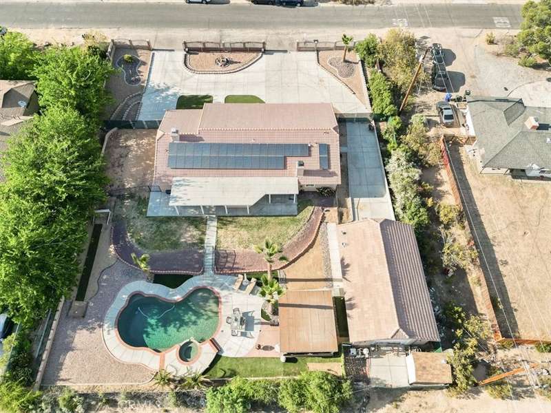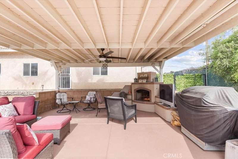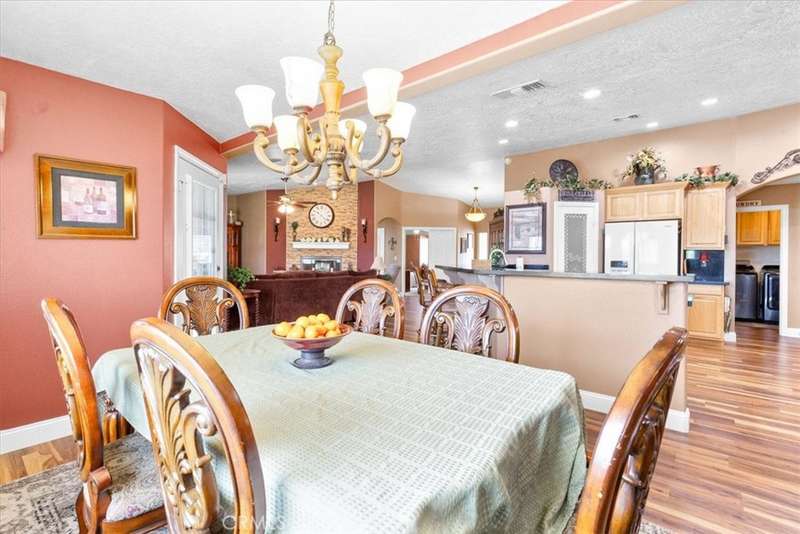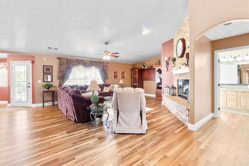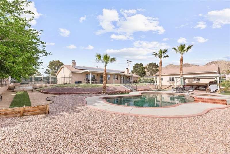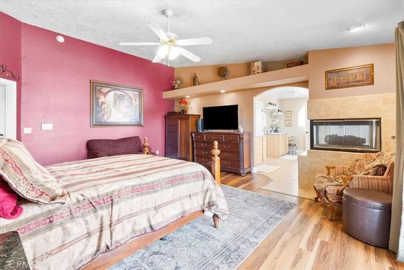Step into your private paradise featuring a sparkling saltwater pool, and an outdoor covered barbeque area complete with a fireplace and plumbed for outdoor kitchen, perfect for year-round entertaining. The expansive 960 sq. ft. detached building, is currently being used as a 5-car garage (26' x 40') with 2 roll up garage doors and a man door, is fully permitted and equipped with its own 3/4 bath and separate electrical & alarm system. With a little imagination, this versatile space could become a stunning guest house, home office, gym, or rental unit. This building also has its own heating and cooling. The home is packed with premium upgrades including: Open kitchen to the great room, to include all appliances, specifically a newer refrigerator, breakfast bar, dining room with views to the pool and backyard. Master bedroom with a two-sided fireplace, soaking tub, and walk in closet. Laundry room includes a modern washer and dryer. Spacious bedrooms and closets.